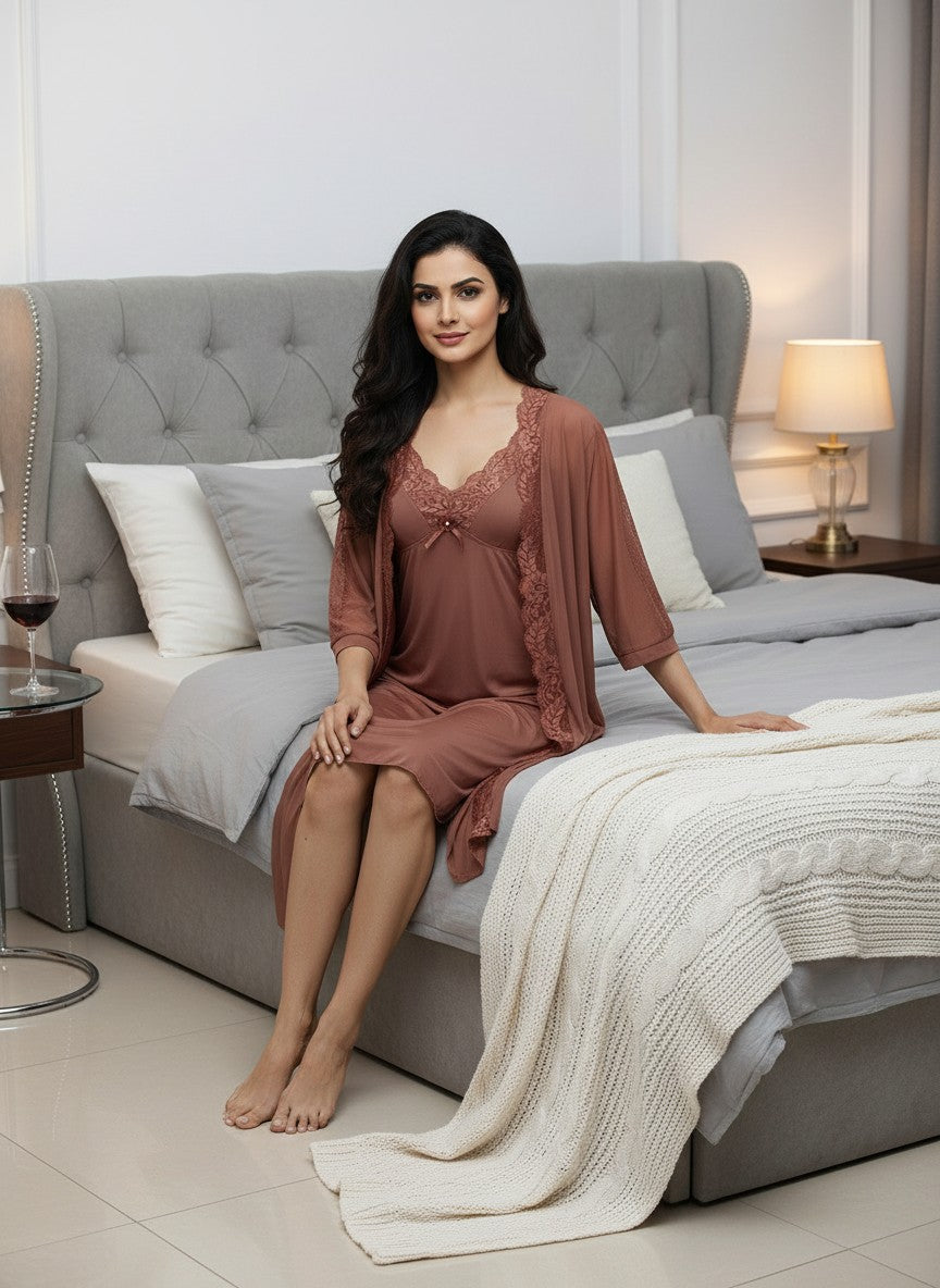 Experience ultimate emotional comfort and softness with this Sexycastle robe, designed for romantic and intimate moments. The regular fit silhouette features long sleeves, a V-neckline, and a convenient slip-on closure, all presented in a timeless solid brown pattern. Crafted from lightweight Lushberry fabric that offers breathability and stretch, this robe is suitable for all seasons. Easy to care for with machine wash cold instructions, it’s perfect for lounging, sleeping, or daily comfort.