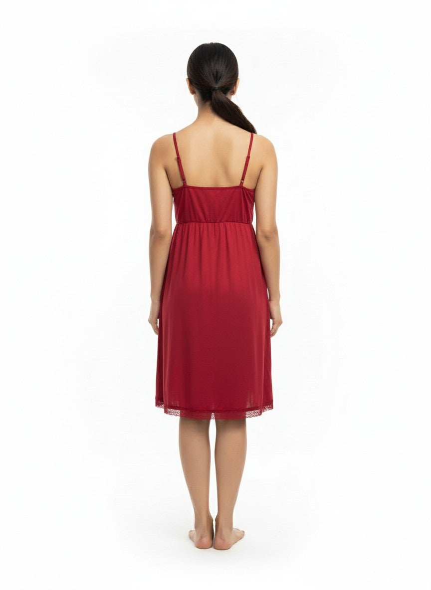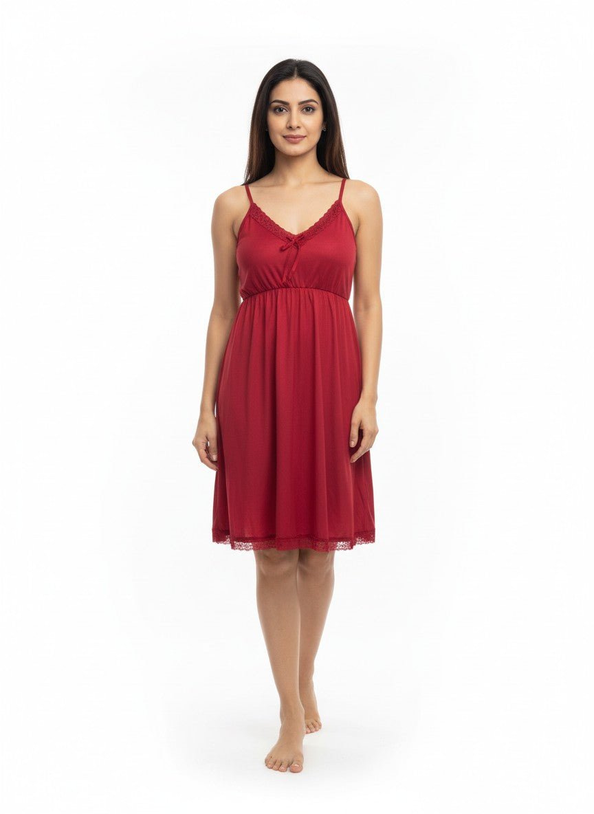 Experience ultimate emotional comfort with this romantic and intimate babydoll designed for all seasons. Featuring a relaxed fit silhouette with spaghetti straps and a flattering V-neckline, this solid red slip-on piece offers both style and ease. Crafted from soft, lightweight Lushberry fabric known for its breathability and stretchability, it ensures cozy wear whether lounging or sleeping. Easy to care for with machine wash cold instructions, it's a perfect choice for everyday comfort and alluring nights.