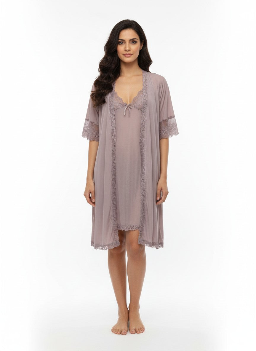 Experience intimate comfort with this Grey Robe from Sexycastle, designed for romantic and intimate moments. Featuring a regular fit silhouette with long sleeves, a flattering V-neckline, and a convenient slip-on closure, it offers a solid pattern that enhances its elegant look. Made from lightweight silky fabric, it ensures breathability and stretchability ideal for all seasons. This robe is easy to care for with hand wash instructions, making it perfect for lounging and everyday relaxation.
