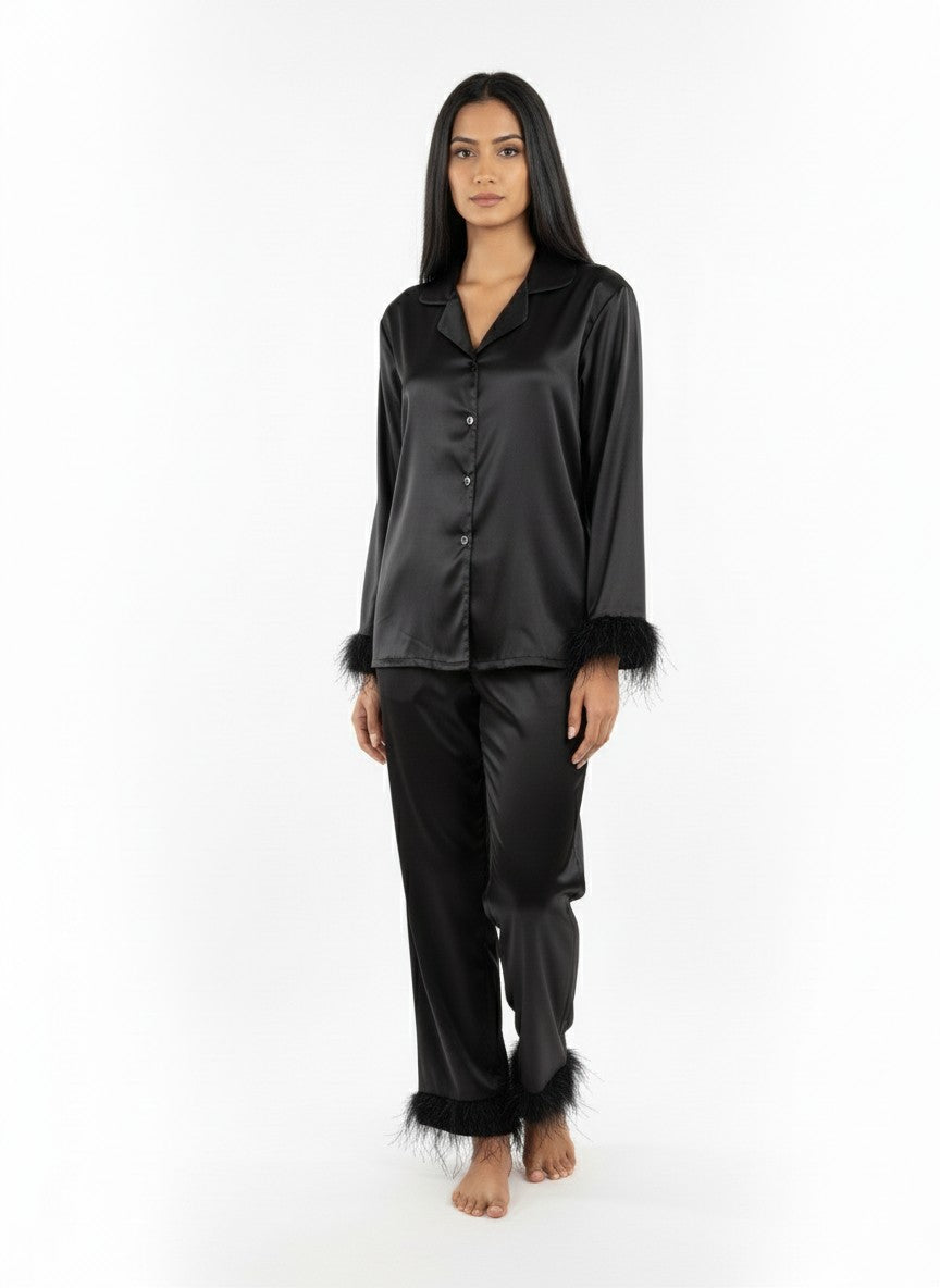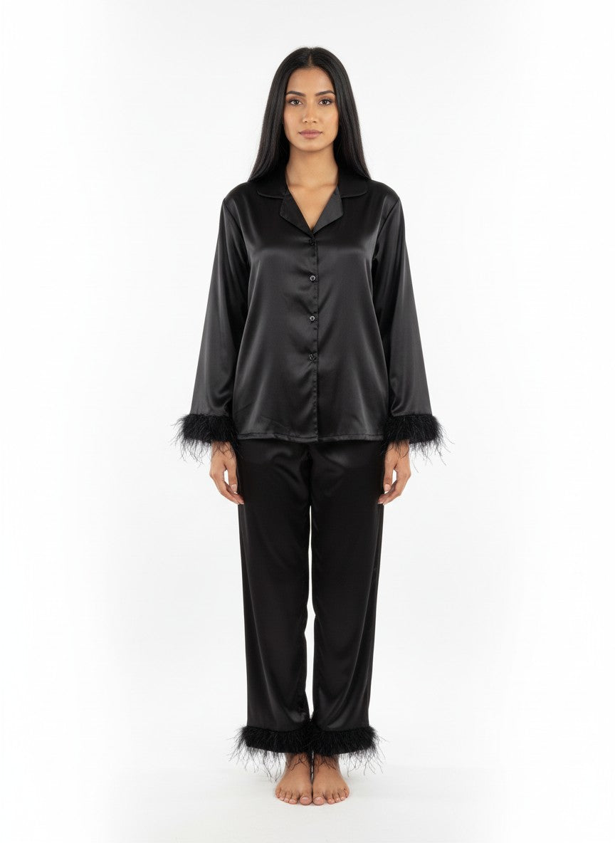 Experience ultimate comfort and luxury lounging in this Sexycastle pyjama set designed for all-season wear. Featuring a regular fit silhouette with full sleeves, a classic collar neck, and button closure, the solid pattern enhances its timeless appeal. Crafted from breathable lightweight viscose fabric with stretch knit qualities, it ensures softness and flexibility. Easy to care for with machine wash cold instructions, this set is perfect for lounging, sleeping, or everyday comfort.