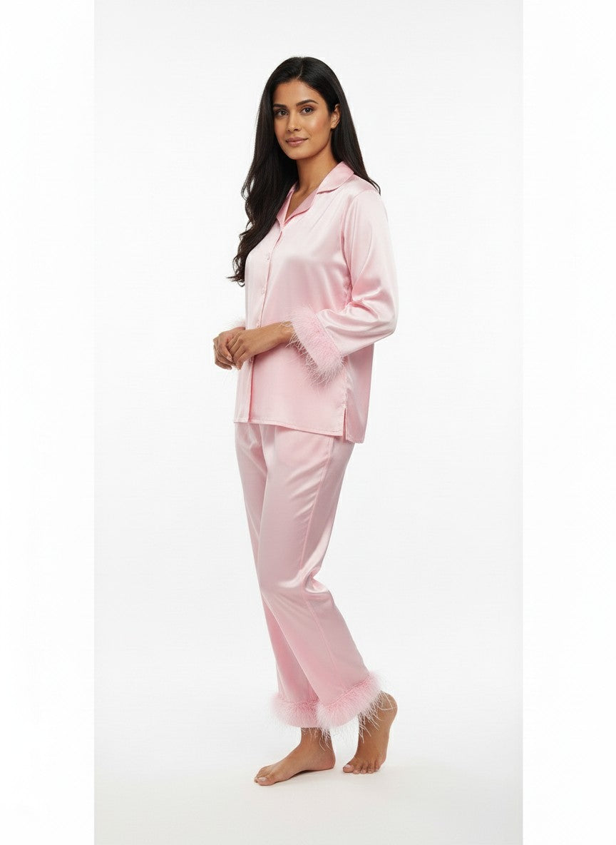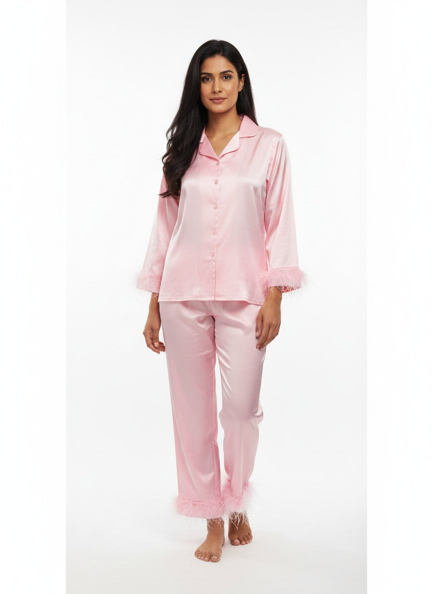 Experience ultimate emotional comfort with this Babypink pyjama set designed to elevate your lounging and sleepwear. It features a regular fit silhouette with full sleeves, a collar neck, and button closure, showcasing a solid pattern that exudes simple elegance. Crafted from modal satin, this lightweight, breathable, and stretchable fabric is suitable for all seasons, ensuring you stay comfortable throughout the year. Easy to care for with machine wash cold instructions, it's the perfect addition to your luxe lounge collection for everyday ease and style.