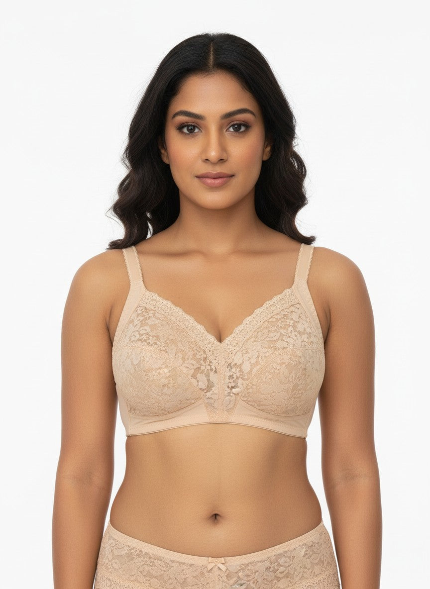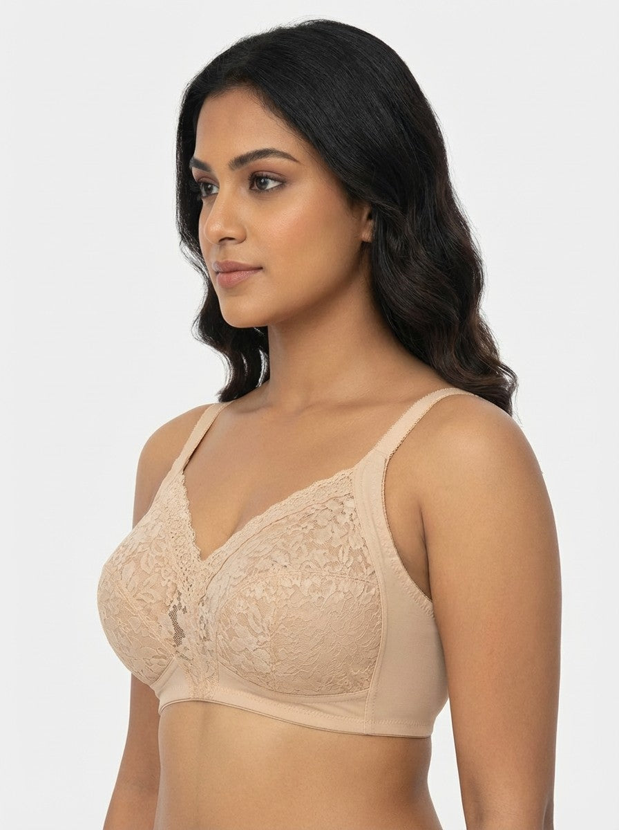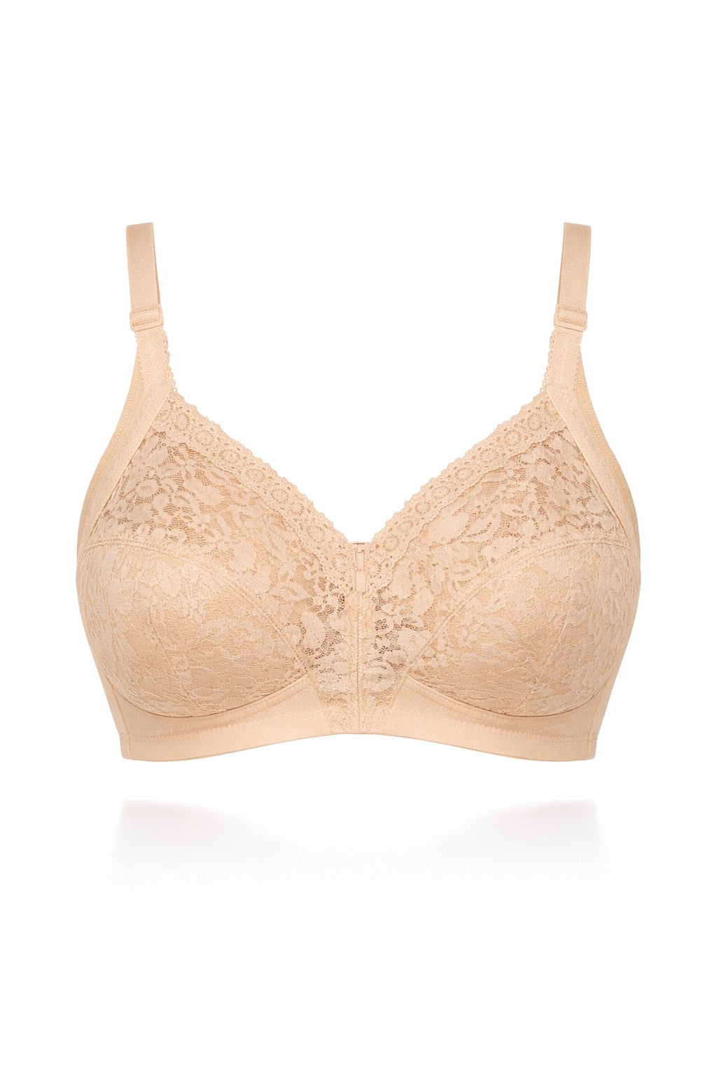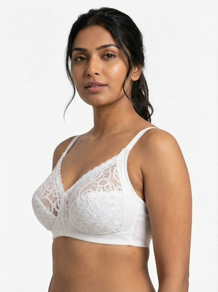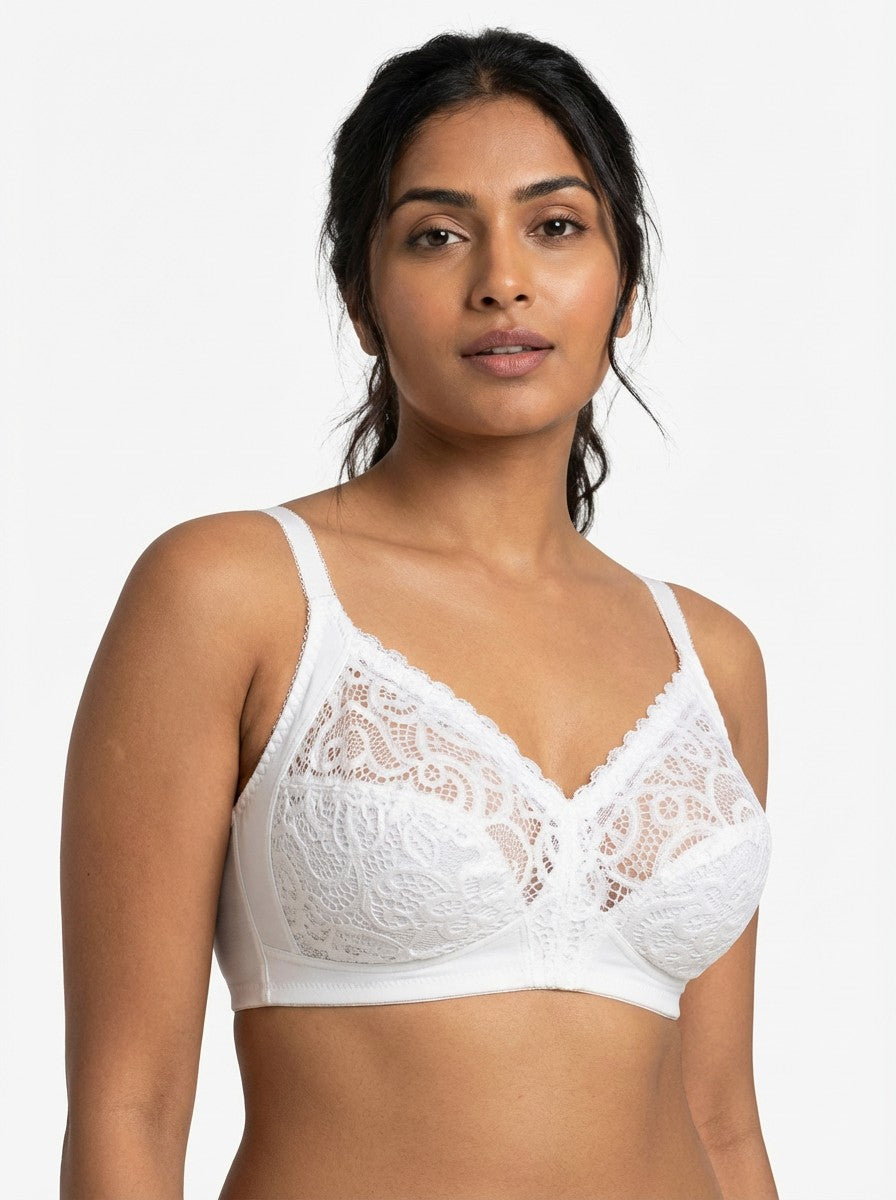 Triumph Delicate Doreen Everyday Bra Wireless Non Padded is crafted for reassuring comfort and confidence, offering full coverage with a non-wired, non-padded design that gently supports without adding bulk, making it ideal for everyday wear. The straight back and adjustable straps help provide a secure, custom fit, while the hook-and-eye closure ensures reliable support throughout the day. Made from a soft blend of polyamide with elastane, the fabric feels smooth against the skin and offers comfortable stretch, complemented by a lace pattern that adds a touch of feminine elegance. Suitable for regular use, this bra is best maintained with hand wash care to help preserve its shape, fabric quality, and delicate details over time.