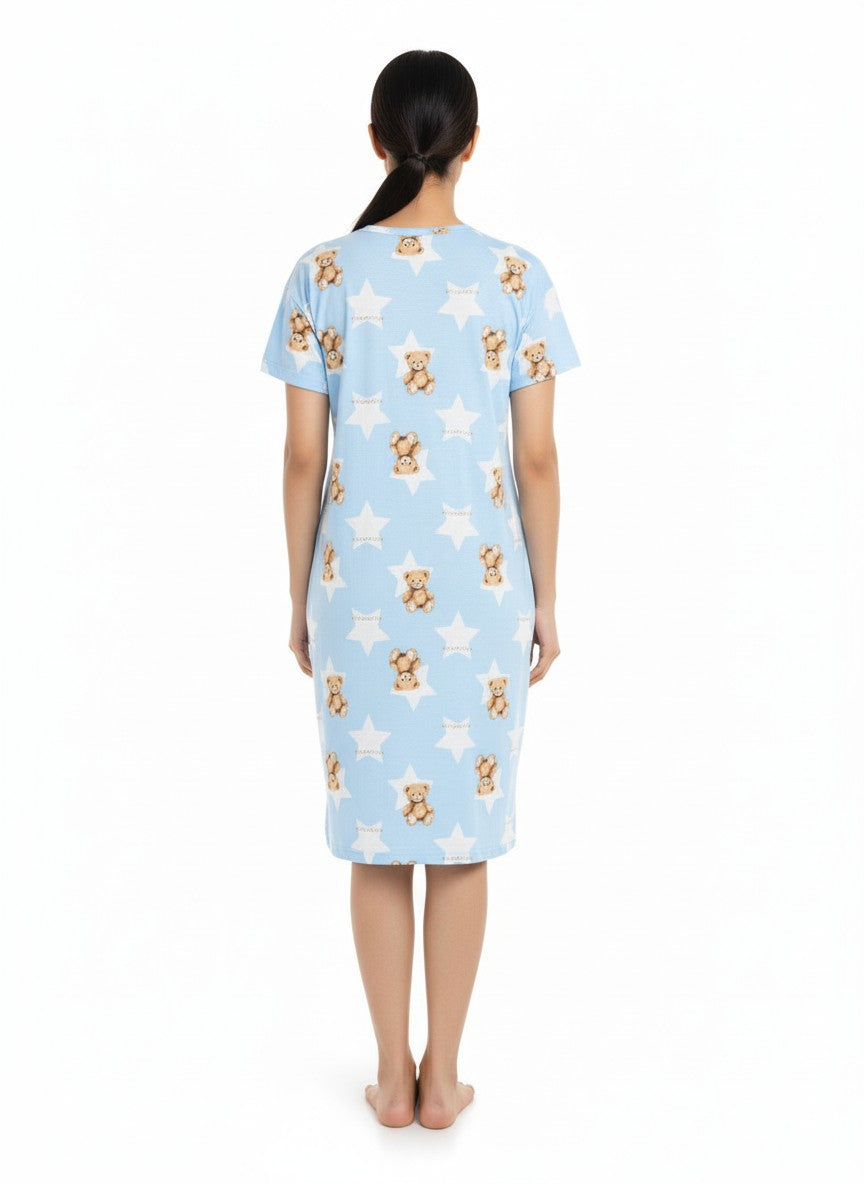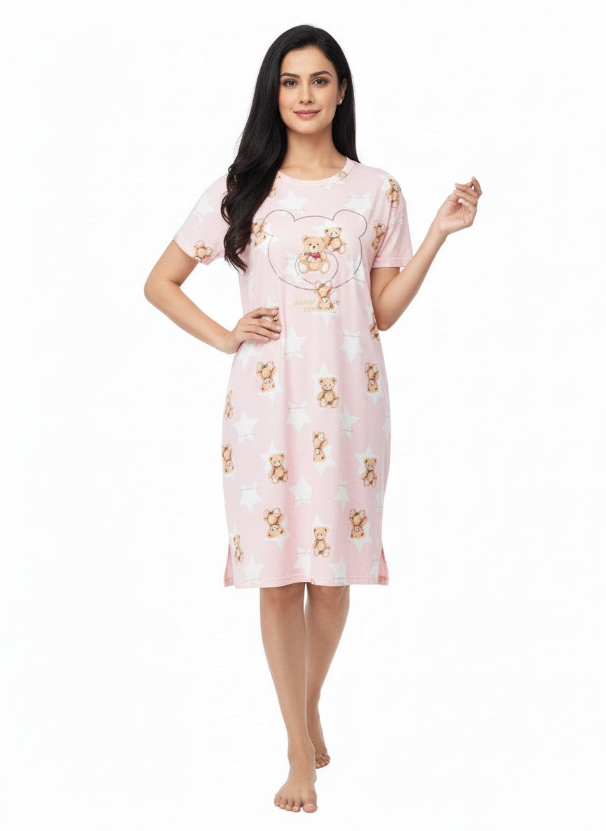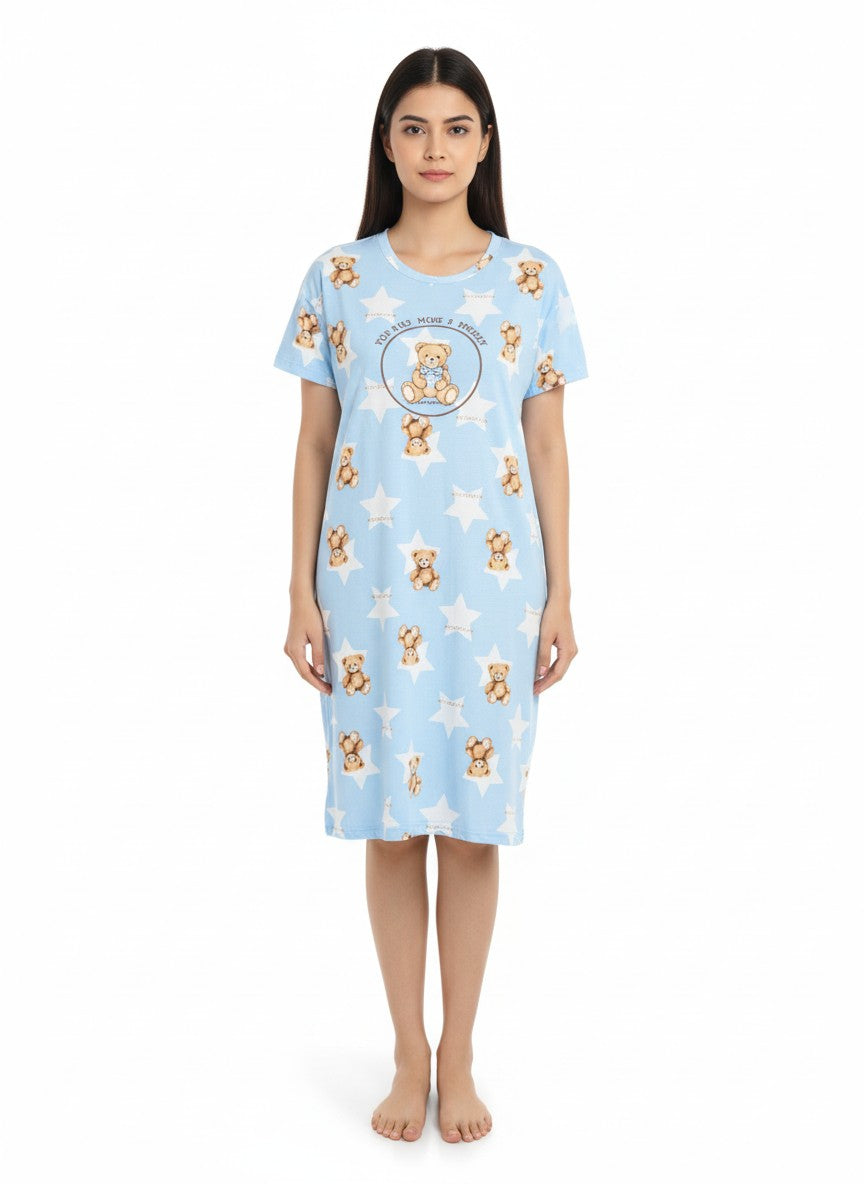 Experience delightful comfort and playful moods with this Sweetdreams short nightie designed for all-season wear. The regular fit silhouette features half sleeves, a round neckline, and a pullover closure adorned with vibrant graphic prints. Crafted from breathable, lightweight CloudsoftAOP fabric, it offers stretchability and easy care with machine wash cold instructions, perfect for lounging or restful sleep in everyday comfort.