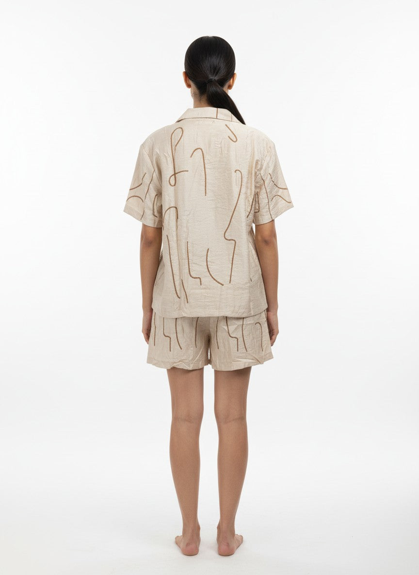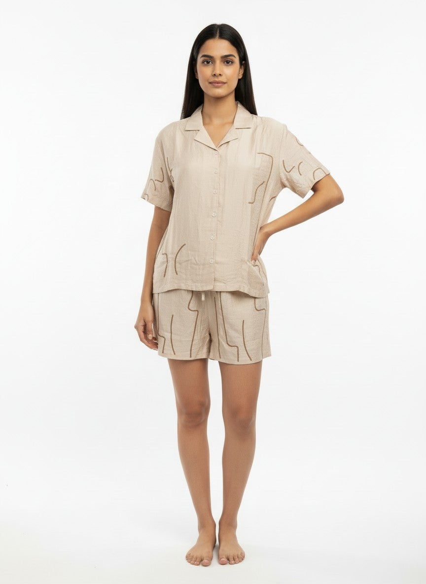 Experience the ultimate in playful and cute nightwear with this Sweetdreams set, designed for relaxed fit lounging and comfortable sleep. Featuring a lightweight breathable viscose fabric that is stretchable and suitable for all seasons, this beachsand colored set includes a half sleeve top with a collar neck and button closure, adorned with an abstract pattern for a stylish look. Machine wash cold care ensures easy maintenance, making it a perfect choice for everyday comfort and nighttime relaxation.