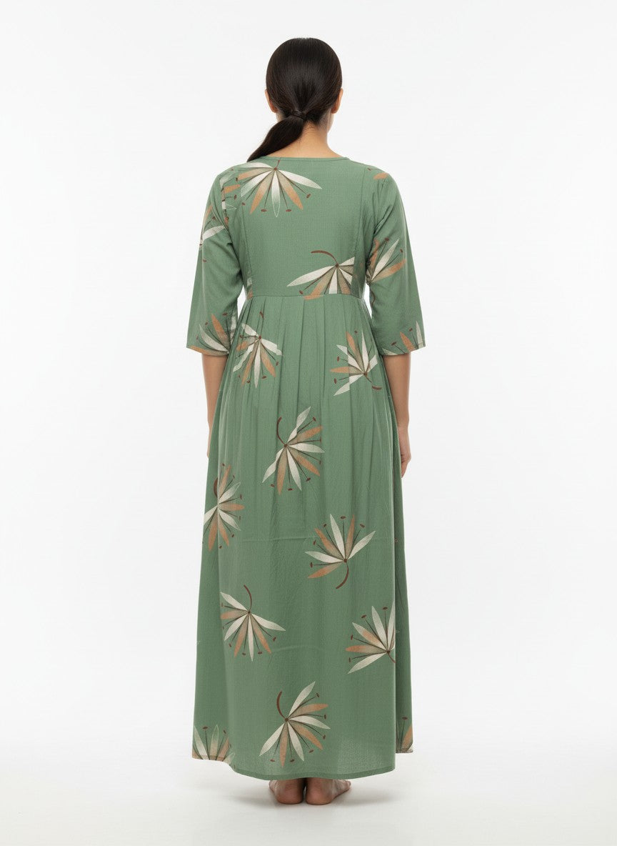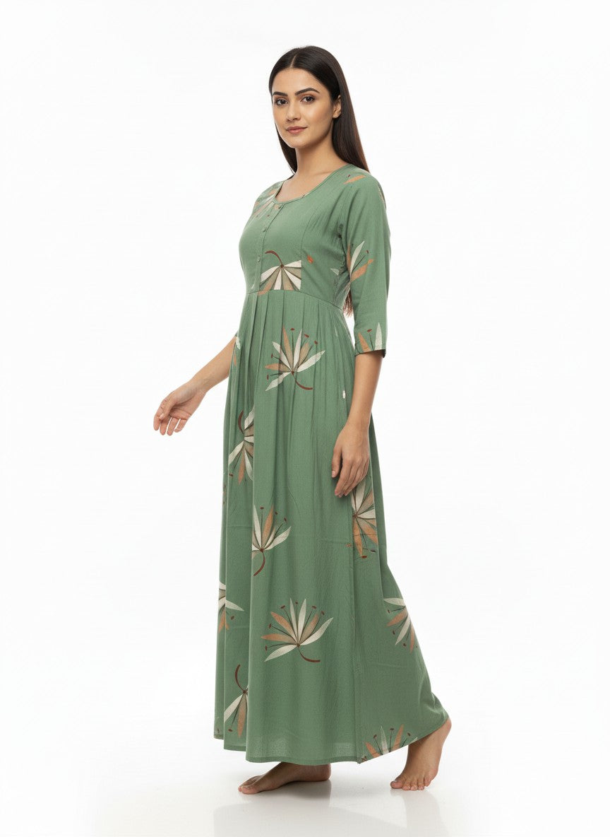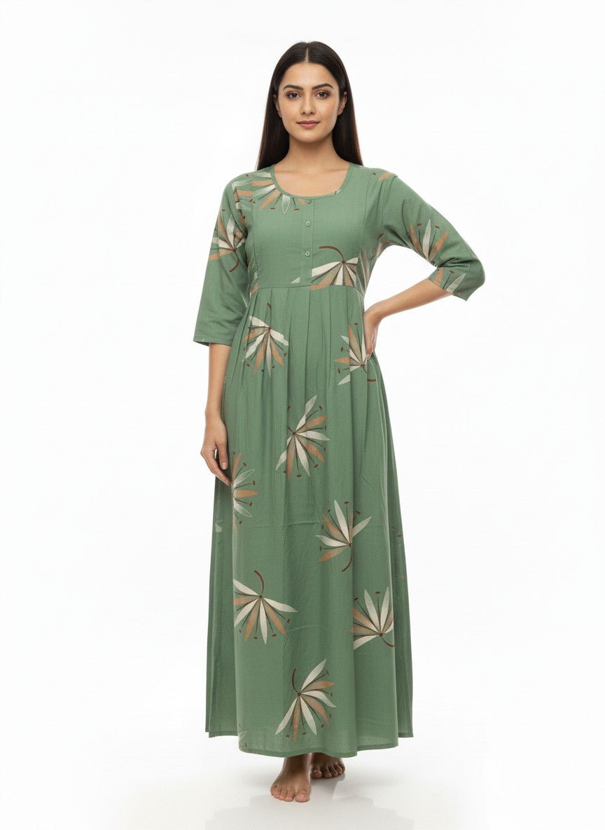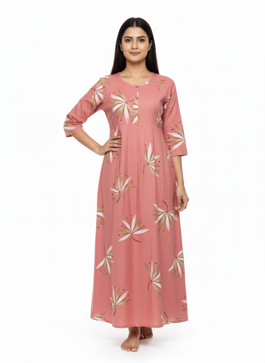 Experience ultimate comfort and softness perfect for all-day wear and restful nights in this maternity nightdress. Designed with a loose fit silhouette featuring long sleeves, a round neckline, and button closure, it showcases an abstract pattern that adds subtle style. Crafted from lightweight, breathable viscose fabric with stretchability suitable for all seasons, this garment ensures ease of movement and comfort. Easy to care for with machine wash cold instructions, it’s an ideal choice for lounging, sleeping, or everyday maternity comfort.