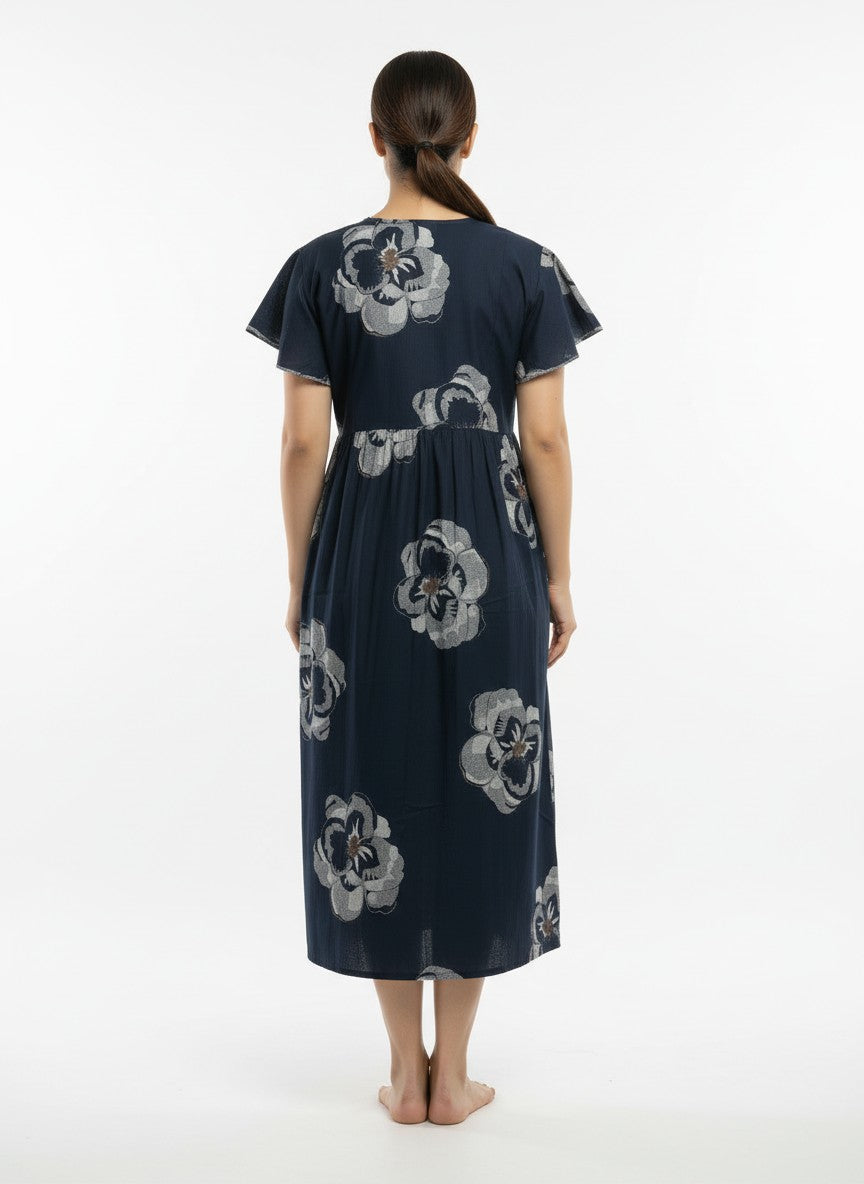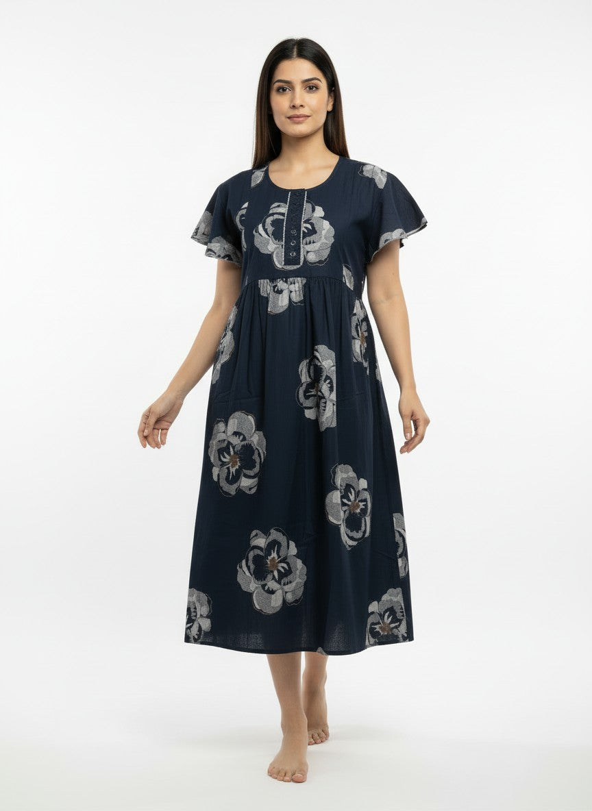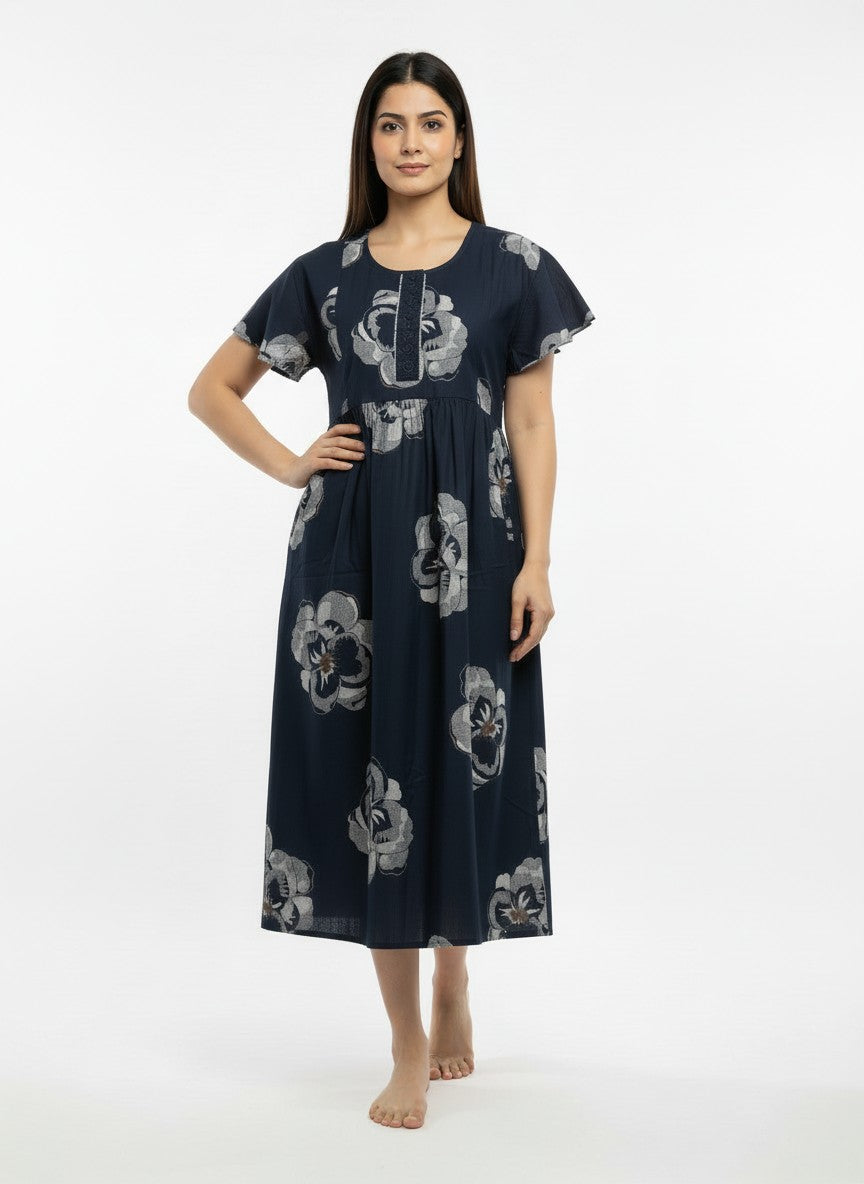 Experience unmatched comfort and relaxation in this loose fit maternity nightdress from Sukanya, designed with long sleeves, a round neck, and button closure, adorned with a floral pattern. Made from lightweight Alpine fabric, it offers breathability and stretchability, making it perfect for all seasons. Easy to care for with machine wash cold instructions, this nightdress is ideal for lounging, sleeping, or everyday comfort during pregnancy.