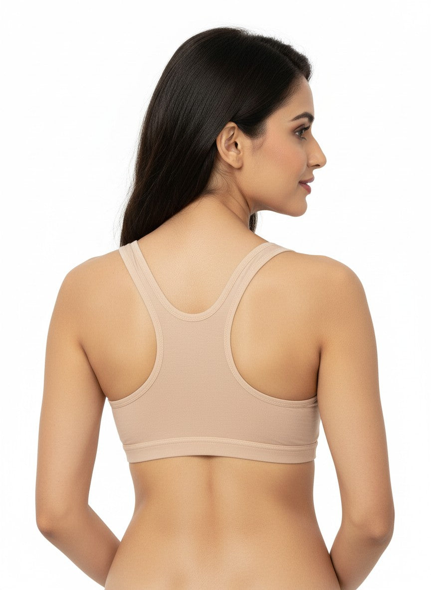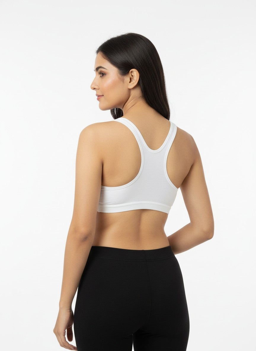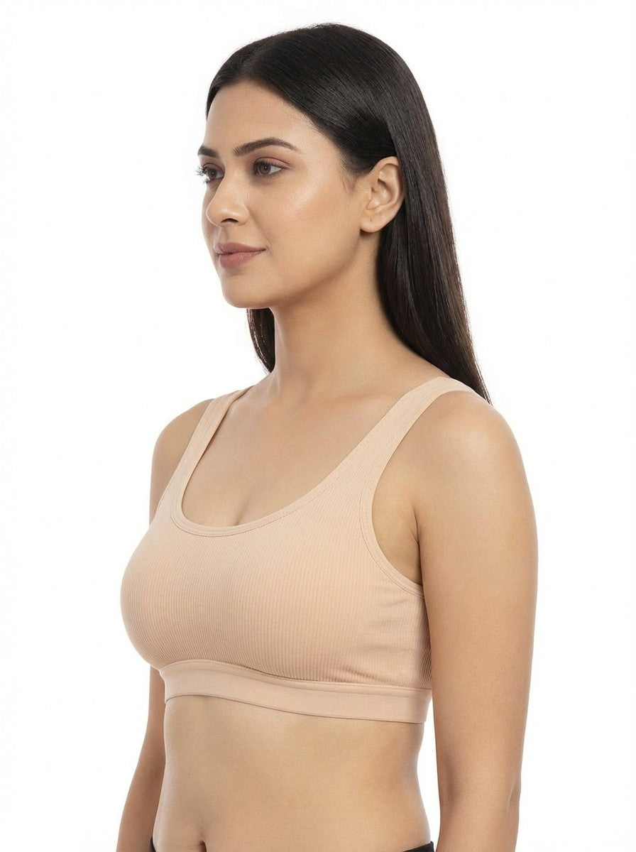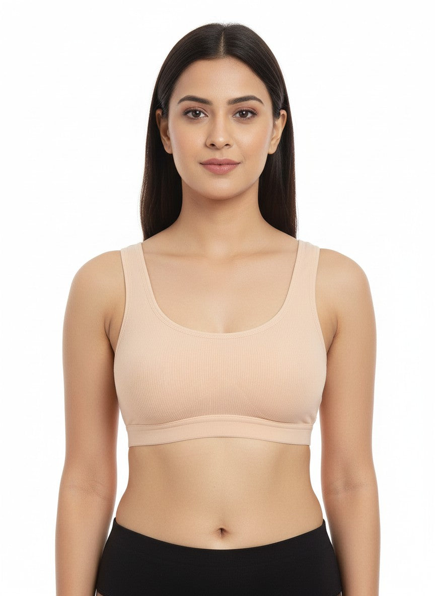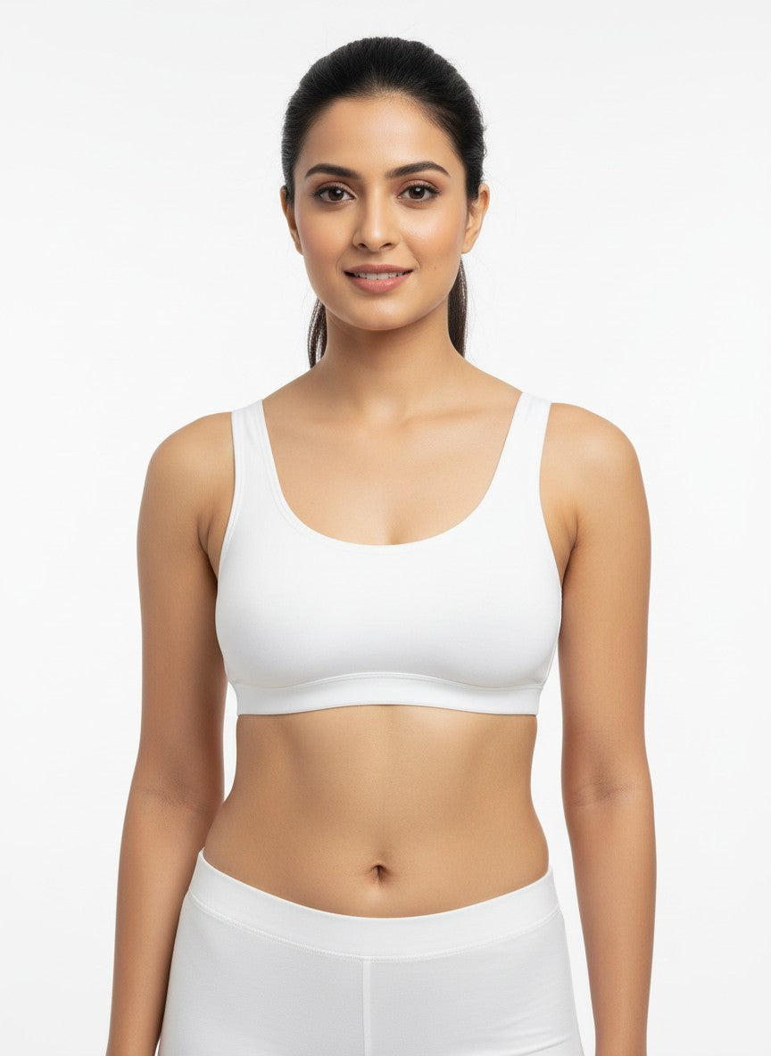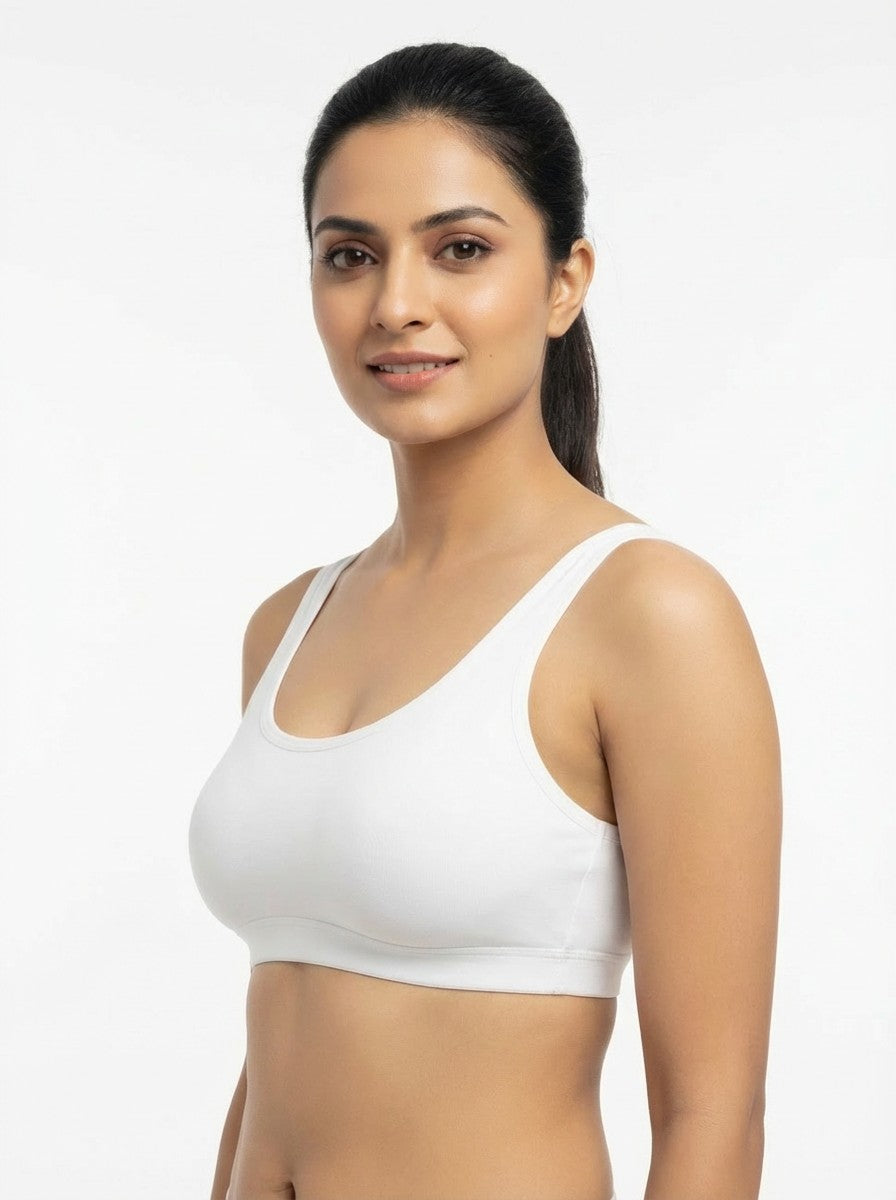 The Triumph Beginner Bra 66 Wireless Non Padded is designed to gently support growing bodies with full coverage and a calm, secure feel, making it ideal for everyday wear and for those just starting to wear bras. Crafted from a soft blend of cotton and elastane, it offers a natural, breathable touch against the skin with comfortable stretch that moves with you through daily activities. The non-wired, non-padded construction ensures a light, irritation-free fit while still providing reassuring coverage, and the Y-shaped back with tank-style straps helps keep everything in place without digging or slipping. With its pull-on closure, this bra is easy to wear and free from hardware, enhancing comfort under casual outfits, and it stays in good condition with simple hand wash care, making it a reliable choice for regular, confidence-boosting comfort.