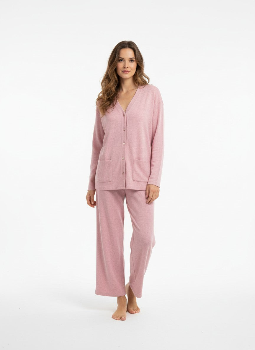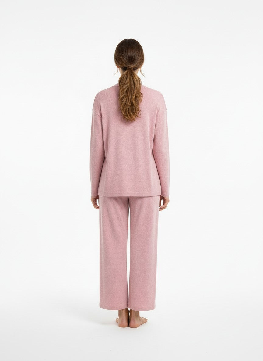 Experience ultimate comfort and modern minimal style with this Sweetdreams pyjama set, perfect for lounging and restful sleep. The relaxed fit silhouette features long sleeves with a V-neckline and button closure, crafted from soft and breathable sparklewaffle fabric that offers medium weight and stretchability for all-season wear. Easy to care for with machine wash cold instructions, this set combines style and functionality for everyday comfort.