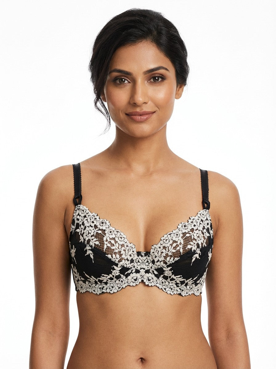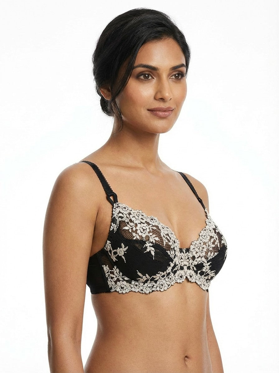 Wacoal Embrace Lace Non Padded Wired 3/4th Cup Bridal Wear Medium coverage Fashion Bra offers elegant demi coverage and underwired support, giving a naturally uplifted shape and secure fit that enhances confidence for special occasions and refined everyday moments. Crafted with lace composed primarily of nylon and polyester, it provides a delicate yet comfortable feel against the skin, with a touch of stretch from Lycra for ease of movement. The non-padded cups allow a lighter, more natural profile, while the U-Back design, adjustable straps, and hook-and-eye closure ensure a stable, customizable fit that stays comfortably in place through extended wear. Suitable for bridal wear as well as dressy ensembles, this bra combines embroidered lace detailing with dependable support, and is best cared for by hand washing with like colours using mild soap and air drying to maintain its beauty and performance over time.