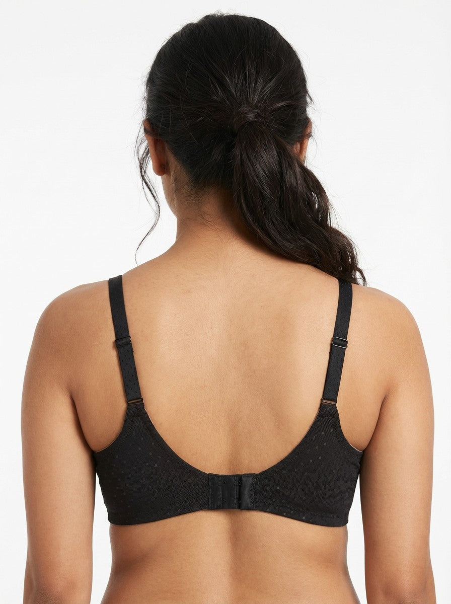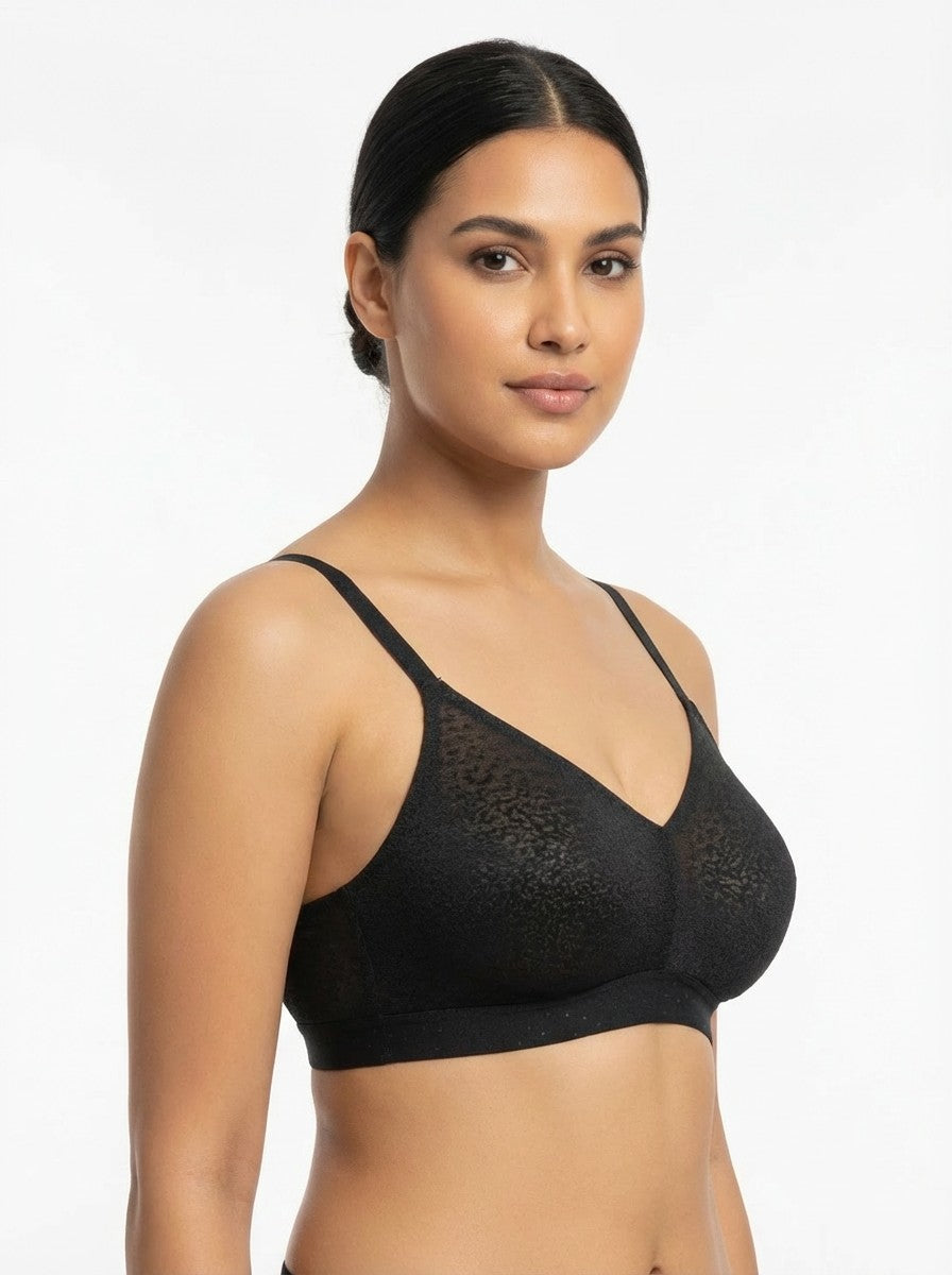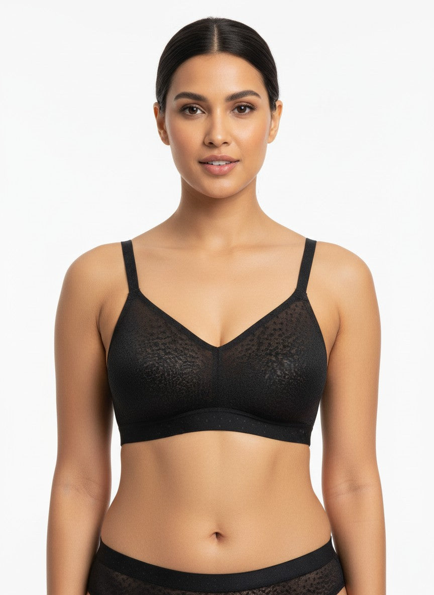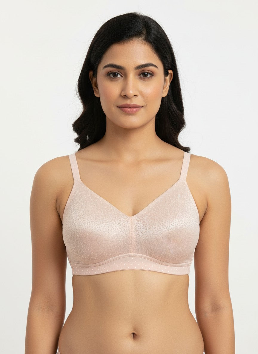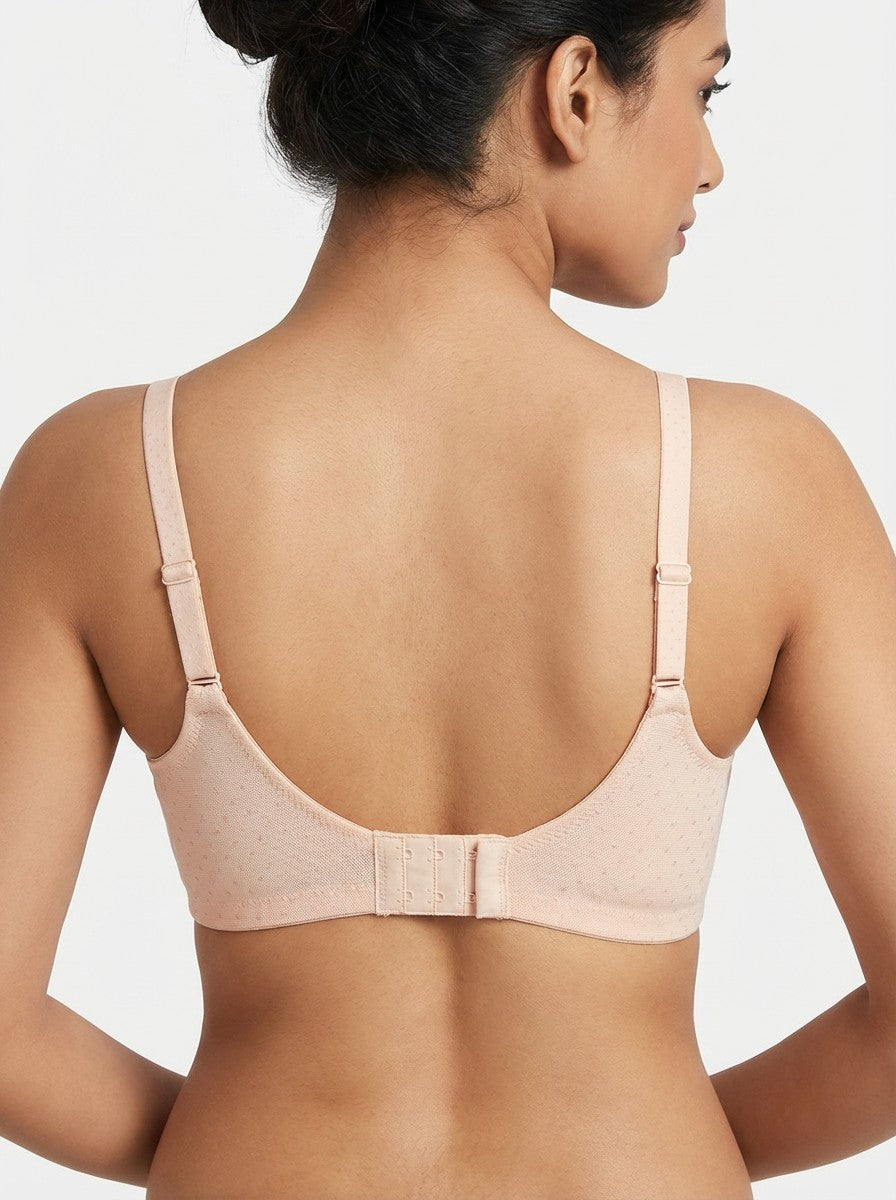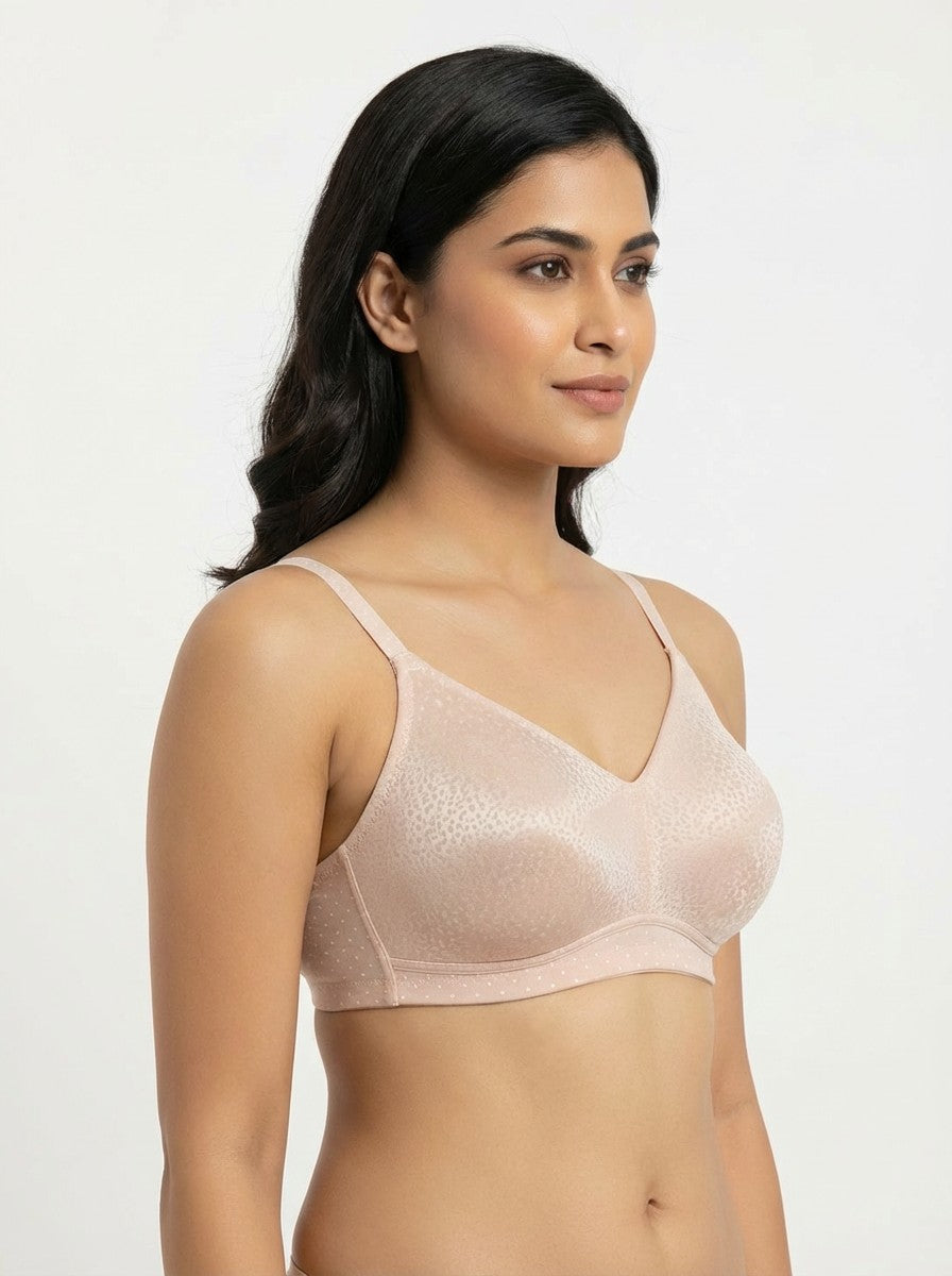 The Wacoal Back Appeal Non Padded Non-Wired Full Cup Everyday Wear Plus Size Seamless Full Support Bra offers reassuring full coverage and gentle support, making it a comfortable choice for everyday wear and long hours. Designed with a non-wired structure and non-padded cups, it provides a naturally contoured shape while reducing pressure on the body, and the U-Back style with adjustable straps helps distribute weight for added stability and confidence. The hook-and-eye closure ensures a secure, customizable fit, and the printed design adds a subtle touch of style without compromising on practicality. Crafted from a smooth blend dominated by nylon with elastane for stretch, the fabric feels soft against the skin and moves easily with your body, supporting daily comfort and ease of movement. Ideal for regular use, this bra is best cared for by hand washing with like colours using mild soap and air drying to maintain its shape, support, and refined finish over time.