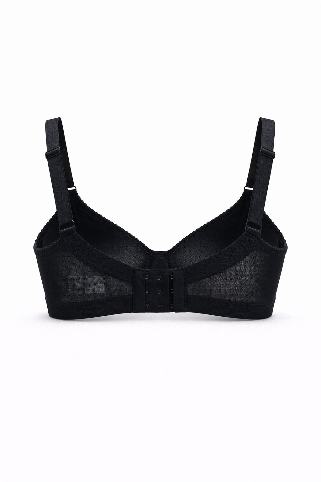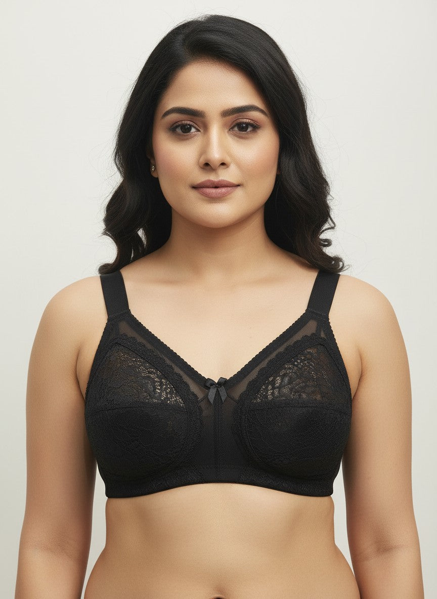 Clovia Non-Padded Full Coverage Minimizer Bra offers reassuring support and comfort for everyday wear, featuring a full coverage design that helps minimize the bust for a smoother, more confident silhouette under clothing. The non-wired construction provides gentle support without digging in, while the non-padded cups maintain a natural shape and light feel, making it suitable for long hours of regular use. Adjustable straps allow you to customize the fit, and the U-Back style helps enhance support and keep straps in place, complemented by a secure hook-and-eye closure for added stability. Crafted from polyamide, it offers a smooth, soft hand feel with good durability and performance against the skin, making it ideal for daily wear. The solid black color adds a versatile, timeless touch to your lingerie drawer, and with simple hand wash care instructions, this bra is easy to maintain for regular use.