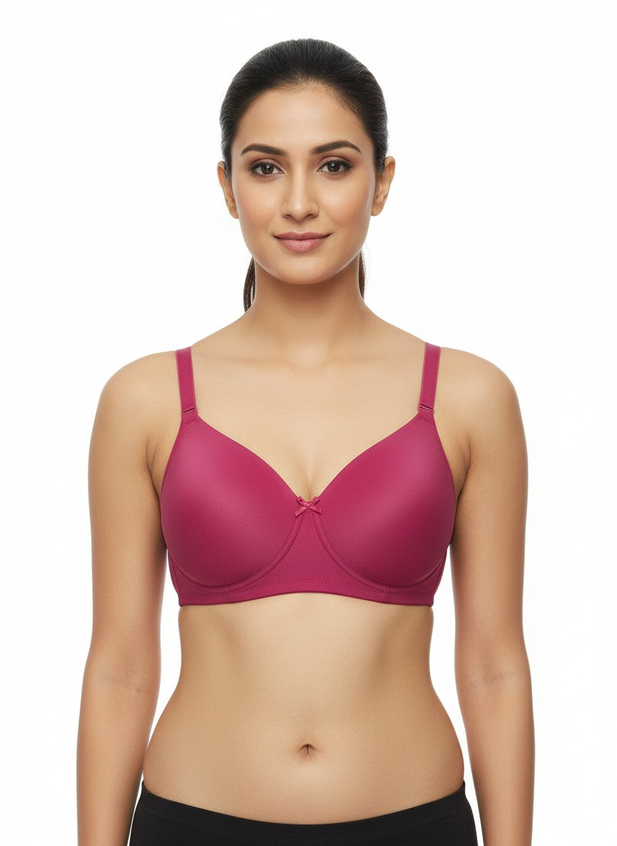Clovia Padded Demi T-Shirt Bra is designed to offer a reassuring blend of comfort and confidence, making it a dependable choice for everyday wear. The demi coverage cups are padded for a gently enhanced shape while remaining discreet under clothing, and the non-wired construction ensures a soft, pressure-free fit through the day. Crafted from polyamide, the fabric feels smooth against the skin and sits neatly under T-shirts and fitted outfits, helping clothes glide over it while maintaining a clean silhouette. The U-Back design adds stability, while detachable straps allow for versatile styling to suit different necklines, and the secure hook-and-eye closure at the back keeps the bra comfortably in place. Ideal for regular use, this bra balances support and ease, and is best maintained with simple hand wash care to preserve its shape, fabric performance, and long-term comfort.