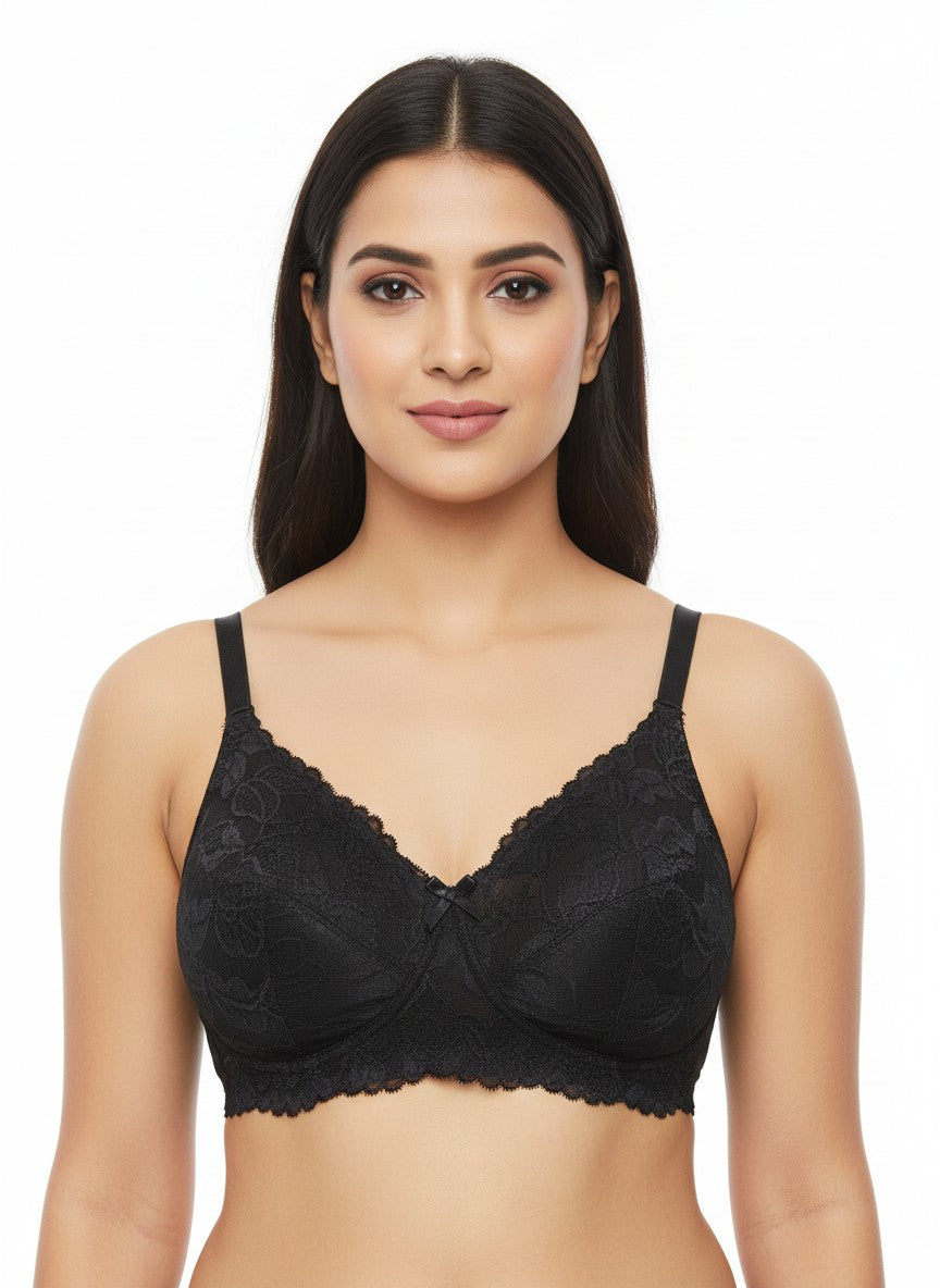 Clovia Padded Full Coverage Bra offers secure full coverage and gentle shaping for everyday wear, featuring a non-wired design that provides comfortable support and a natural feel while the padded cups enhance confidence under clothing. Crafted from polyamide lace, it combines a soft, smooth touch against the skin with a delicate lace look, making it suitable for regular use while still feeling feminine. The U-Back design helps with better hold and stability, while detachable straps allow flexible styling to suit different outfits. Finished with a practical hook-and-eye closure for a secure fit, this bra is designed for comfort throughout the day and is best maintained with a gentle hand wash to preserve its fabric and fit over time.