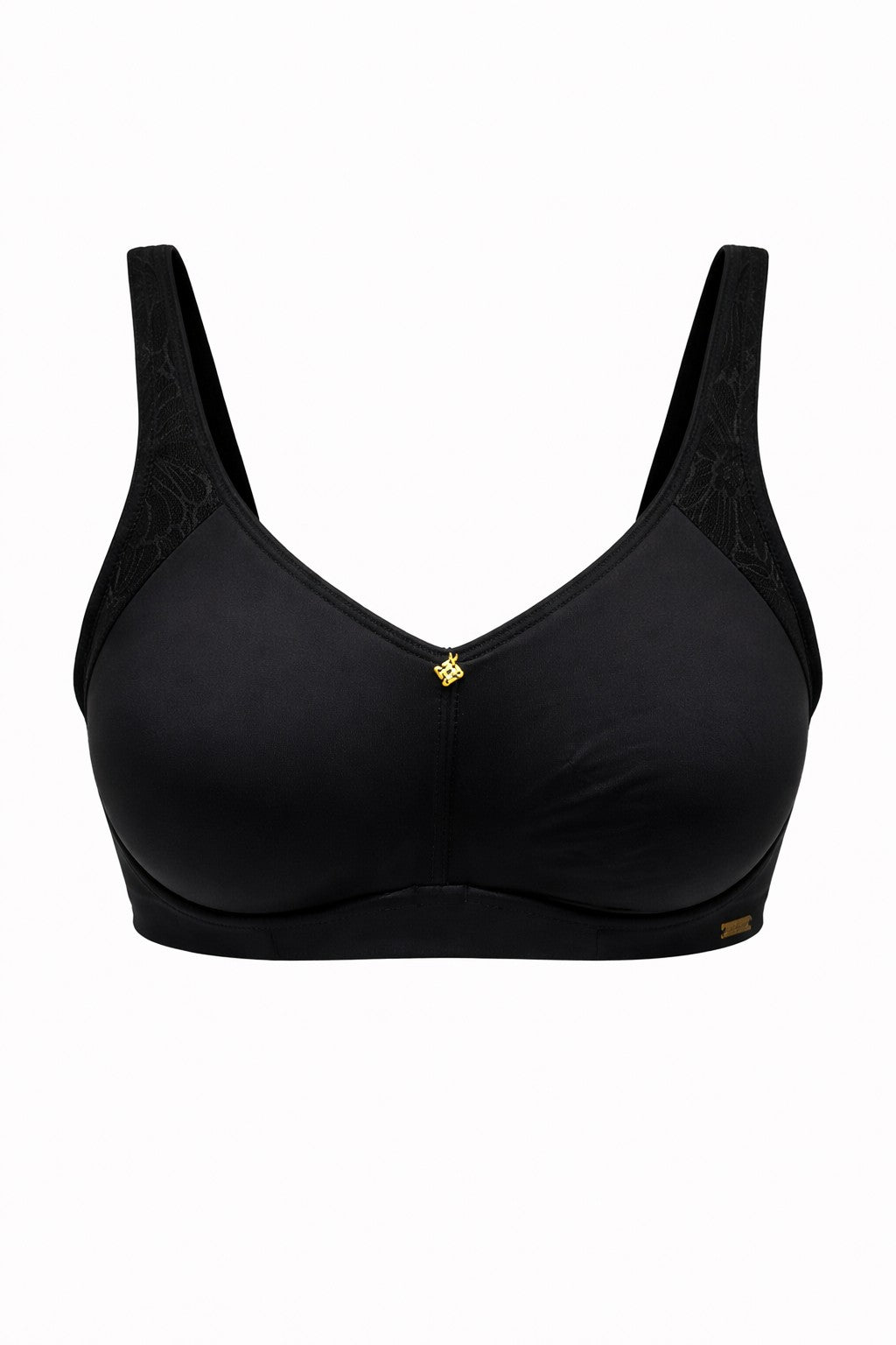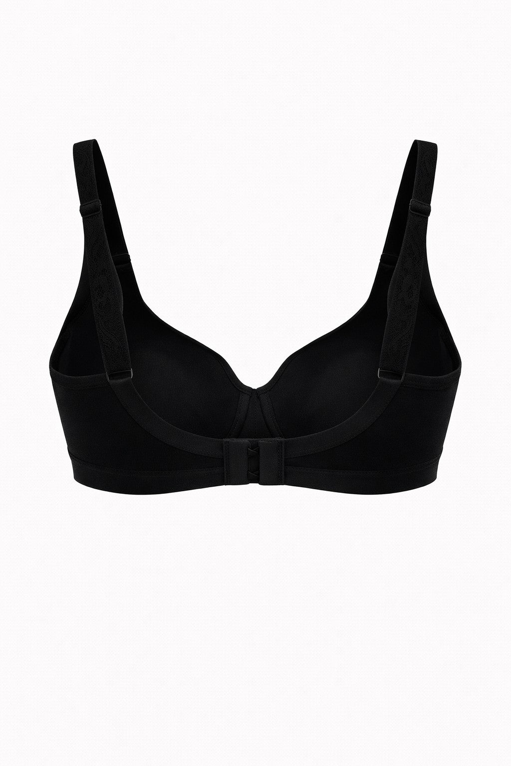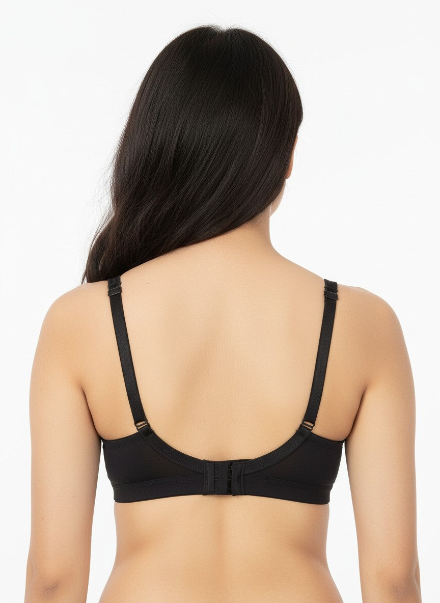 Amante Elegant Support Non-Padded Wired Bra in classic black offers full coverage and underwired support to keep you feeling secure and confident through the day, with a straight back and adjustable straps that allow you to personalize the fit for lasting comfort. Crafted primarily from polyamide for a smooth, supportive feel against the skin, this non-padded style gently shapes without adding bulk, while the lace pattern lends an elegant, feminine touch suitable for everyday wear or special moments. The hook-and-eye closure ensures a stable, reliable fit, making it a versatile choice for regular use. For best performance and longevity, it is designed to be hand washed without fabric conditioner, dried on a line, kept away from ironing, and washed separately when dark to maintain its color and fabric integrity over time.