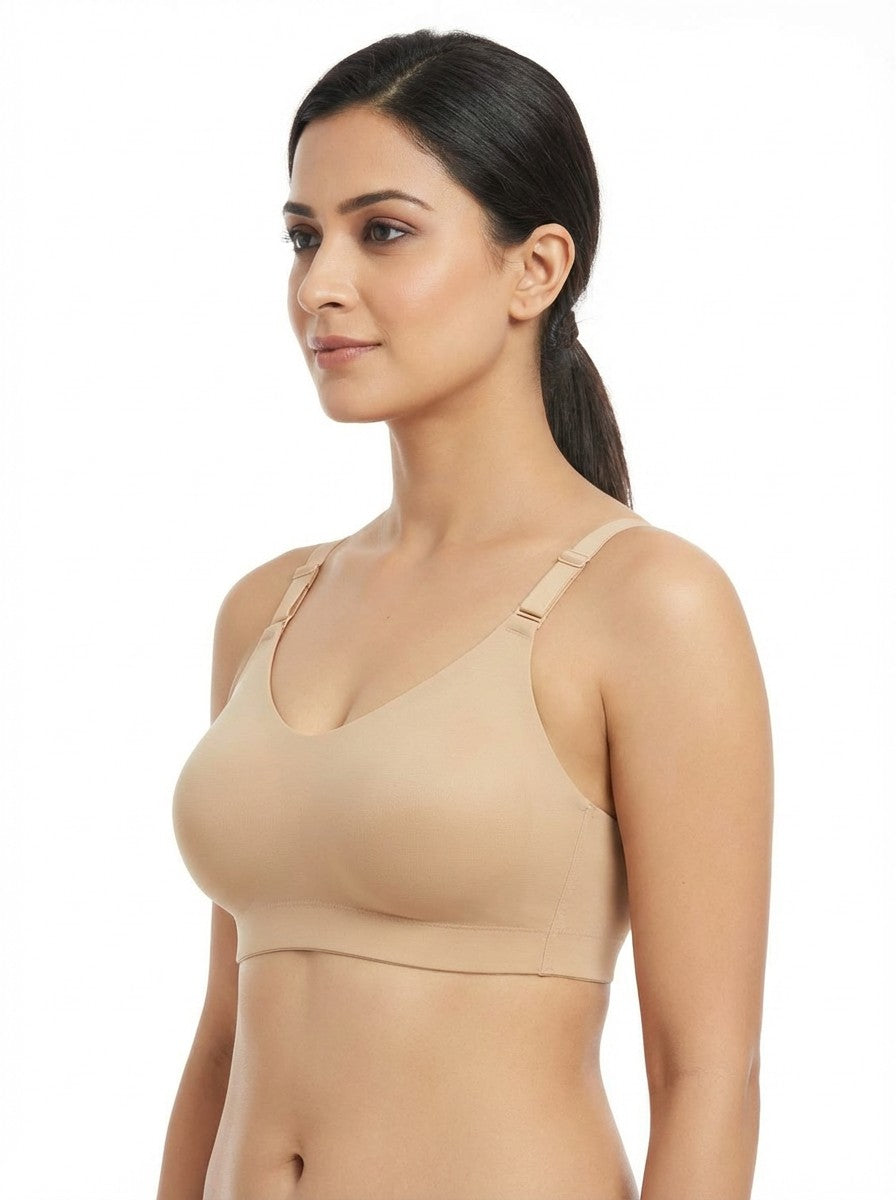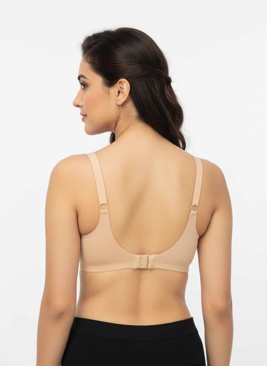 Amante Invisi Breathe Non-Padded Non-Wired Cotton Bra offers full coverage and gentle support, making it a reassuring choice for everyday wear and long hours of comfort. The non-wired, non-padded design creates a natural shape while maintaining ease and confidence, complemented by an adjustable strap setup and a secure hook-and-eye closure for a personalized fit. Its U-Back styling adds to the stability and support, helping the bra stay comfortably in place under T-shirt bras and other daily outfits. Crafted primarily from cotton for a soft, breathable feel, it is suitable for regular use, and the hand wash without fabric conditioner care instructions help maintain the fabric’s performance and longevity over time.