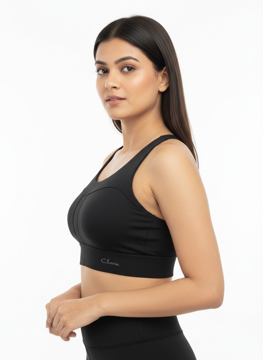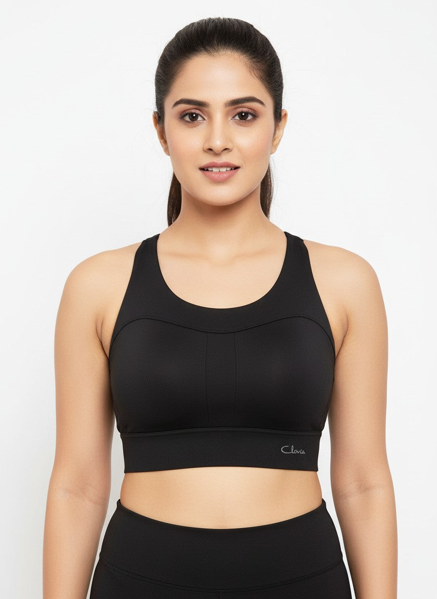 Clovia Padded Racerback Sports Bra offers full coverage and non-wired comfort, giving you reassuring support and confidence for active days and everyday wear. The padded cups provide gentle shaping while maintaining modesty, and the racerback design with adjustable straps ensures a secure, stay-in-place fit that moves easily with your body. Crafted from polyester, it has a smooth, performance-oriented feel that is ideal for sports and gym sessions while remaining comfortable enough for regular use. The classic hook-and-eye closure allows a customizable fit, and with simple hand wash care, this bra is easy to maintain as a reliable staple in your active lingerie drawer.