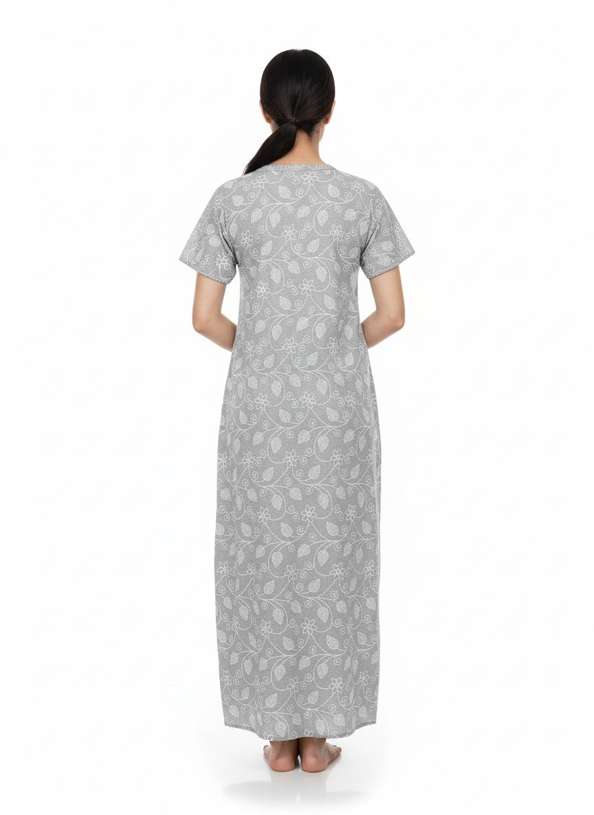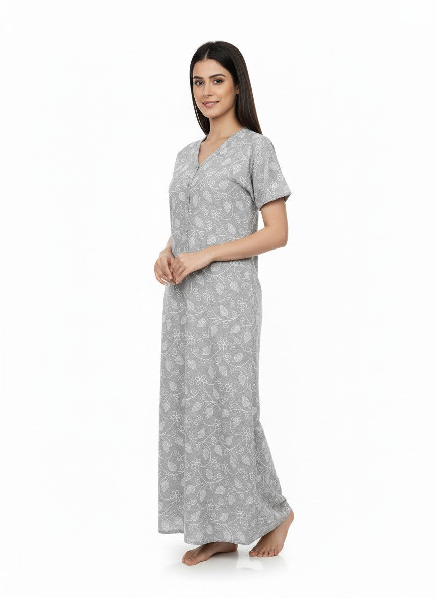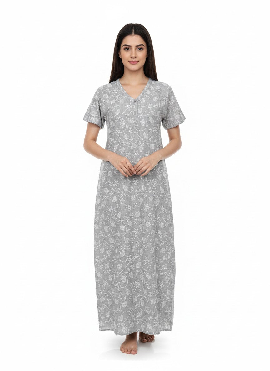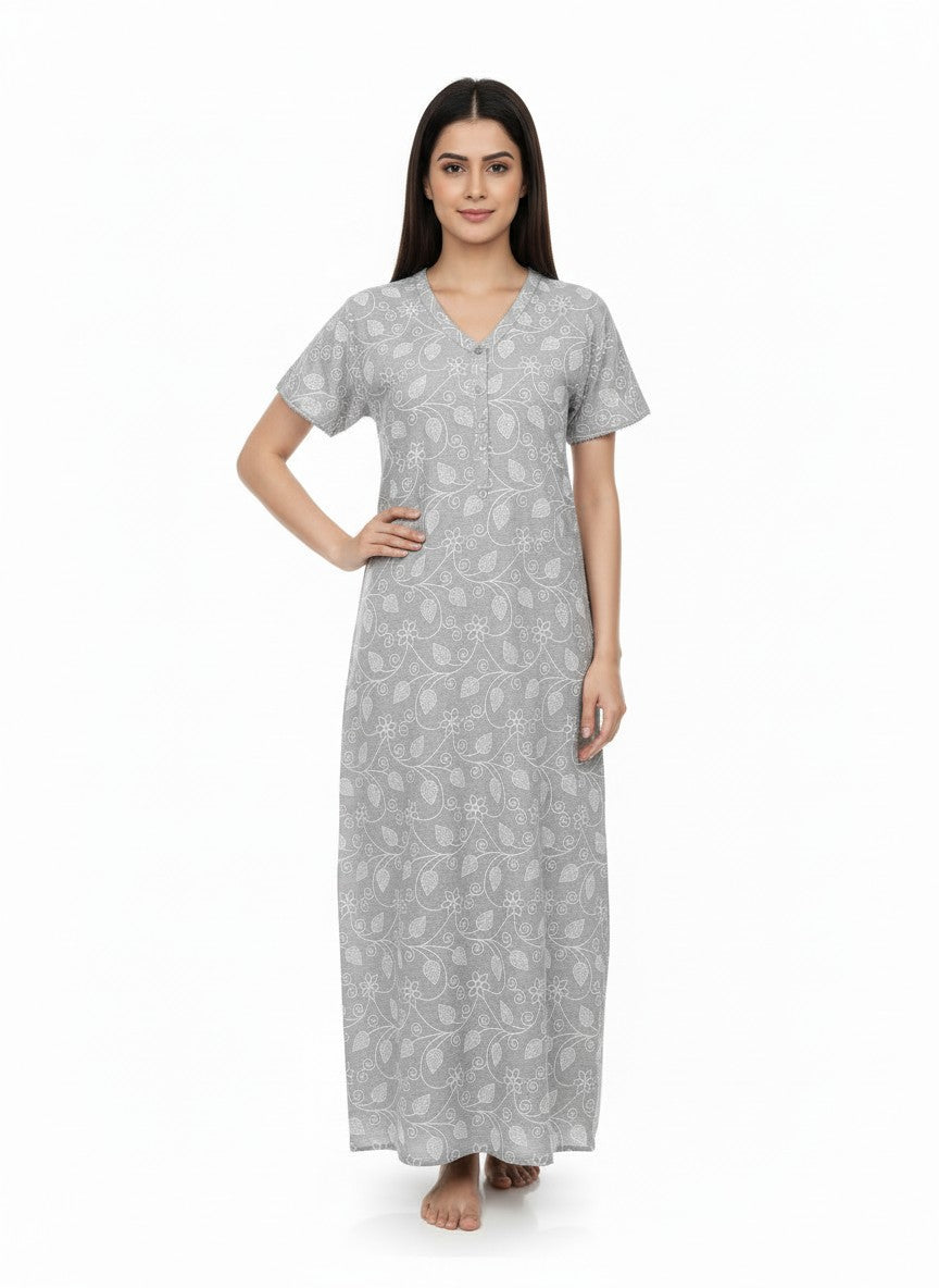 Experience everyday comfort with this Velvet nighty designed for all seasons, crafted in breathable, lightweight cotton fabric that offers stretch and ease. The regular fit silhouette features half sleeves, a V-neckline, and button closure, adorned with an abstract pattern to elevate your lounging and sleepwear. Easy to care for with machine wash cold, this nighty combines softness and style for your ultimate relaxation.