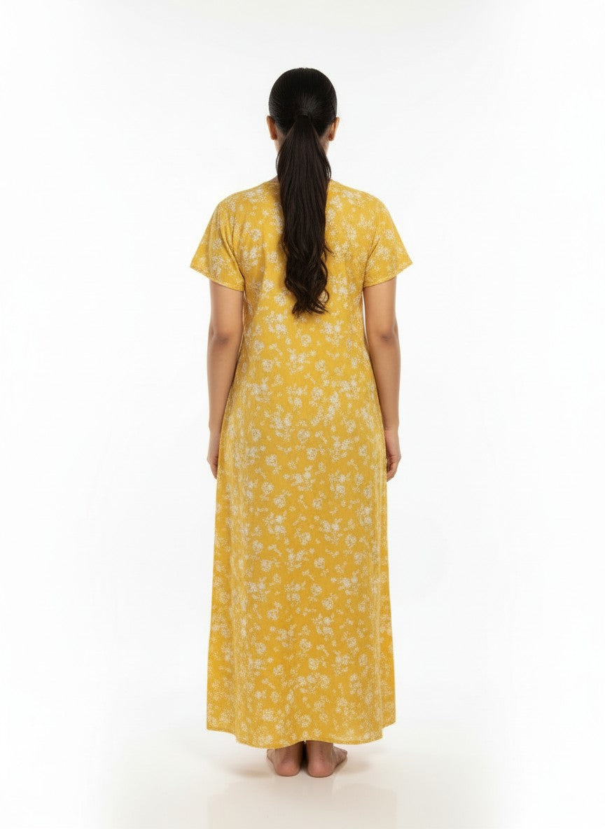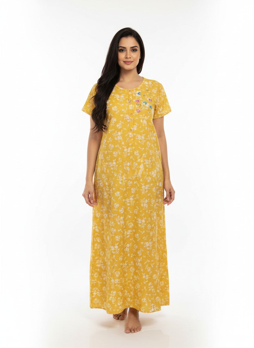 Experience everyday comfort with this Velvet nightdress in a flattering A-Line silhouette. Designed with a round neck, half sleeves, and slip-on closure, it features a charming floral pattern that adds a touch of elegance. Made from lightweight cotton fabric, it offers breathability and stretch for all-season wear. Easy to care for with machine wash cold instructions, this piece is perfect for lounging or restful nights.