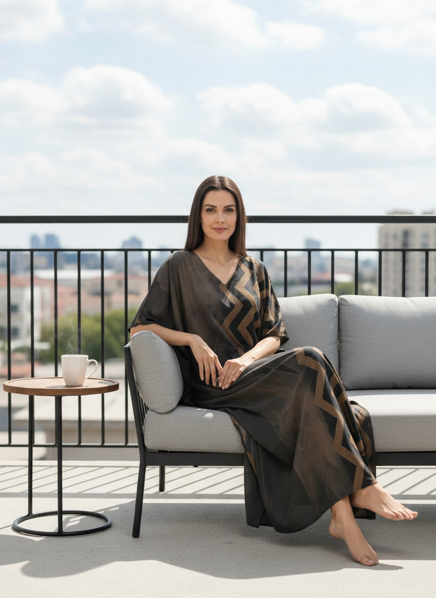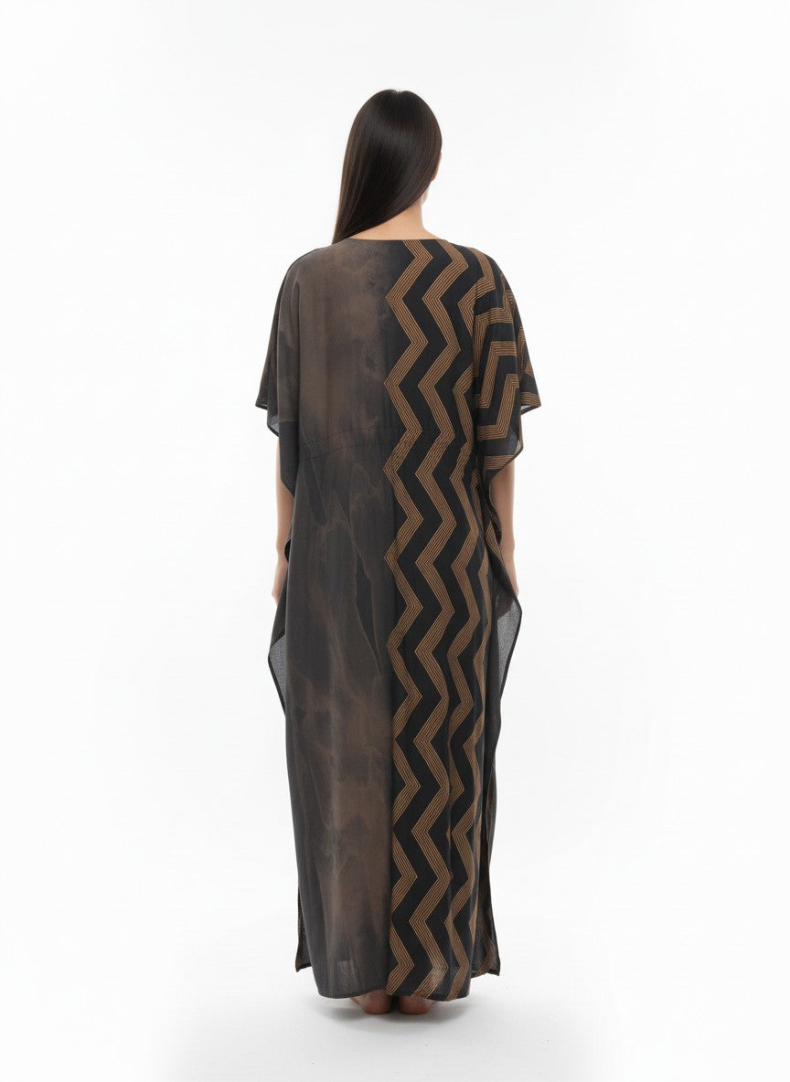 Experience ultimate comfort and softness in this relaxed fit nightdress, perfect for lounging and everyday wear. Featuring a flattering kaftan silhouette with long sleeves, a V-neckline, and a convenient slip-on closure, it showcases an abstract pattern that adds a touch of elegance. Crafted from lightweight Italian satin, this breathable and stretchable fabric is suitable for all seasons, ensuring you stay comfortable year-round. Easy to care for with hand wash separately instructions, this nightdress embodies luxe lounge vibes for your everyday comfort.
