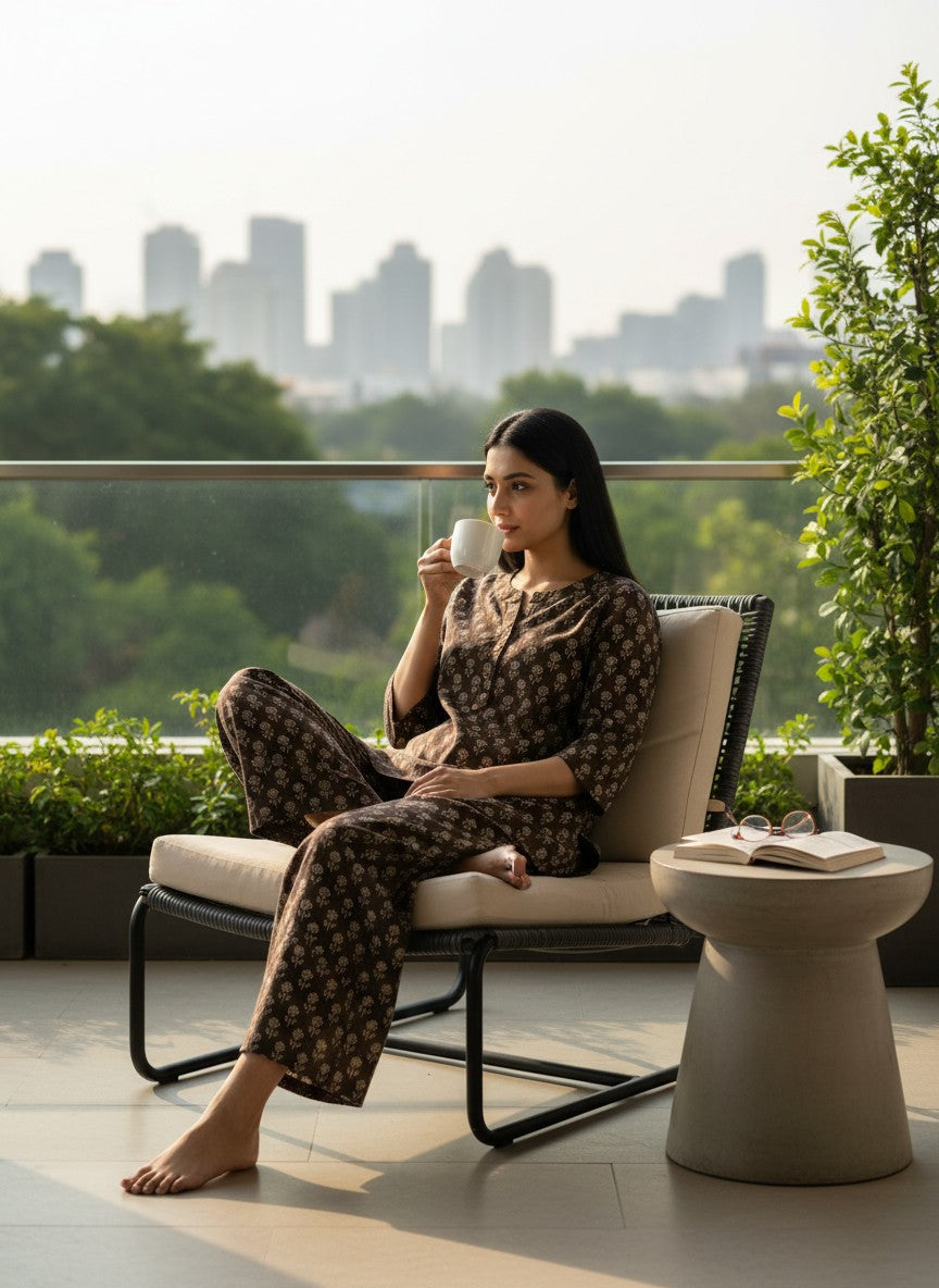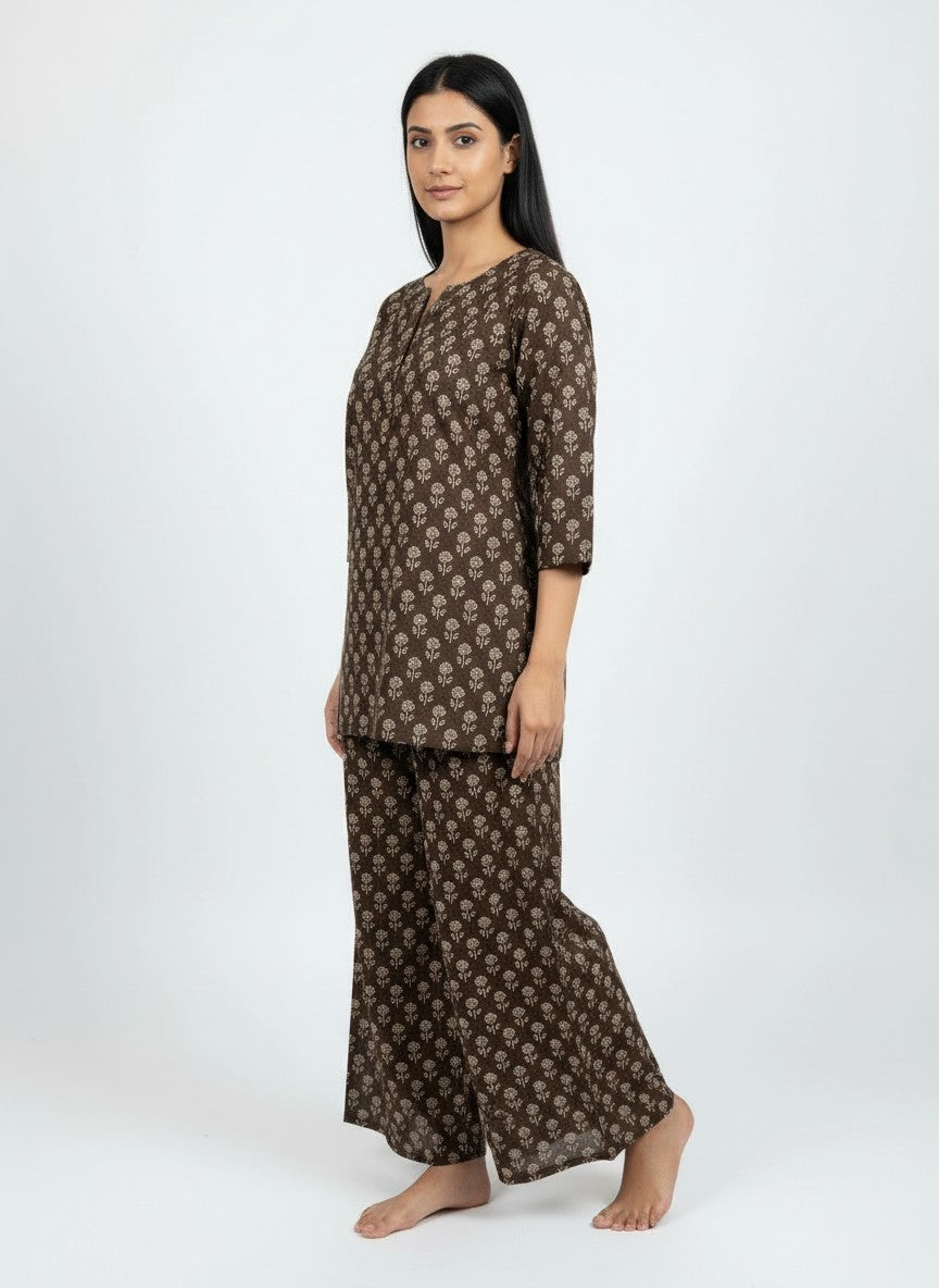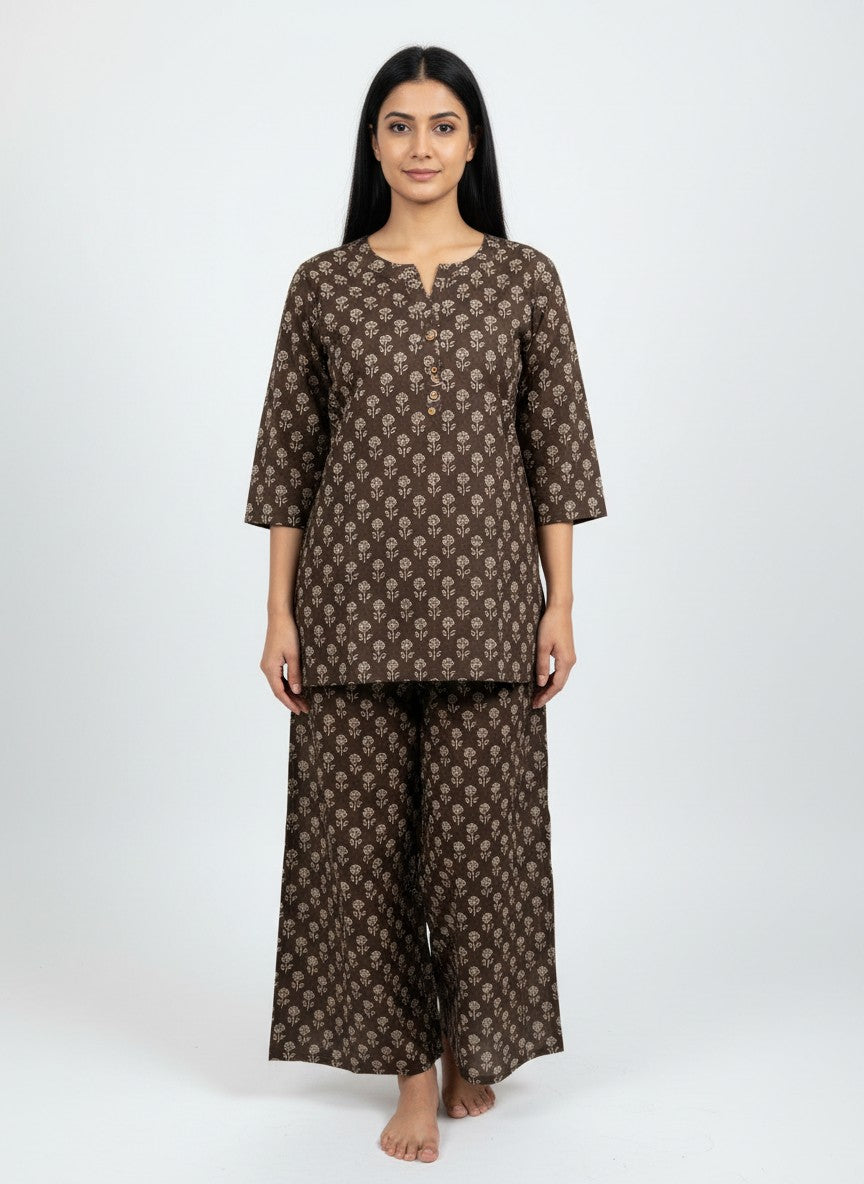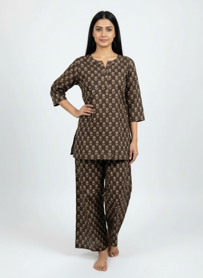 Experience unparalleled comfort in this Bhx-Eo Kurti Set, designed to evoke a serene and cozy mood perfect for home and lounging. Featuring a regular fit silhouette with long sleeves, a round neckline, and pullover closure, this set is adorned with a charming floral pattern that adds a touch of elegance. Crafted from breathable cotton with medium weight and a non-stretchable texture, it ensures suitability across all seasons. Easy to maintain with machine wash cold instructions, this loungewear piece is ideal for everyday relaxation and effortless style.