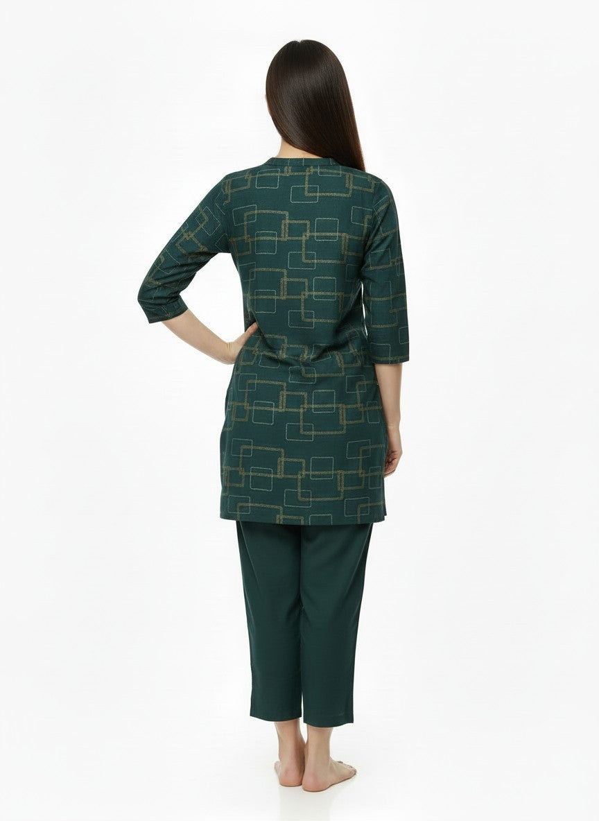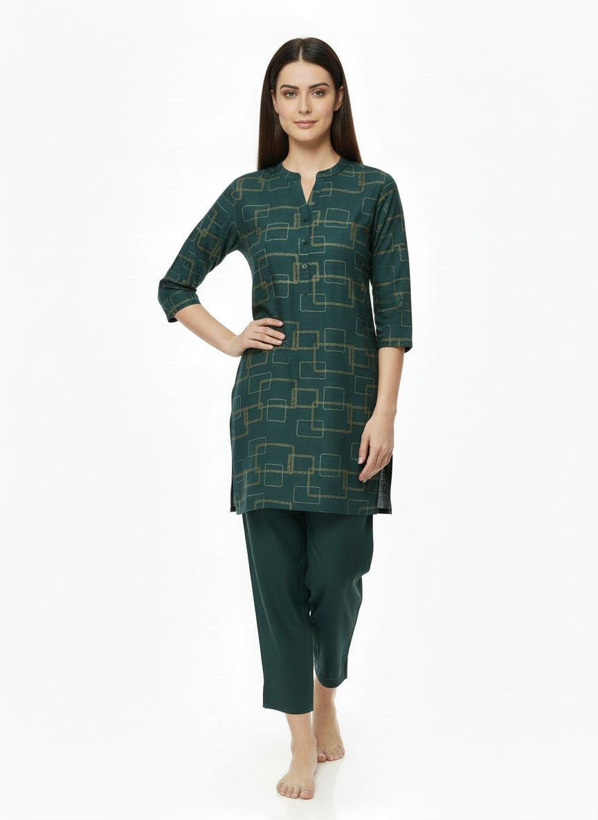 Experience unmatched comfort with this Womenstyle Kurti Set designed for emotional ease and everyday relaxation. Featuring a regular fit silhouette with long sleeves, a round neckline, and a convenient pullover closure, it showcases an abstract pattern that adds a subtle artistic touch. Crafted from breathable linen fabric with medium weight and non-stretchable properties, this outfit is ideal for all seasons. Easy to maintain with machine wash cold instructions, it’s perfect for lounging or casual wear, offering both style and comfort.