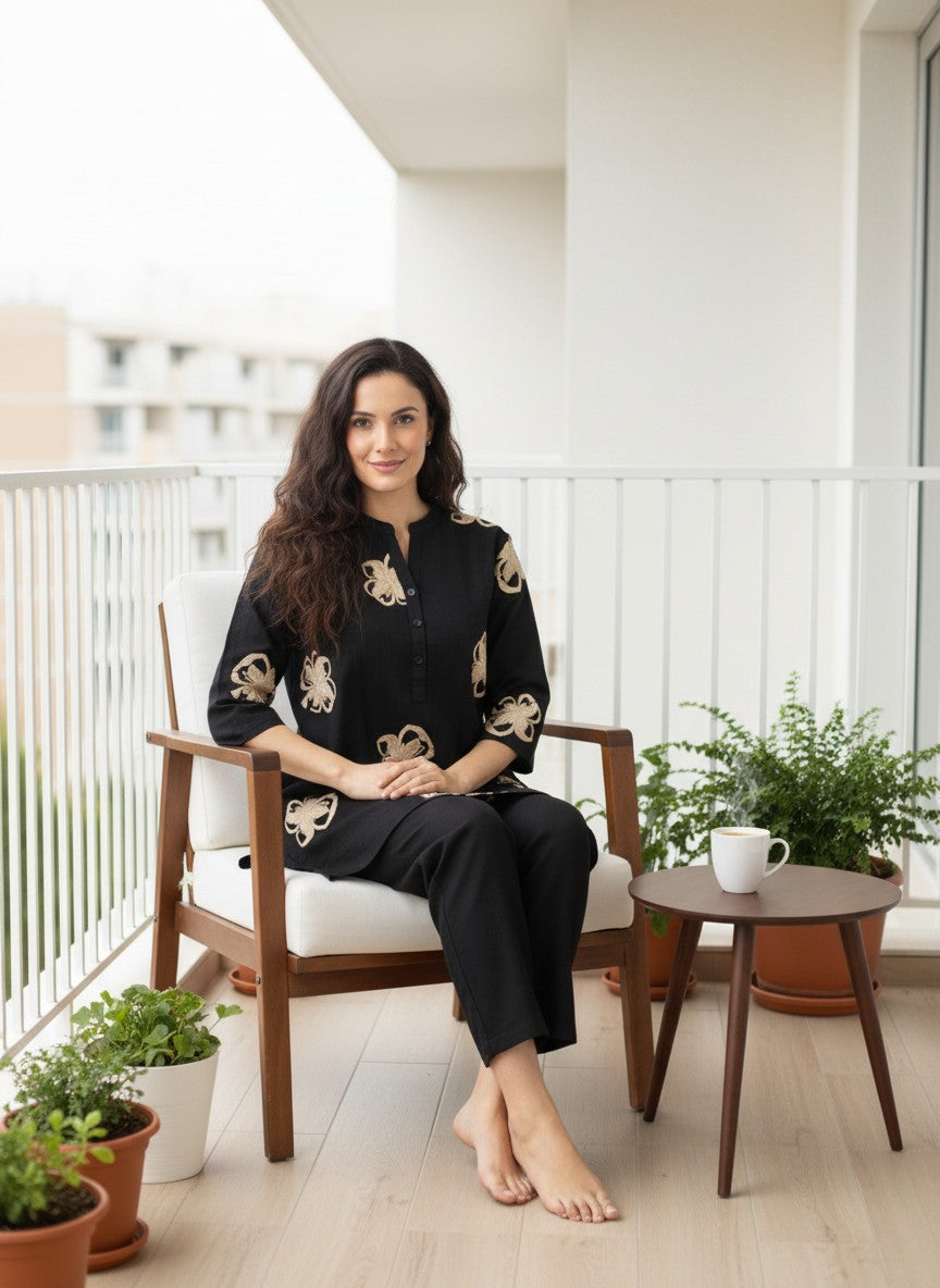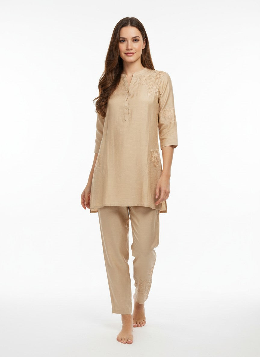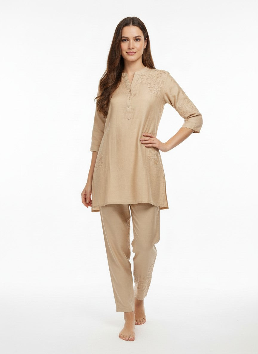Experience ultimate comfort and softness ideal for lounging and casual wear with this Womenstyle Kurti Set. Featuring a regular fit silhouette with half sleeves, a collar neckline, and button closure, its solid pattern adds timeless elegance. Made from breathable medium weight linen fabric, this non-stretchable set is perfect for all seasons. Easy to care for with machine wash cold instructions, it offers both style and convenience for everyday comfort at home or leisure.