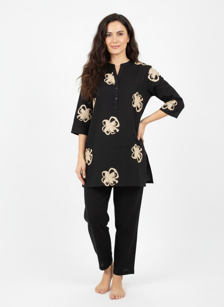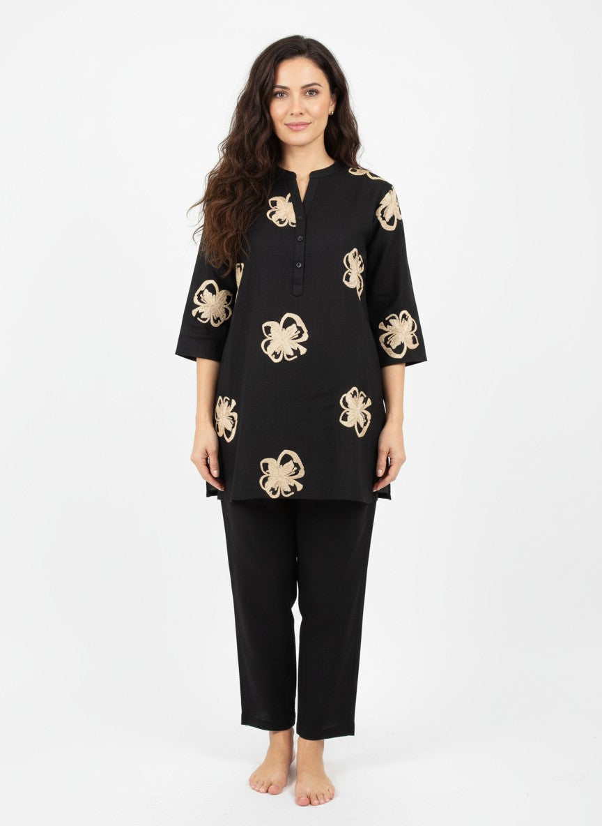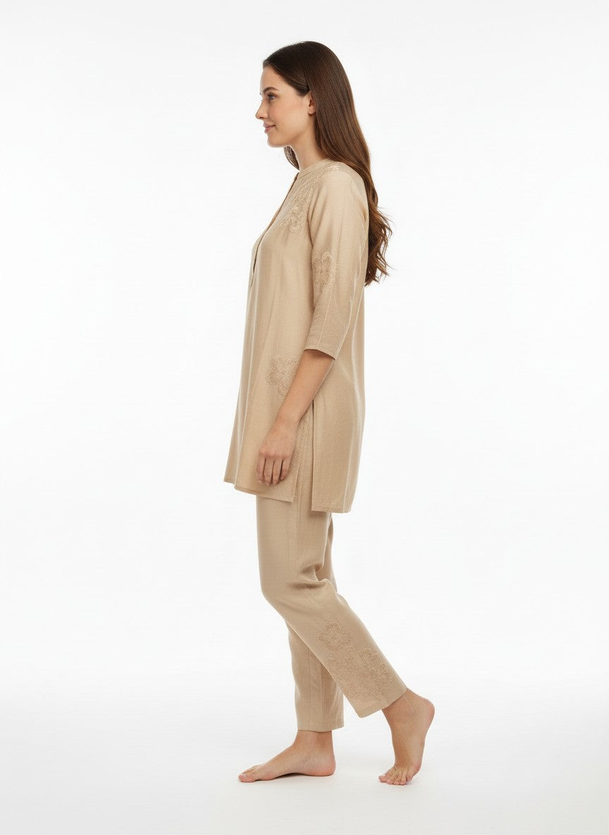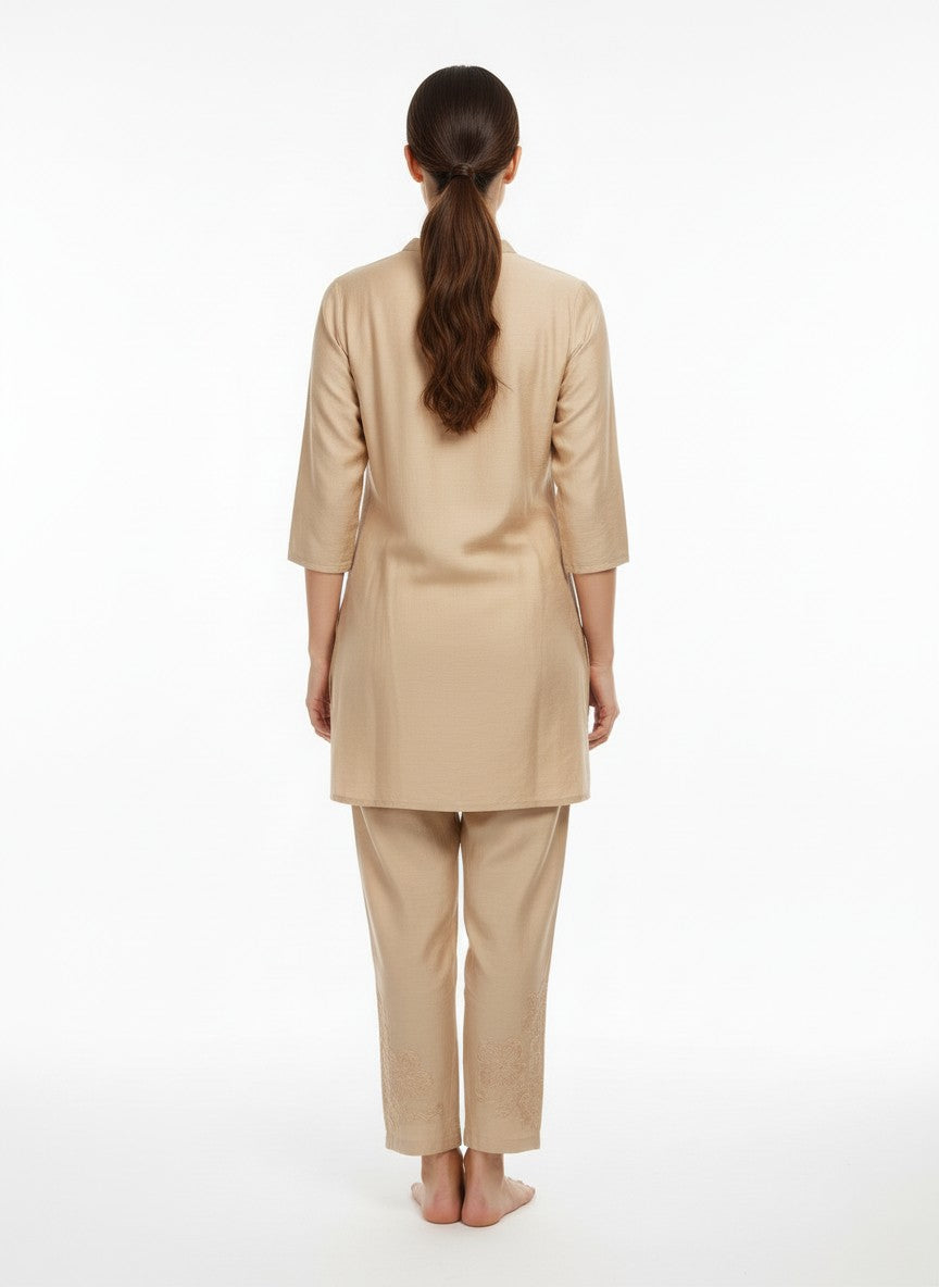 Experience ultimate comfort and softness ideal for lounging and casual wear with this Womenstyle Kurti Set. Featuring a regular fit silhouette with half sleeves, a collar neckline, and button closure, its solid pattern adds timeless elegance. Made from breathable medium weight linen fabric, this non-stretchable set is perfect for all seasons. Easy to care for with machine wash cold instructions, it offers both style and convenience for everyday comfort at home or leisure.