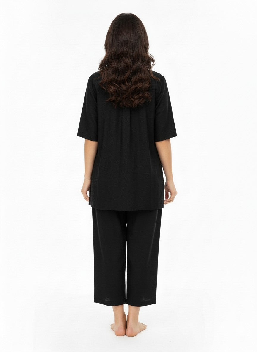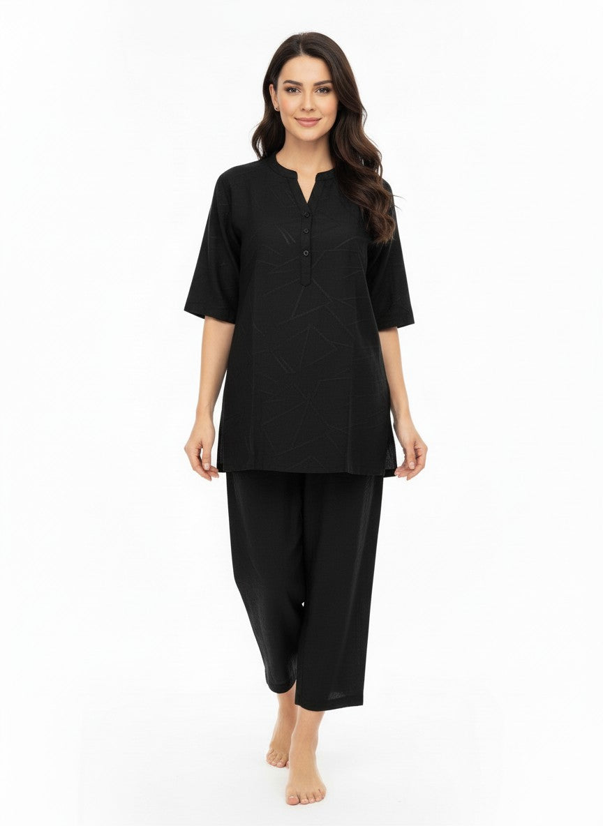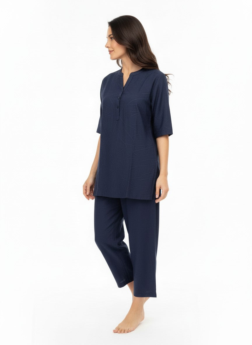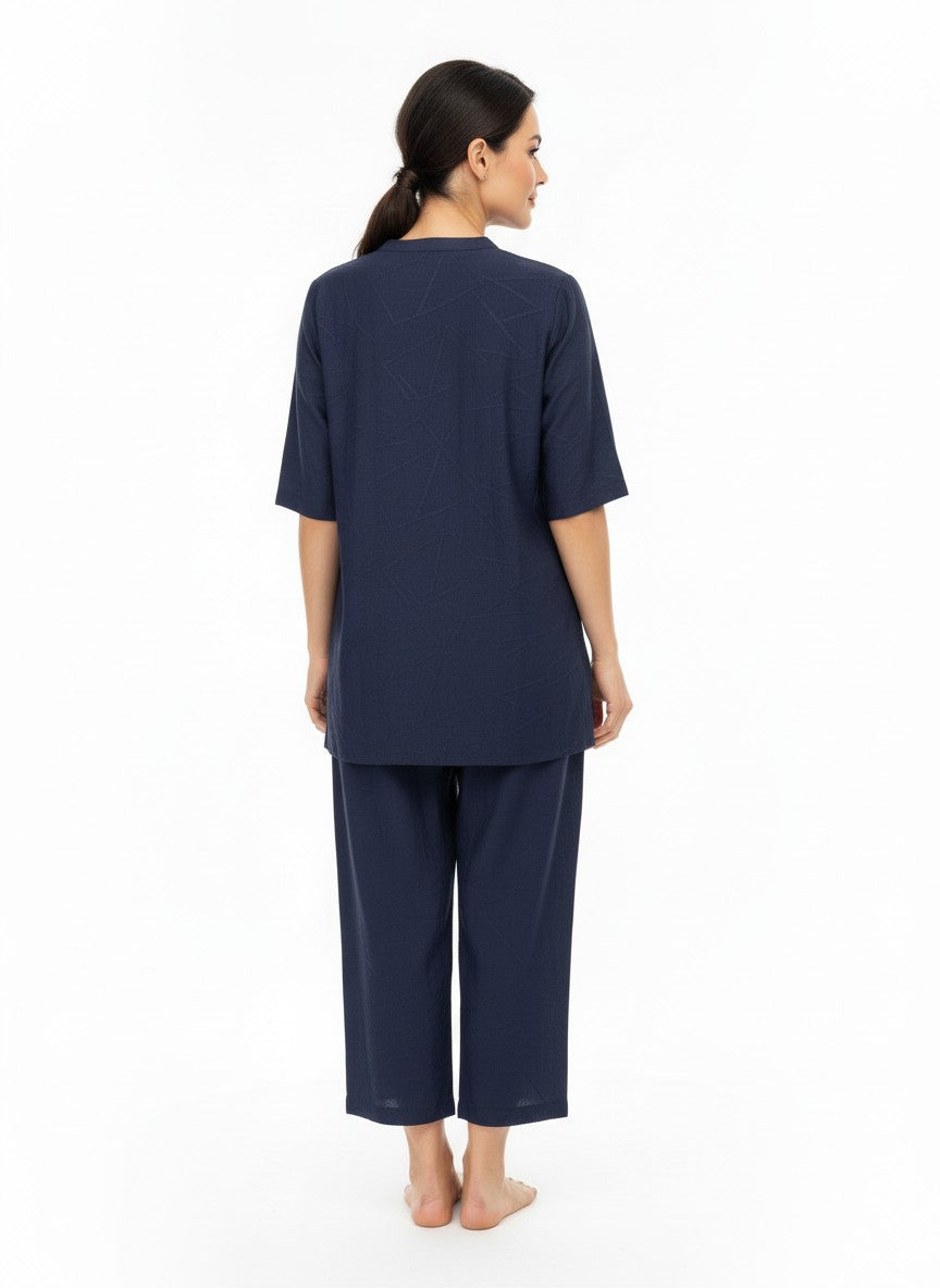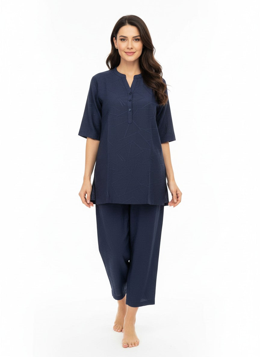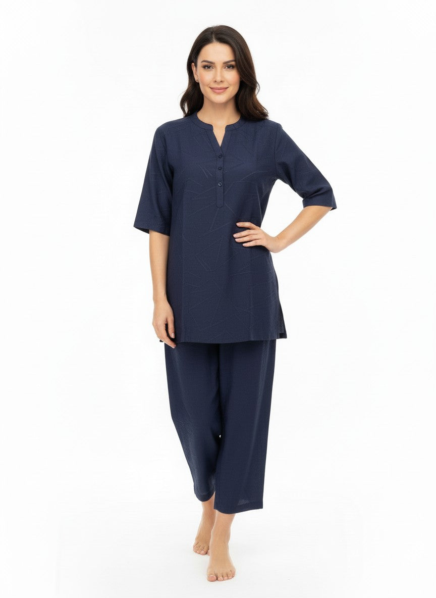 Experience ultimate comfort and relaxed elegance perfect for home and lounge in this Womenstyle Kurti Set. Designed with a relaxed fit, half sleeves, a collar neckline, and a button closure, it features a solid pattern that adds simple sophistication. Crafted from breathable medium-weight Linen fabric that is non-stretchable and suitable for all seasons, this piece ensures both comfort and style. Easy to maintain with machine wash cold instructions, it's an ideal choice for lounging or everyday comfort.