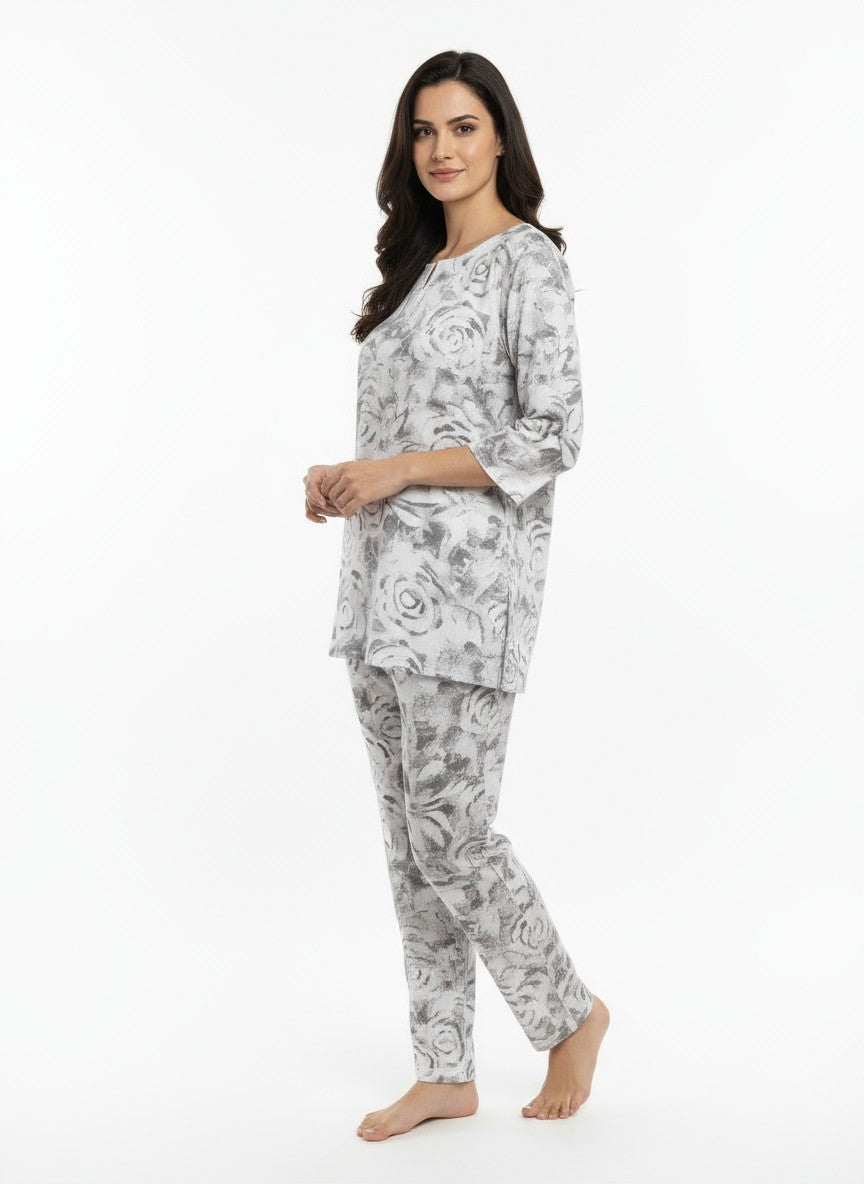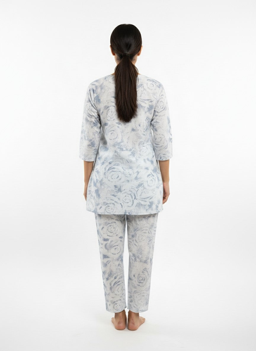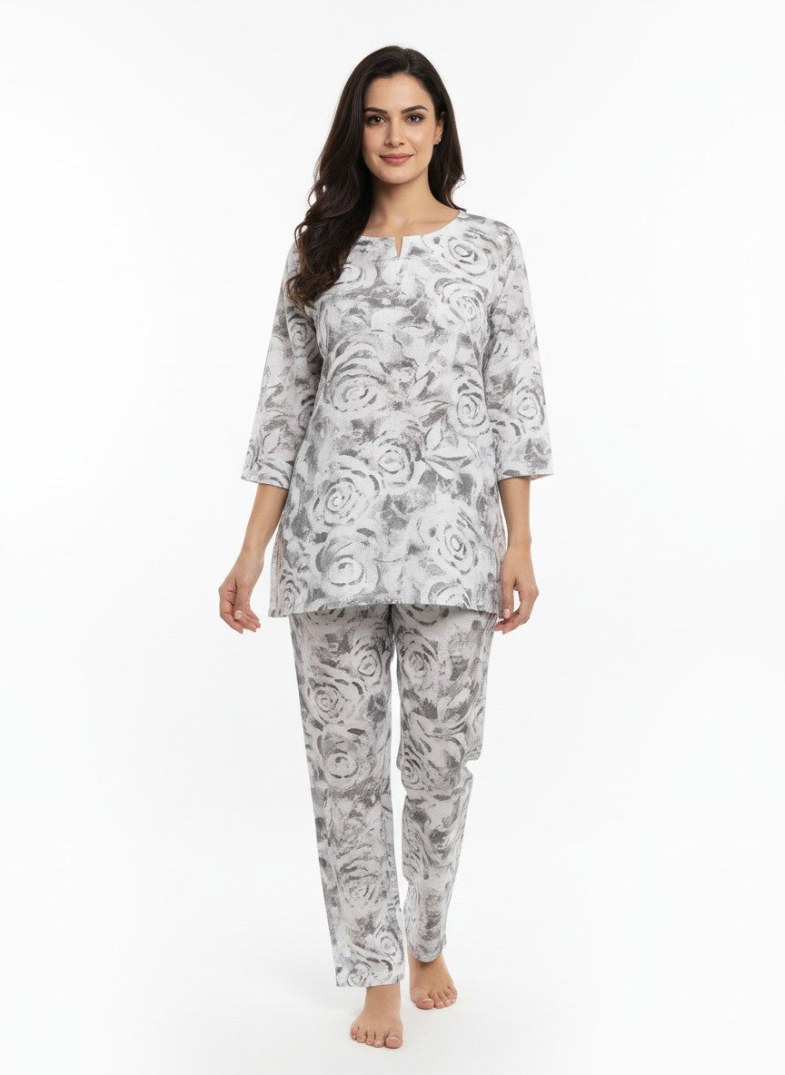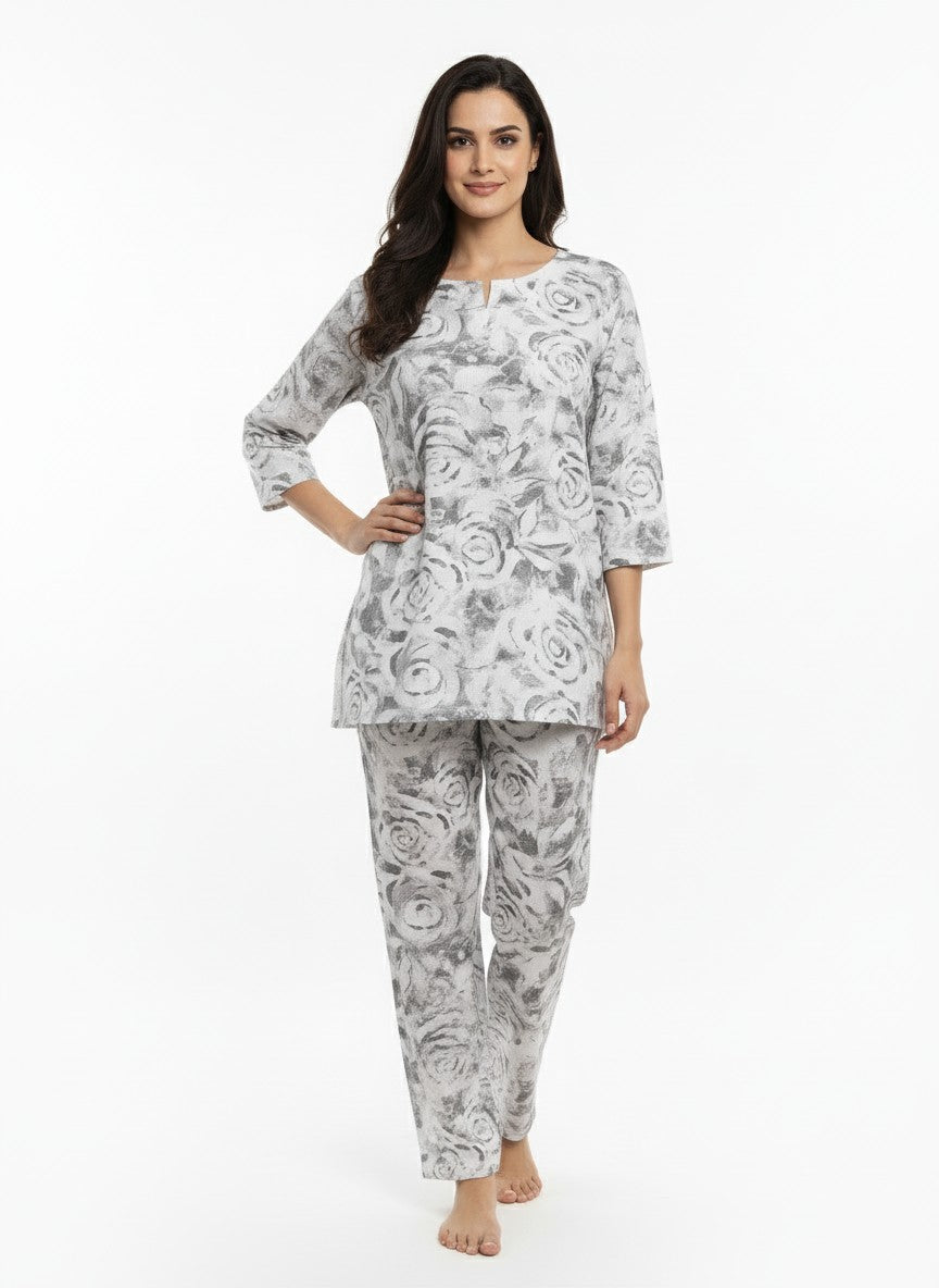 Experience the gentle comfort of this Womenstyle kurti set, designed for a relaxed and soothing mood ideal for home and lounge wear. Featuring a regular fit silhouette with long sleeves, a round neckline, and pullover closure, this kurti set is adorned with a charming floral pattern that enhances its appeal. Crafted from breathable linen fabric with medium weight and non-stretchable qualities, it suits all seasons effortlessly. Easy to care for with machine wash cold instructions, this outfit is perfect for lounging, everyday comfort, and embracing a serene lifestyle.