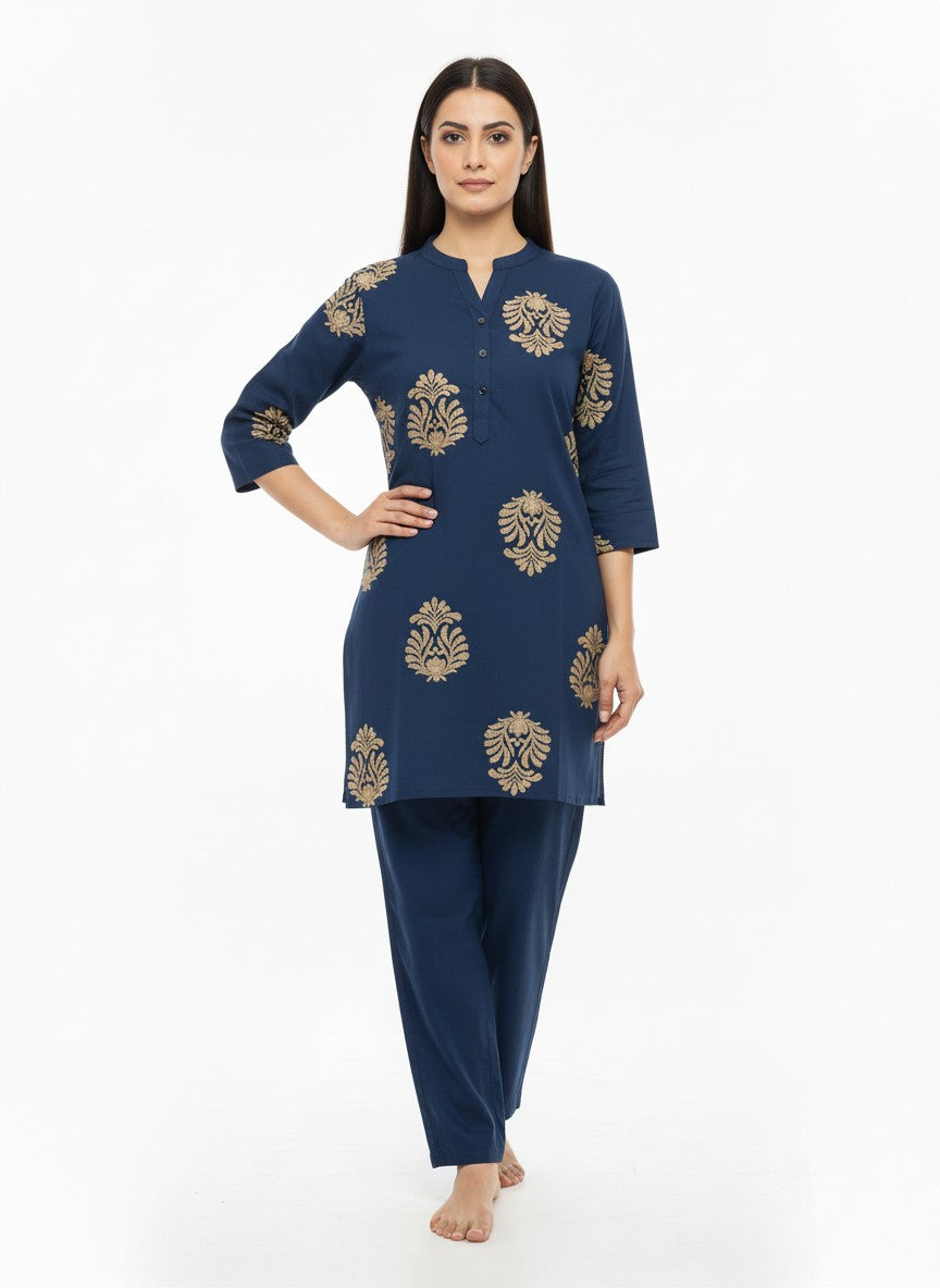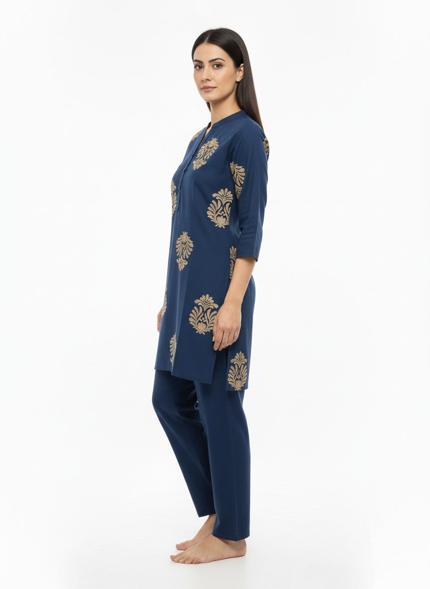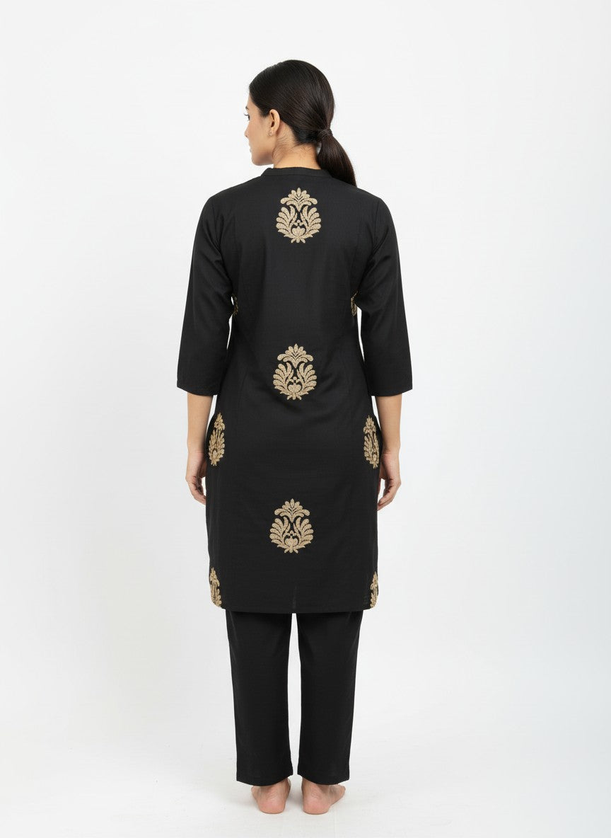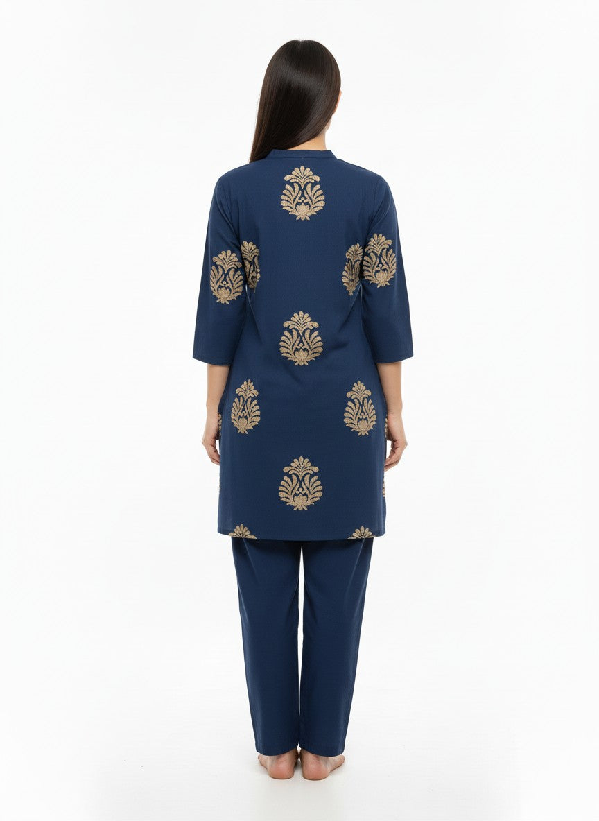 Experience ultimate comfort and softness ideal for home and lounge wear with this regular fit kurti set featuring long sleeves, a collar neck, and button closure. The embroidered pattern adds a touch of elegance, crafted from lightweight breathable linen fabric that provides stretch and is suitable for all seasons. Easy to care for with machine wash cold instructions, this kurti set is perfect for everyday comfort and relaxed living.