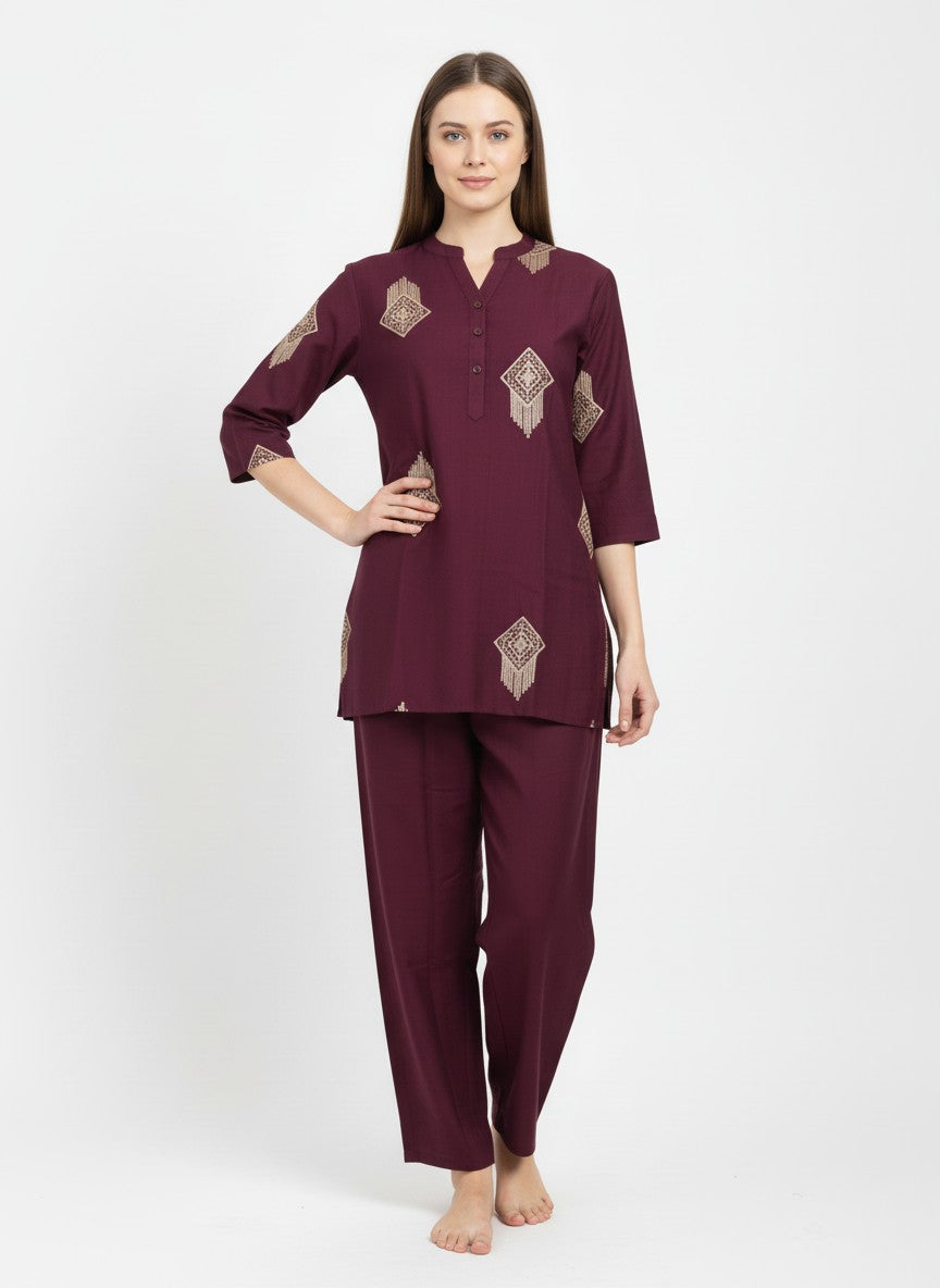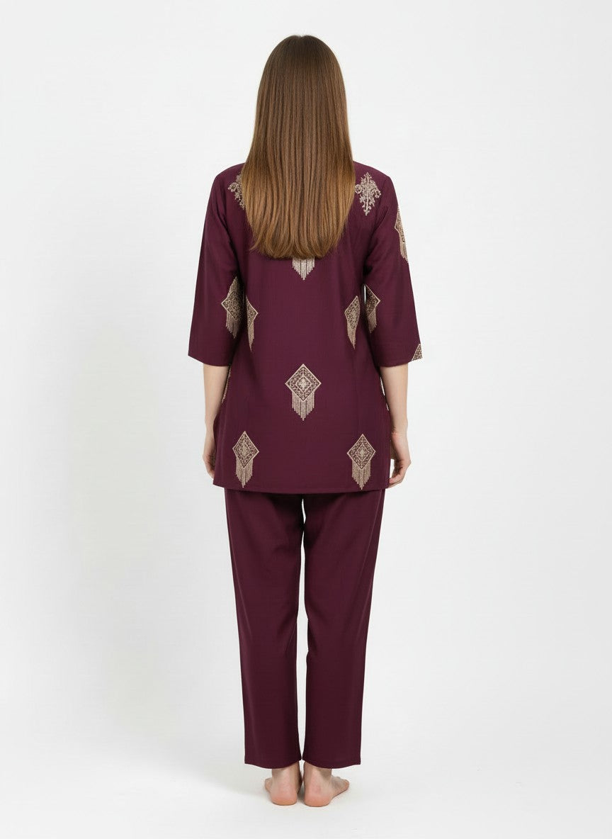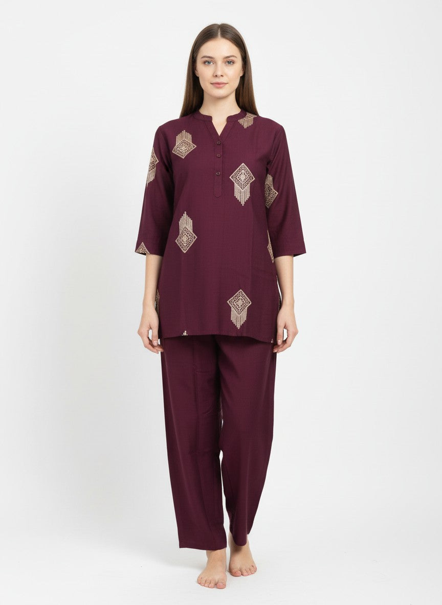 Experience unmatched comfort and style with this Womenstyle kurti set, perfect for lounging at home or casual outings. The regular fit silhouette features long sleeves, a collar neckline, and button closure, adorned with an abstract pattern that adds a contemporary edge. Crafted from lightweight linen fabric, it offers breathability, stretch, and suitability for all seasons. Easy to care for with machine wash cold instructions, this ensemble ensures you stay comfortable and stylish throughout your day.