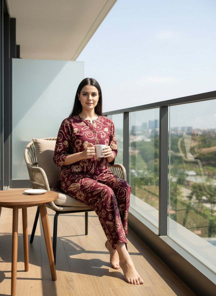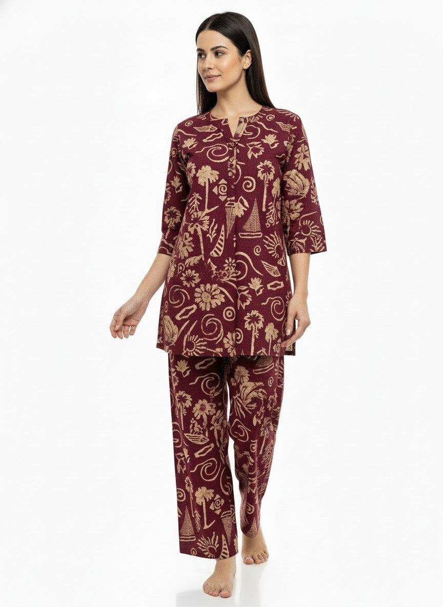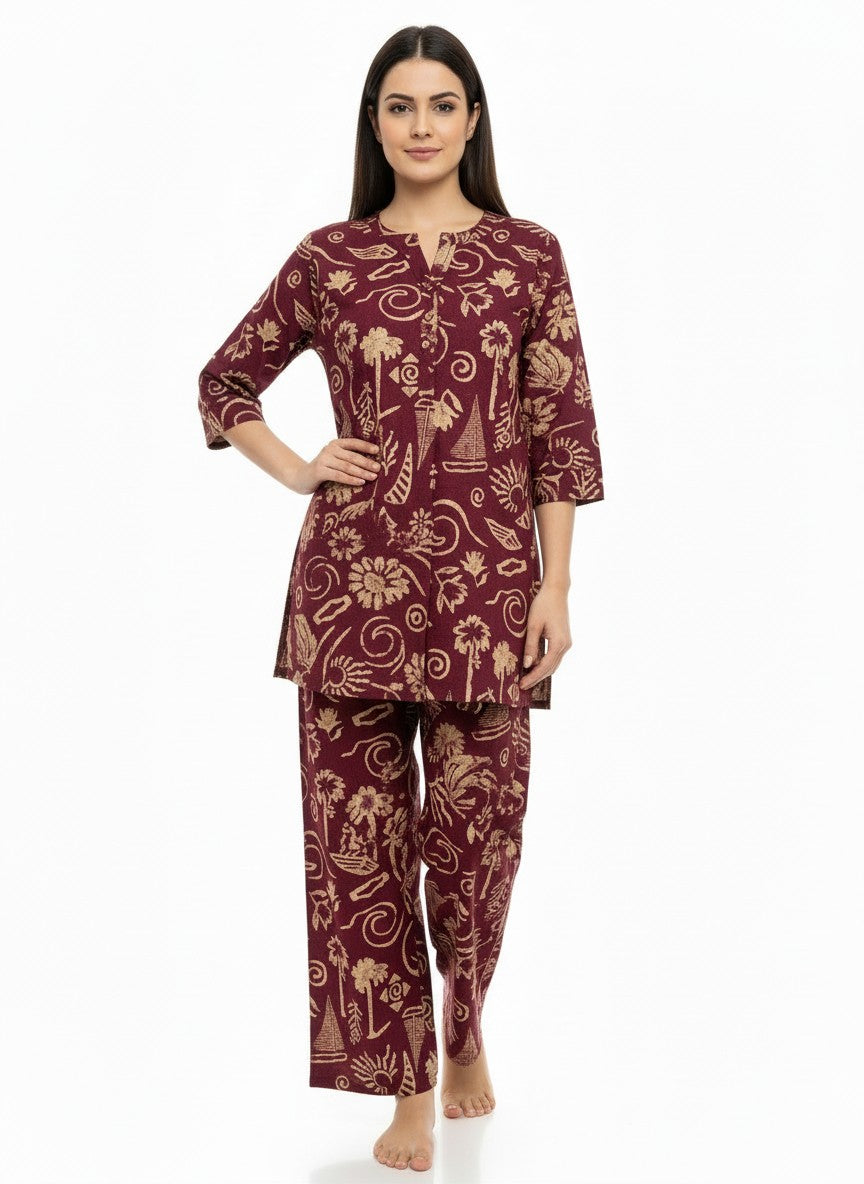 Experience ultimate comfort and relaxation in this Bhx-Eo Kurti Set, perfect for lounging at home with its soft feel and cozy mood. The loose fit silhouette features long sleeves, a round neckline, and button closure enhanced by an abstract pattern for a stylish look. Crafted from lightweight breathable cotton, it ensures year-round comfort without stretch, ideal for any season. Easy care with machine wash cold makes it a practical choice for everyday comfort and leisurewear.