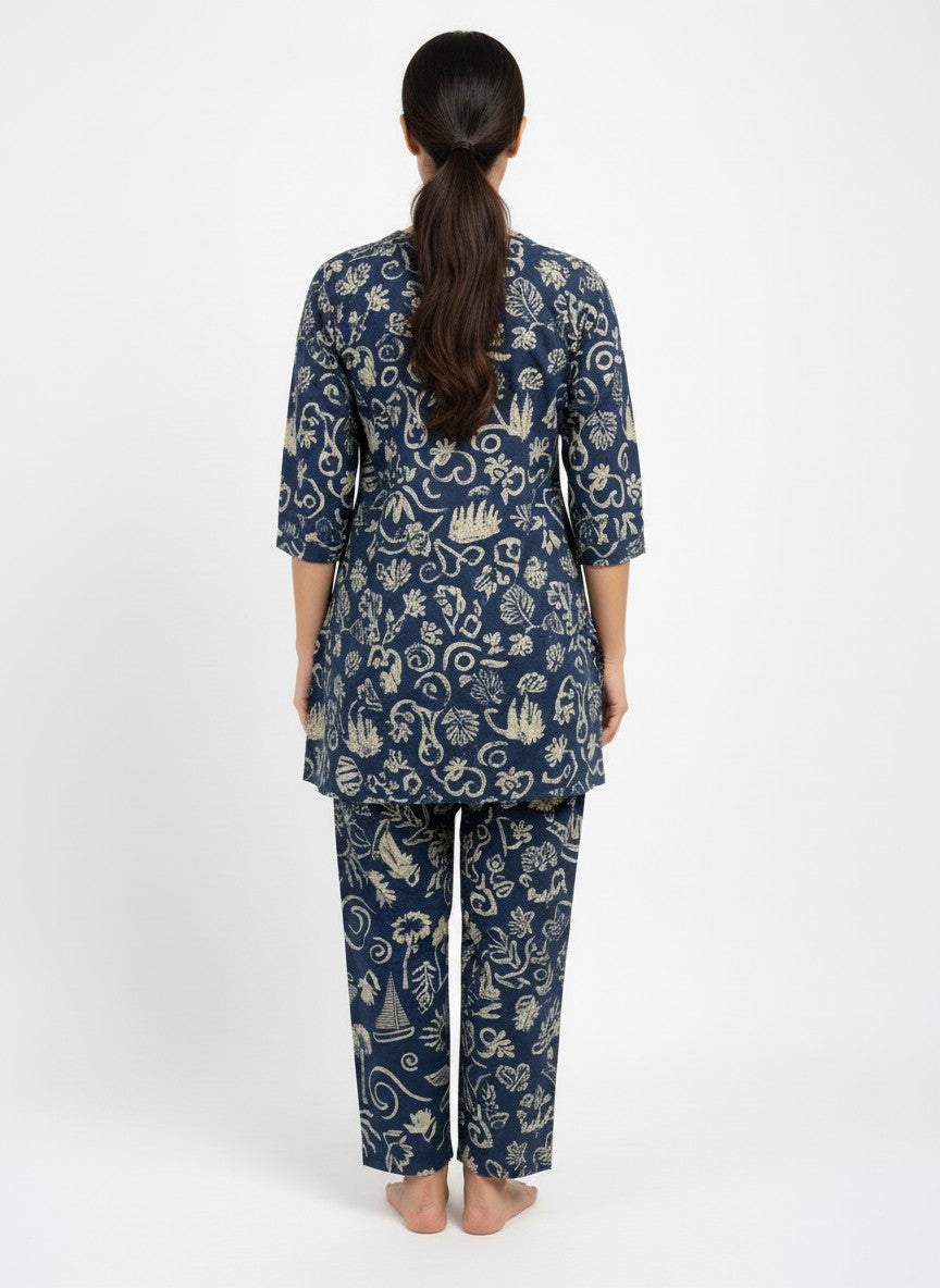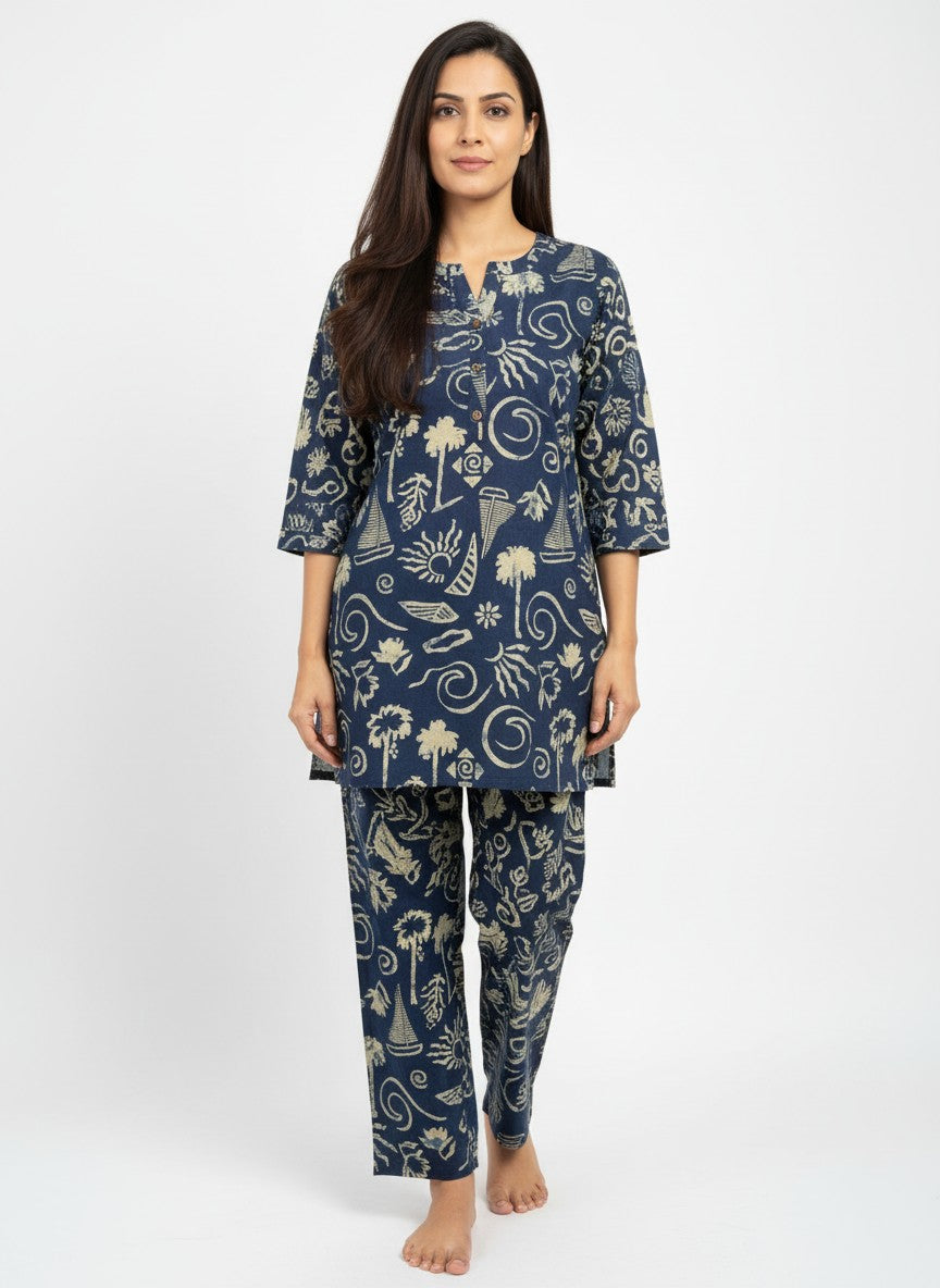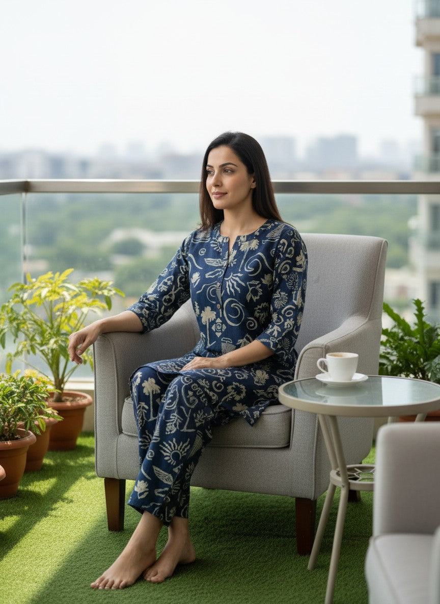 Experience ultimate comfort and casual elegance with this Bhx-Eo Kurti Set, designed for cozy home and lounge wear. The regular fit silhouette features long sleeves, a round neckline, and button closure, enhanced by an abstract pattern that adds visual interest. Made from lightweight cotton fabric, it ensures breathability and is ideal for all seasons with non-stretchable fabric. Easy to care for with machine wash cold instructions, this kurti set is perfect for everyday comfort and relaxed style.