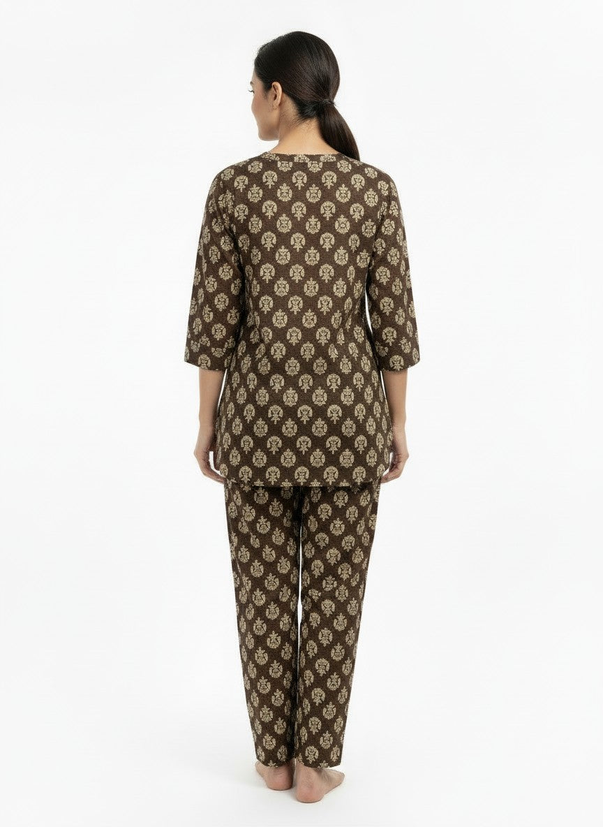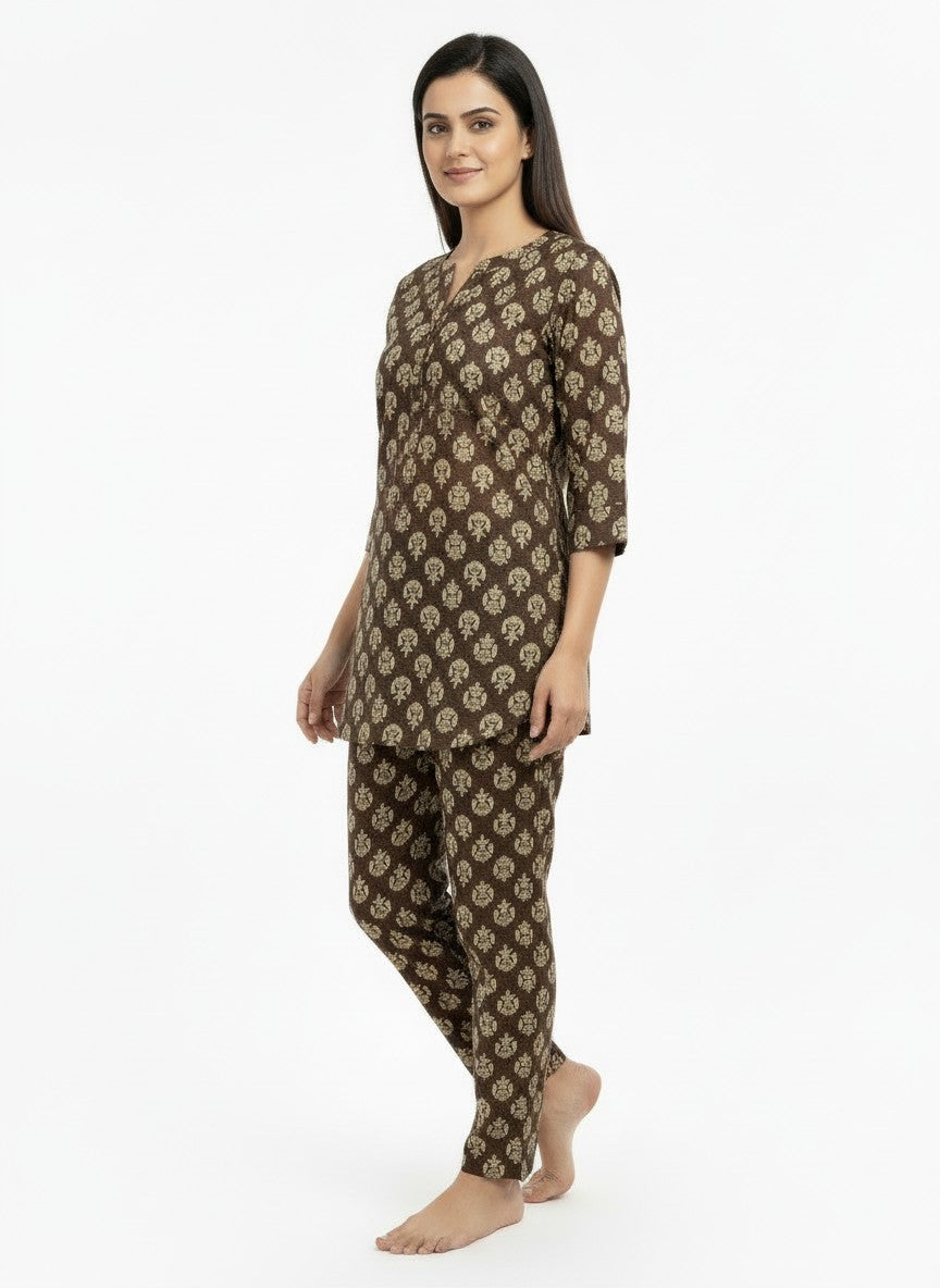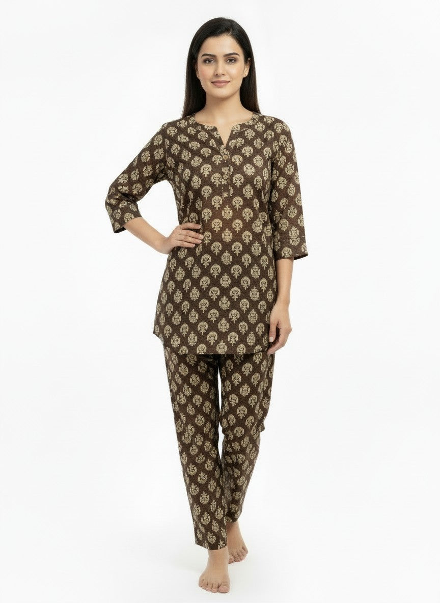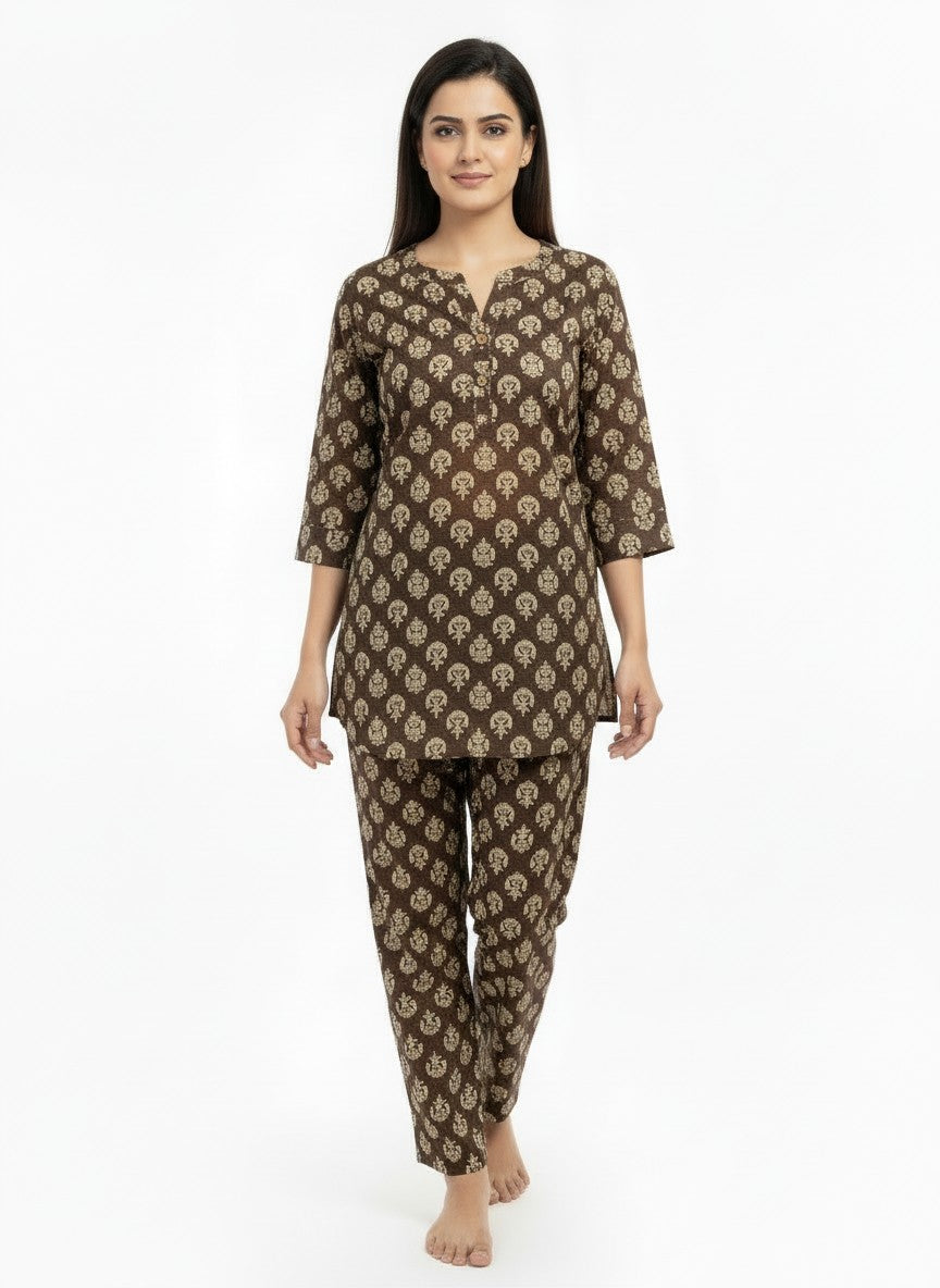 Experience effortless comfort and relaxed elegance with this Bhx-Eo Kurti Set designed for home and lounge wear. Featuring a regular fit silhouette with long sleeves, a round neckline, and button closure, it boasts a charming floral pattern that adds a touch of femininity. Crafted from lightweight, breathable cotton, this non-stretchable fabric ensures all-season suitability and easy care with machine wash cold instructions. Ideal for lounging, casual days, or restful evenings, this kurti set combines style and comfort seamlessly.