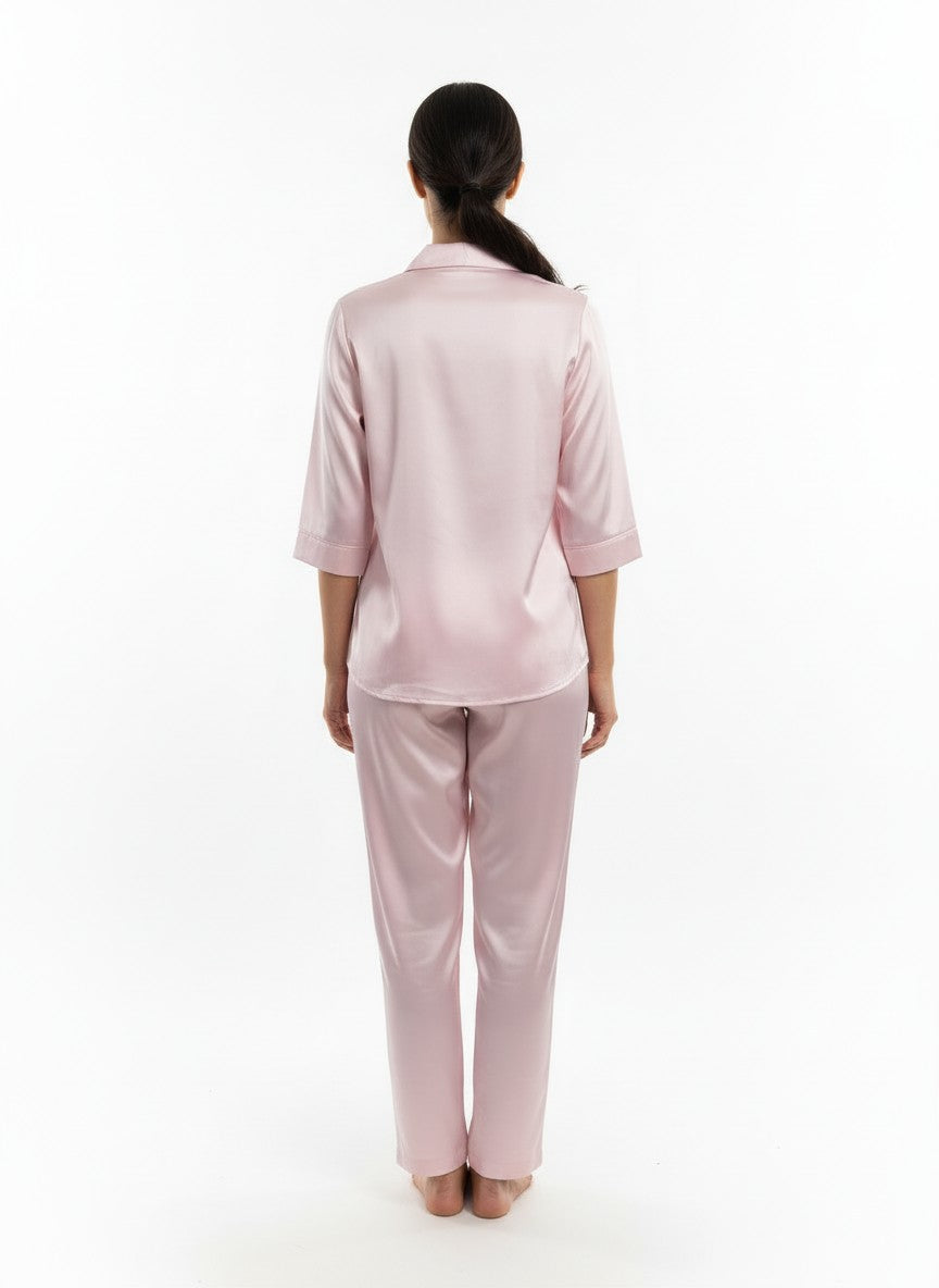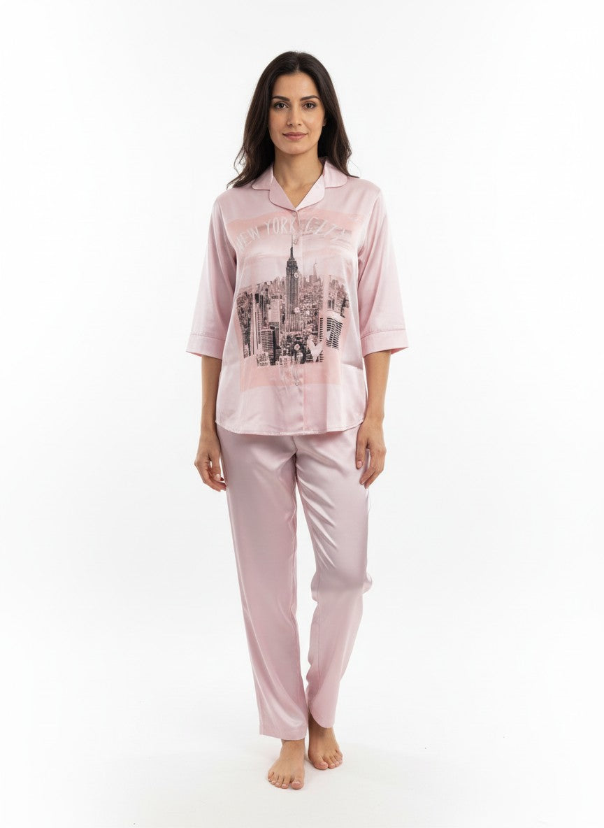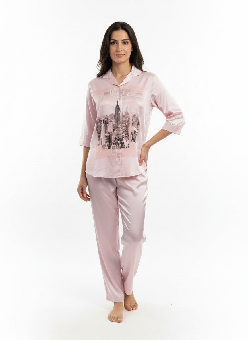 Experience effortless comfort and a soothing mood with this Womenstyle pyjama set designed for luxe lounging and everyday ease. Featuring a regular fit silhouette, half sleeves, a collar neck, and button closure, the graphic print adds a stylish touch. Crafted from breathable medium weight Italian Satin, this non-stretchable fabric is suitable for all seasons. Easy care with machine wash cold, it makes an ideal choice for relaxed, comfortable nights and leisurely mornings.