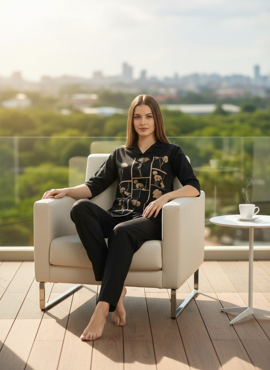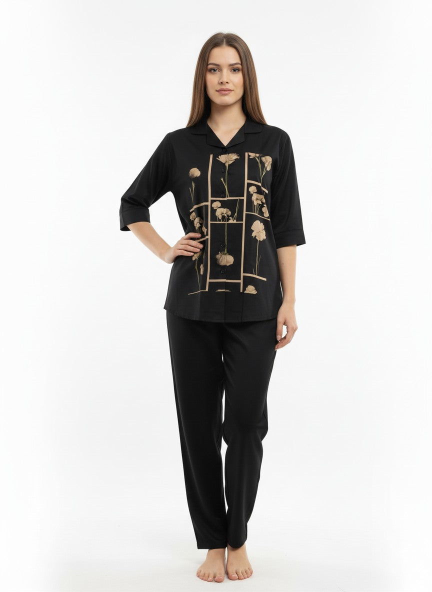 Experience ultimate comfort with this Womenstyle floral pyjama set, perfect for lounging or sleeping in soft Italian satin fabric that is lightweight, stretchable, and suitable for all seasons. The regular fit design features long sleeves, a collar neck, and button closure for a relaxed yet stylish look. Easy to care for with machine wash cold instructions, this set combines elegance with everyday comfort and luxurious feel.