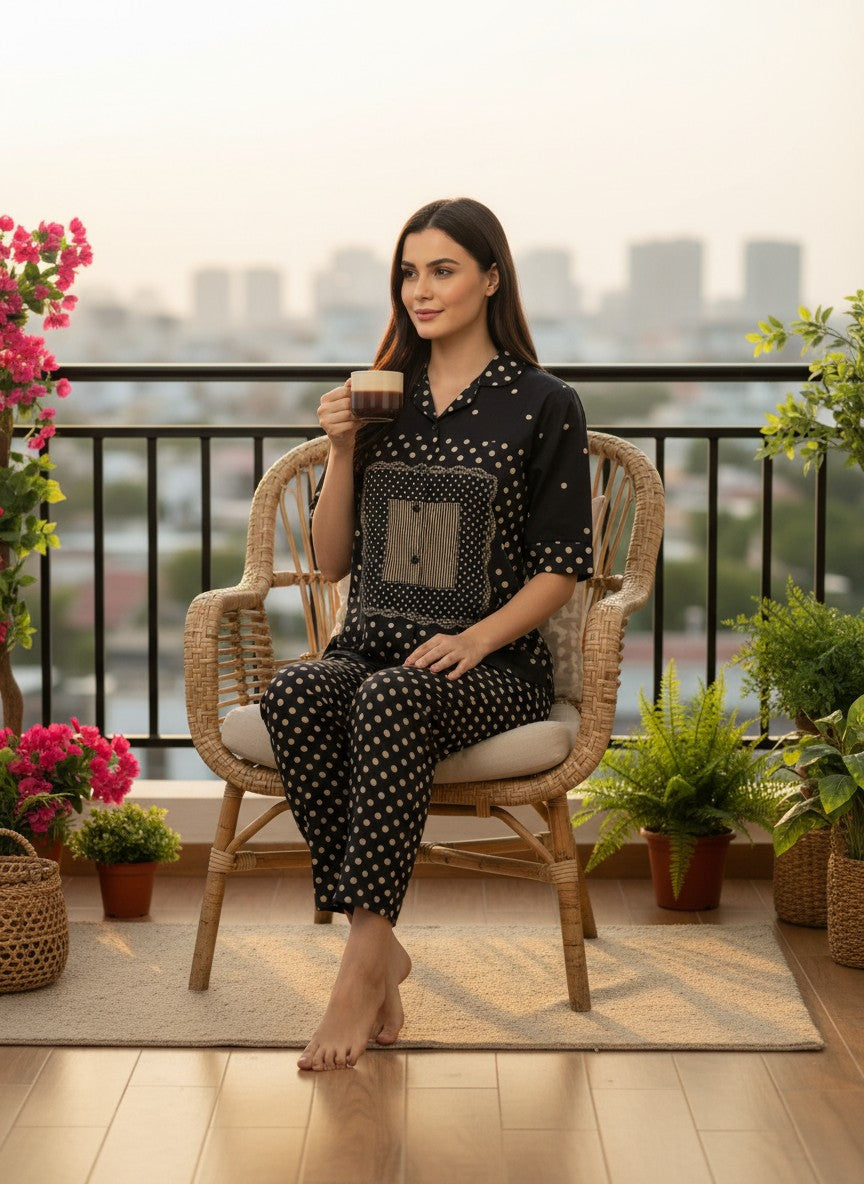 Experience ultimate comfort and luxury with this Womenstyle nightwear set, designed for a relaxed and serene lounging mood. It features a regular fit silhouette with long sleeves, a collar neckline, and button closure, enhanced by an abstract pattern that adds subtle elegance. Crafted from Italian Satin, the fabric offers a lightweight feel with breathable stretch performance, suitable for all seasons. Easy to care for with machine wash cold instructions, this piece is perfect for leisurely evenings, sleep, or everyday comfort.