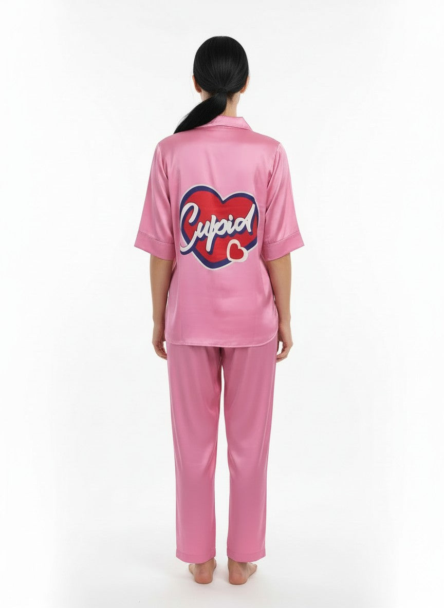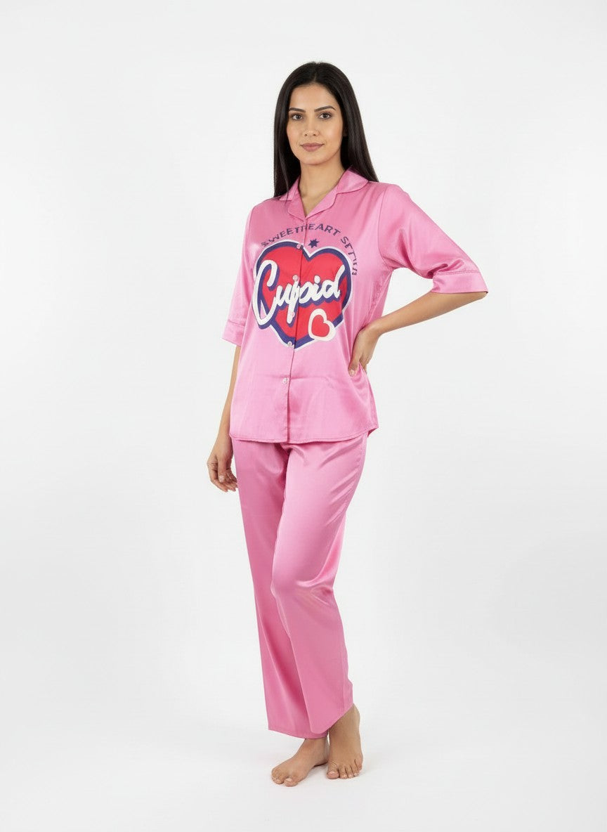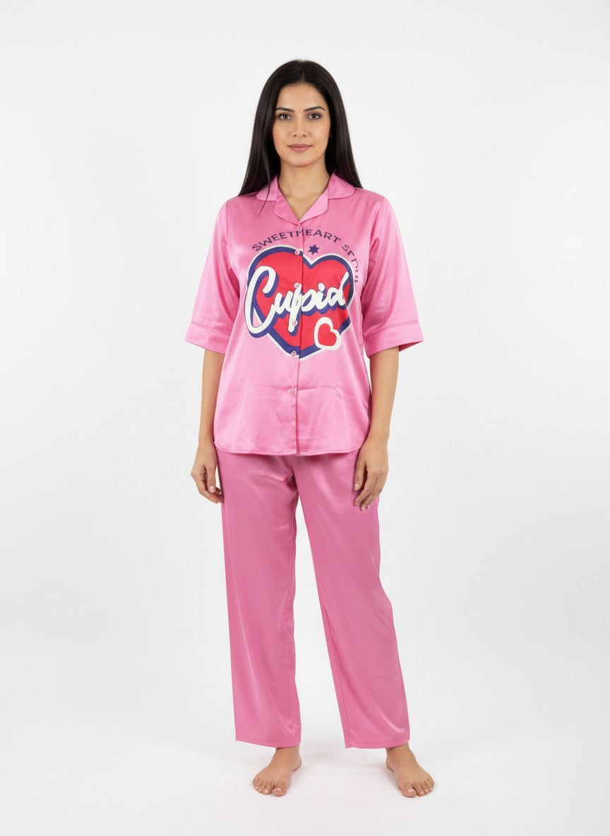 Experience luxurious comfort and softness ideal for lounging or restful sleep with this Womenstyle pyjama set. It features a regular fit silhouette with long sleeves, a collar neck, and button closure, adorned in a graphic print pattern. Crafted from Italian satin, a lightweight, breathable, and stretchable fabric suitable for all seasons, this set ensures comfort and style. Easy to care for with machine wash cold instructions, it’s perfect for everyday relaxation and luxe lounge wear.