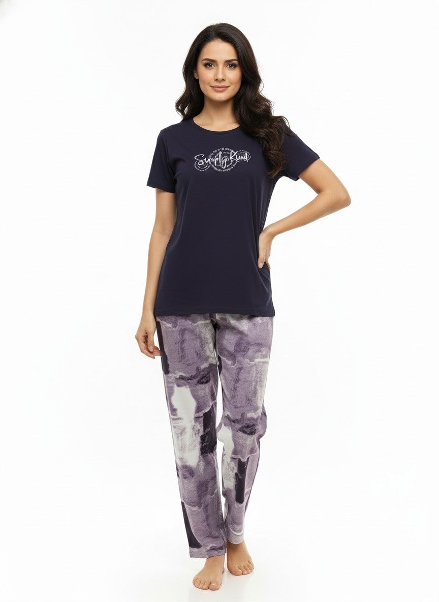 Experience everyday comfort with this Sukanya pyjama set designed for softness and ease. Its regular fit silhouette features half sleeves, a round neckline, and a pullover closure adorned with an abstract pattern, offering a relaxed yet stylish look. Made from lightweight hosiery fabric that is breathable and stretchable, it suits all seasons perfectly. Easy to care for with machine wash cold instructions, this set is ideal for lounging or sleeping in comfort.