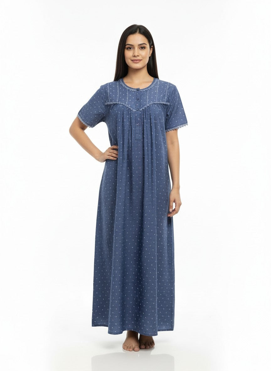 Experience everyday comfort with this BHX-EO nightdress designed for relaxed fit and ease. Featuring a half sleeve, round neck, and button closure, its solid pattern complements the soft, lightweight Tenceldenim fabric that offers breathability and stretchability suitable for all seasons. Easy to care for with machine wash cold instructions, this piece is perfect for lounging and restful sleep.