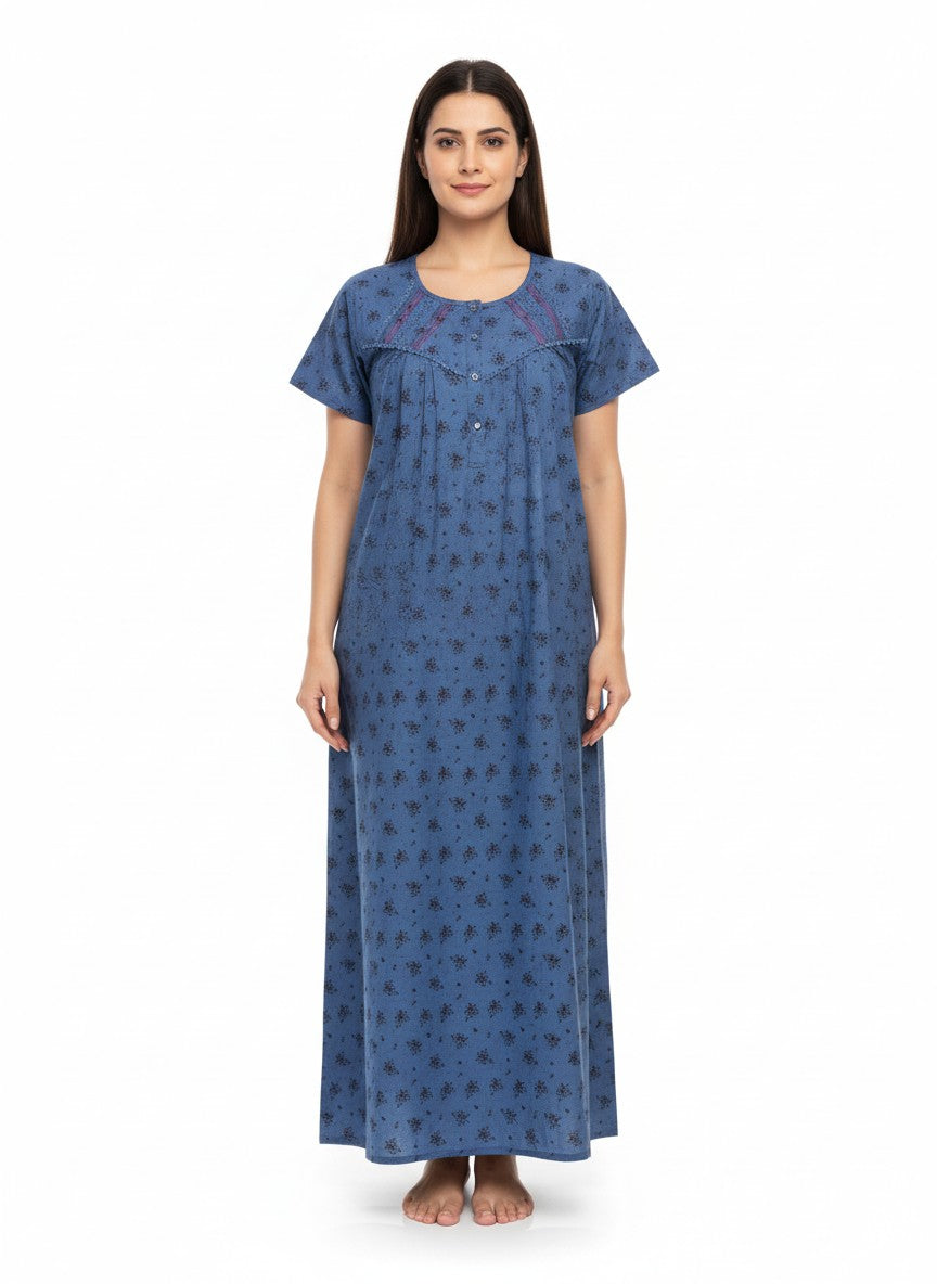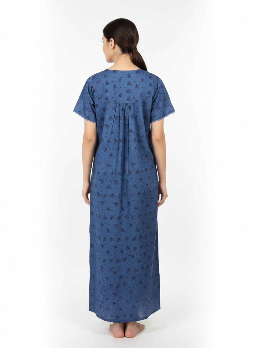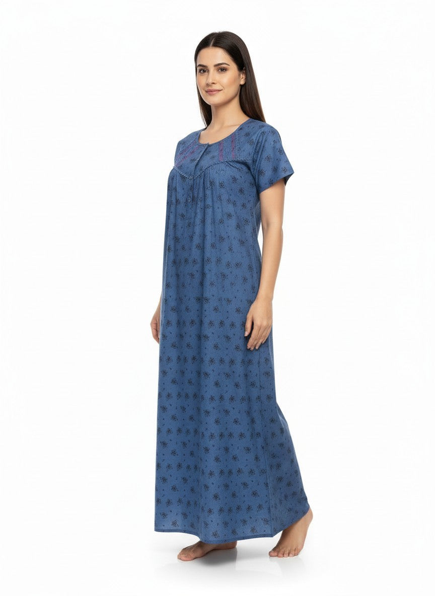 Experience everyday comfort with this BHX-Eo nighty featuring a relaxed fit, half sleeves, and a round neckline with button closure, adorned in a delicate floral pattern. Crafted from lightweight tenceldenim fabric, it offers stretchability and breathability suitable for all seasons. Easy to care for with machine wash cold, this nightdress is perfect for lounging or sleepwear, blending style with comfort seamlessly.