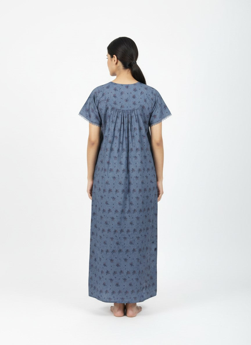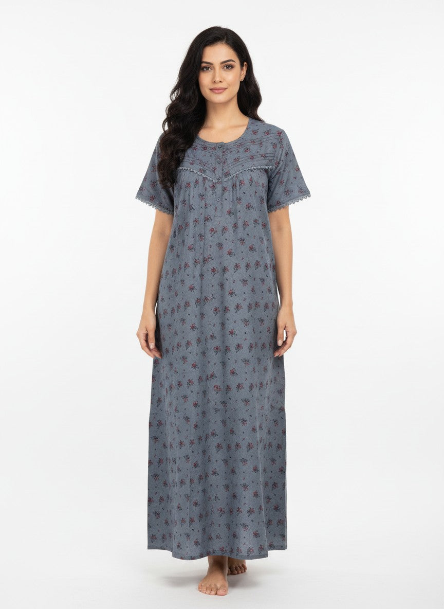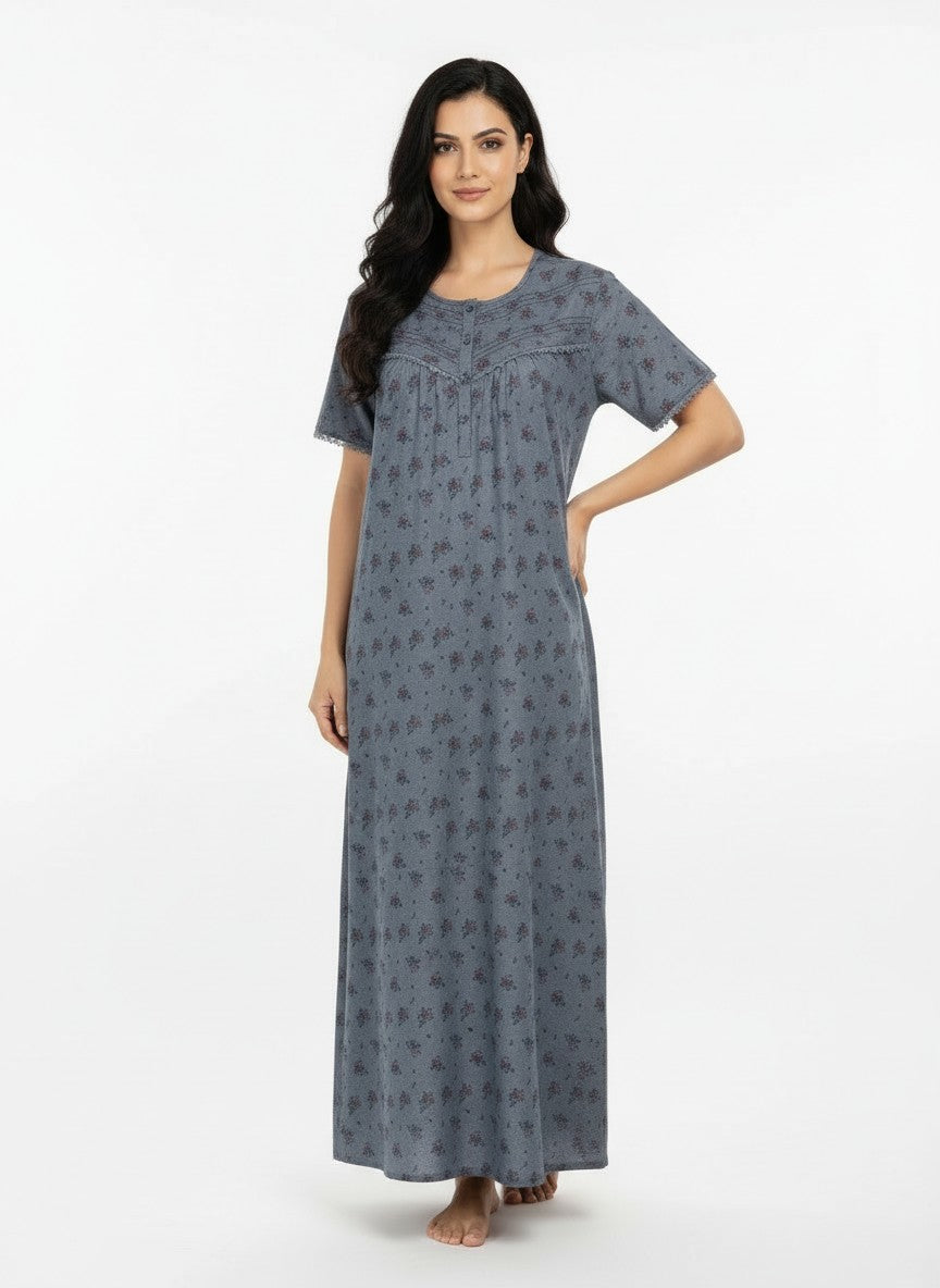 Experience everyday comfort with this BHX-Eo nighty designed for relaxed fit and ease. Crafted with a lightweight and stretchable Tenceldenim fabric, it offers breathability and comfort suited for all seasons. Featuring half sleeves, a round neckline, and button closure, this floral patterned nightdress blends style with practical care instructions for machine wash cold. Perfect for lounging and restful nights, it combines softness with thoughtful design.