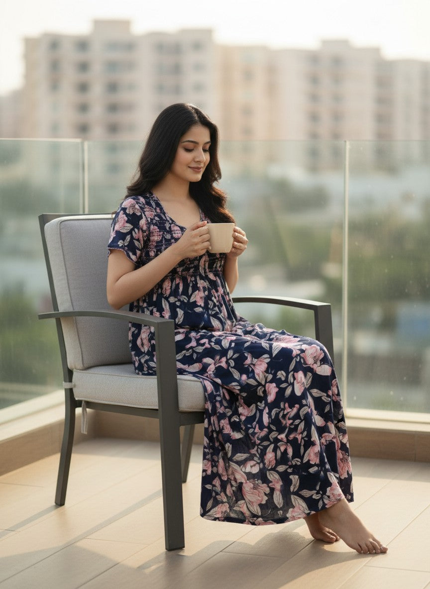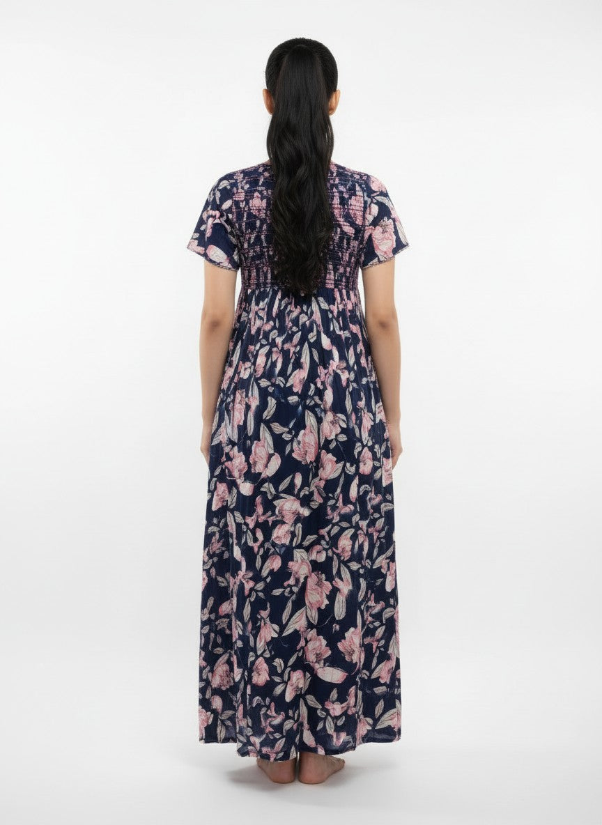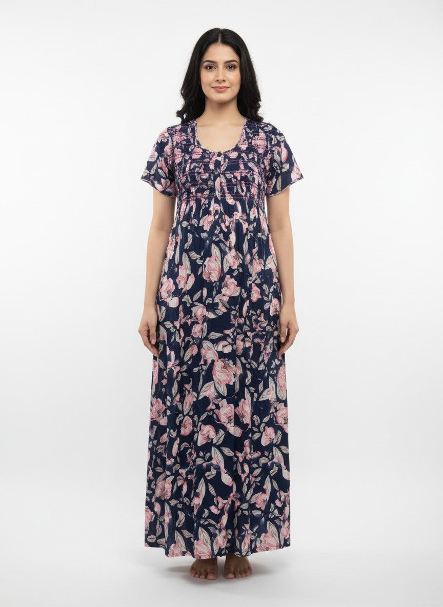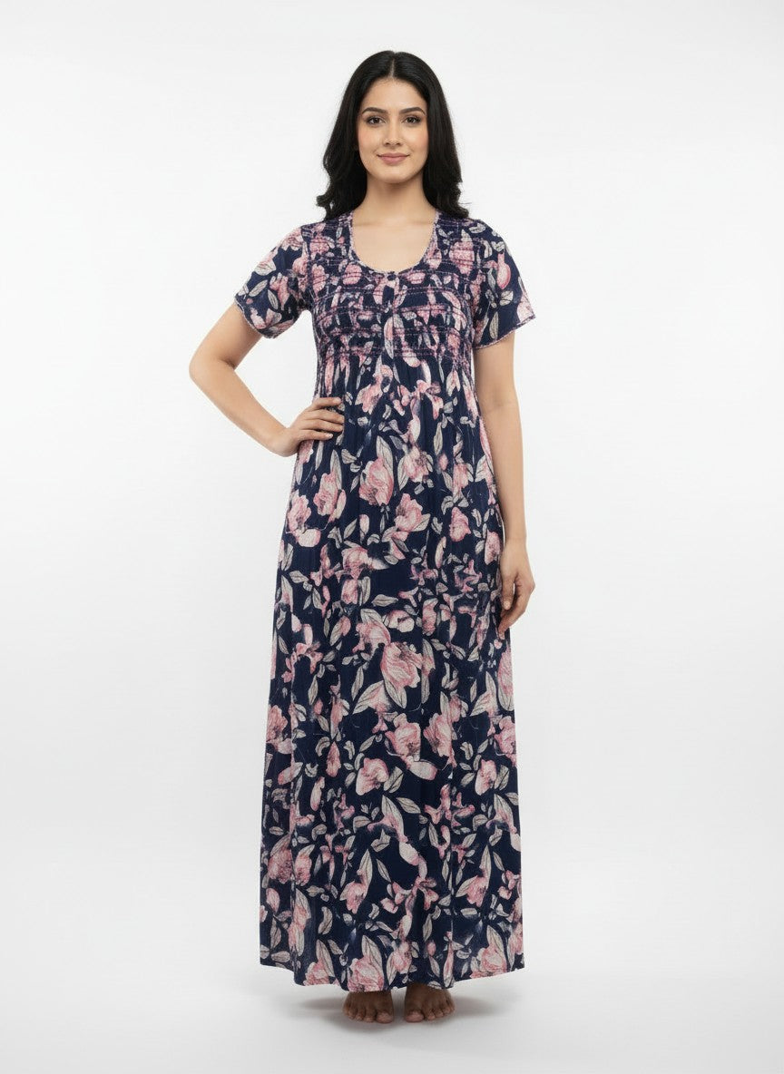 Experience relaxed comfort with this Nighty - Frill from BHX-EO, featuring a scoop neckline, half sleeves, and button closure that combines style with ease. Its floral pattern enhances the regular fit silhouette, crafted from breathable lightweight viscose ideal for all seasons. This stretchable fabric ensures comfort whether lounging or sleeping, and it is easy to care for with machine wash cold instructions, making it a perfect choice for everyday wear.