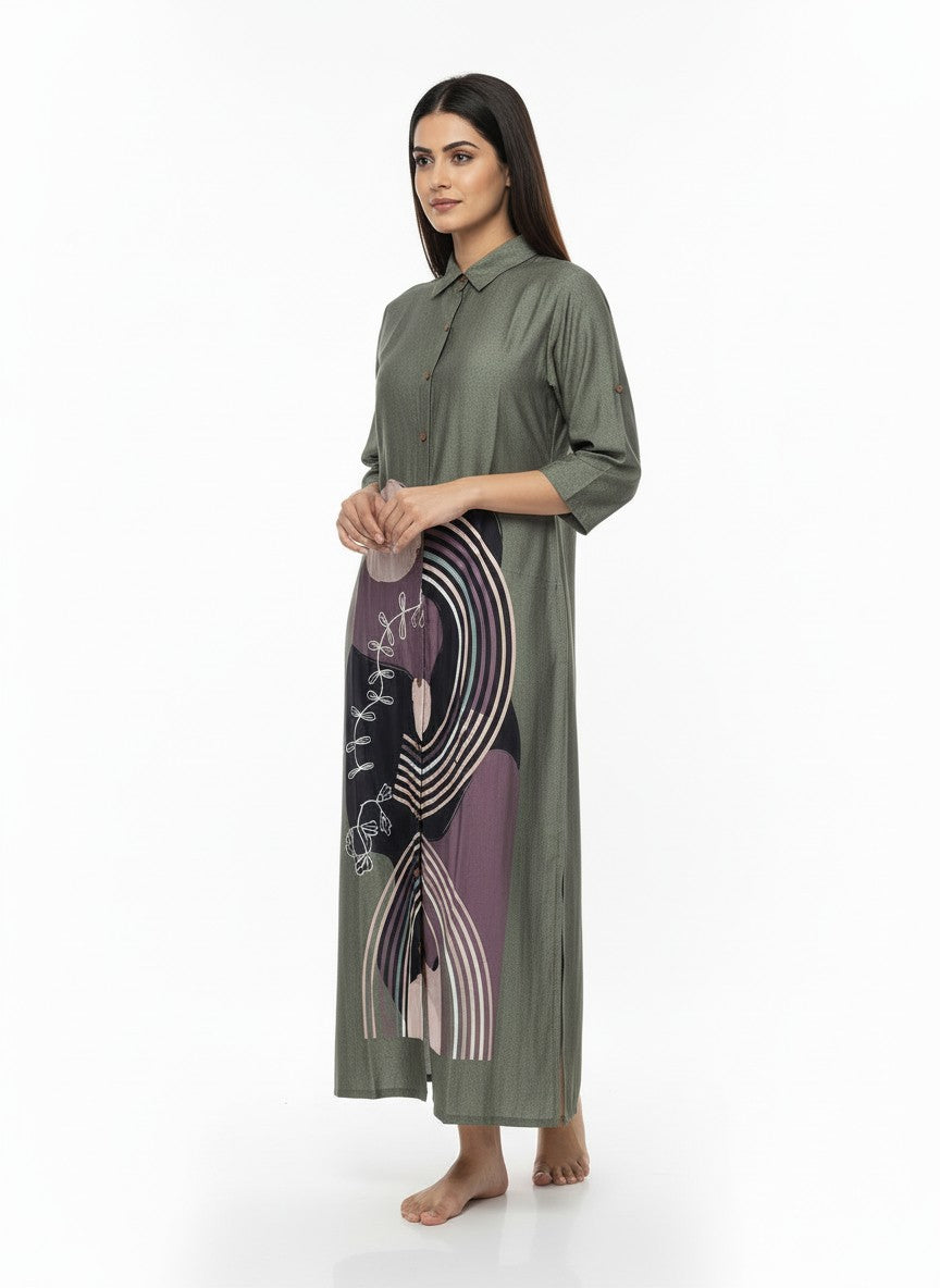 Experience exceptional comfort with this BHX-EO nightdress designed for all seasons, combining a loose fit silhouette with long sleeves, collar neckline, and button closure for effortless elegance. Made from breathable, medium weight viscose fabric, it ensures softness and ideal wearability. Easy to care for with machine wash cold instructions, it is perfect for luxe lounging and everyday comfort.