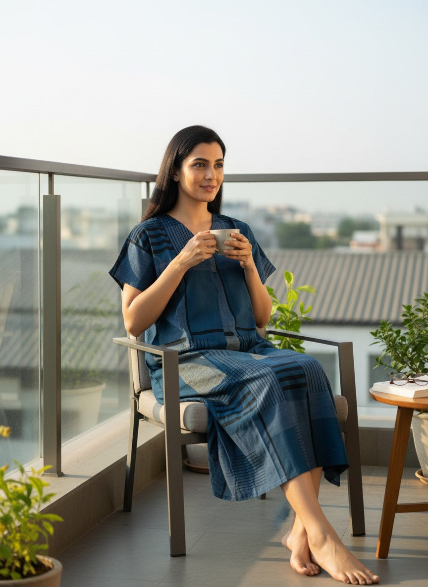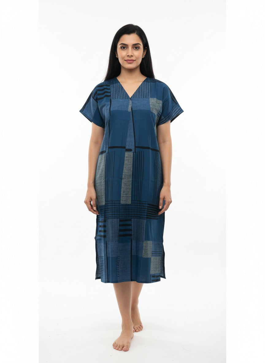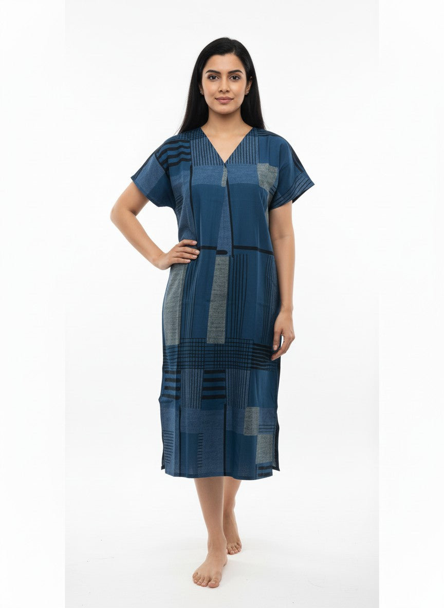 Experience ultimate softness and comfort with this Loose Fit short nighty, designed for all seasons to keep you feeling dreamily cozy. Featuring a half sleeve and V-neck pullover style, the abstract pattern adds a subtle artistic touch. Made from imported rayon fabric, it offers lightweight breathability and gentle stretchability, perfect for lounging or restful sleep. Easy to care for with machine wash cold instructions, this nightdress promises everyday comfort and a soft, dreamy vibe.