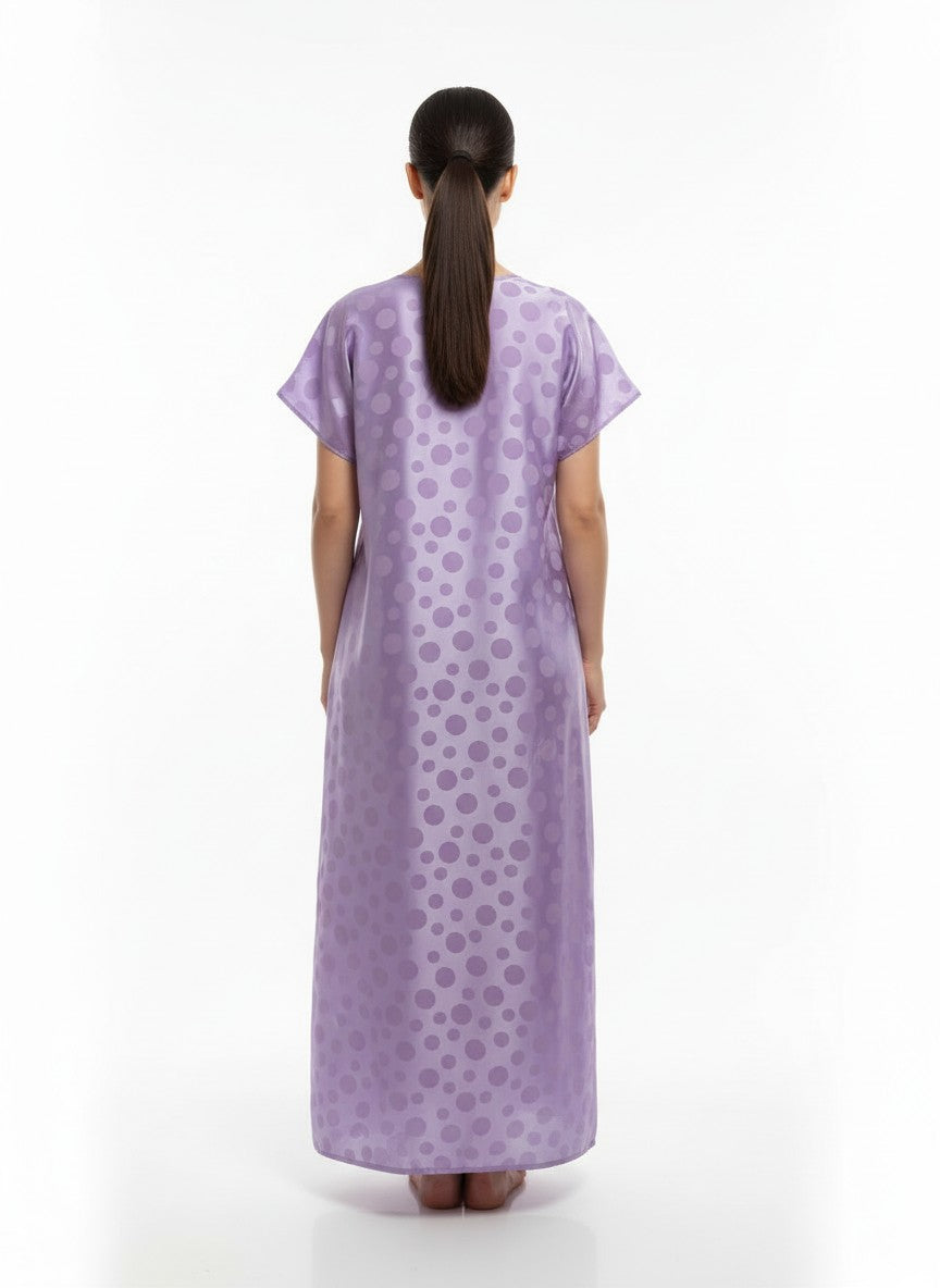 Experience everyday comfort with this velvet nighty designed for emotional softness and relaxation. Featuring an A-line silhouette with half sleeves, a V-neckline, and pullover closure, it showcases an abstract pattern for a stylish look. Made from satinbrasso fabric that is lightweight, stretchable, and suitable for all seasons, it ensures breathability and ease of movement. Easy to care for with machine wash cold instructions, it is perfect for lounging and restful sleep.