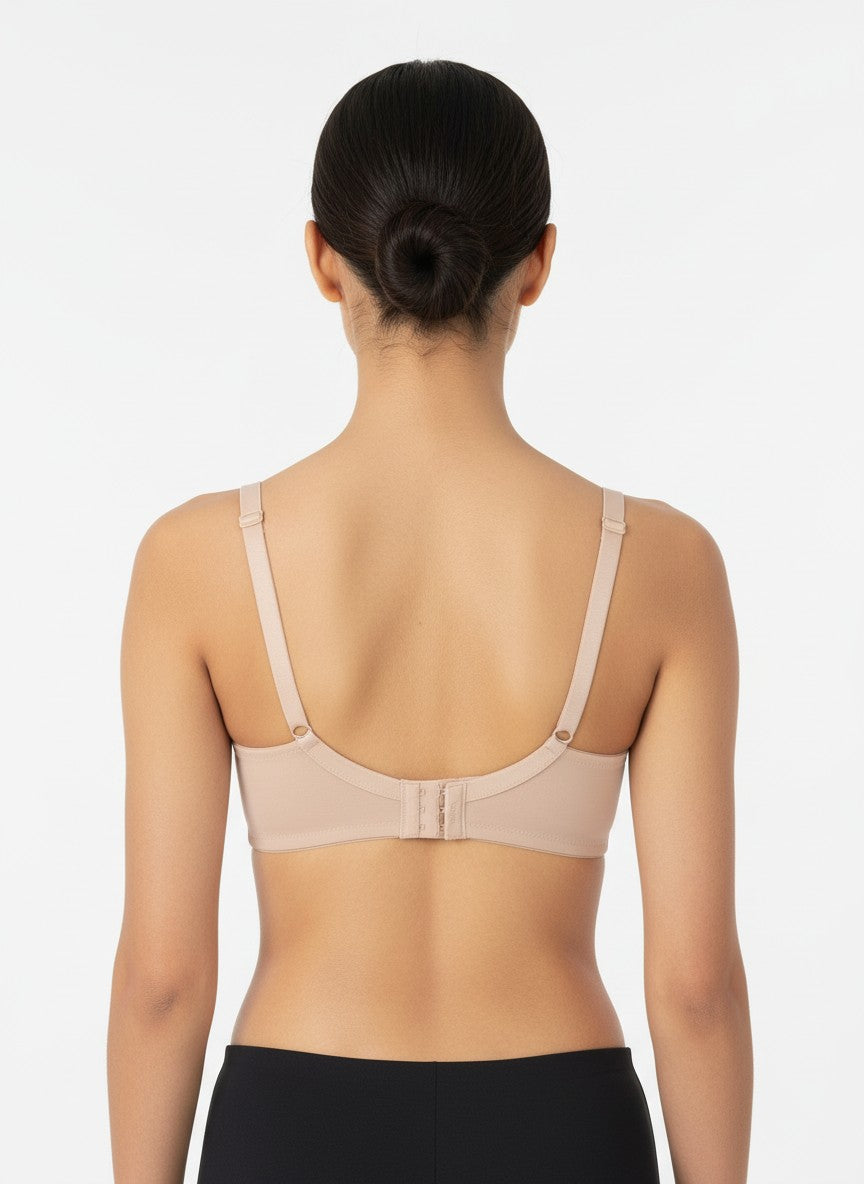Wacoal Basic Mold Padded Non Wired Full Coverage Everyday T-Shirt Bra offers reassuring comfort and confidence for daily wear, with full coverage cups that are padded for a smooth, modest shape and non-wired construction that feels gentle against the skin while still providing dependable support. Designed as a T-shirt bra with a clean solid look, it features adjustable straps for a personalised fit, a secure U-Back that helps stabilise the bra and improve lift, and a classic hook-and-eye closure for easy wear and removal. Crafted from a soft polyamide fabric with elastane for stretch, it feels smooth under clothing and moves with you throughout the day, making it well-suited to everyday use. For best performance and longevity, it is intended for regular wear and should be hand washed with like colours using mild soap and air dried to maintain its shape and fabric integrity.