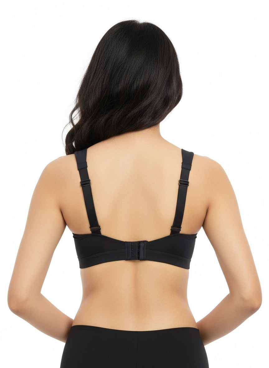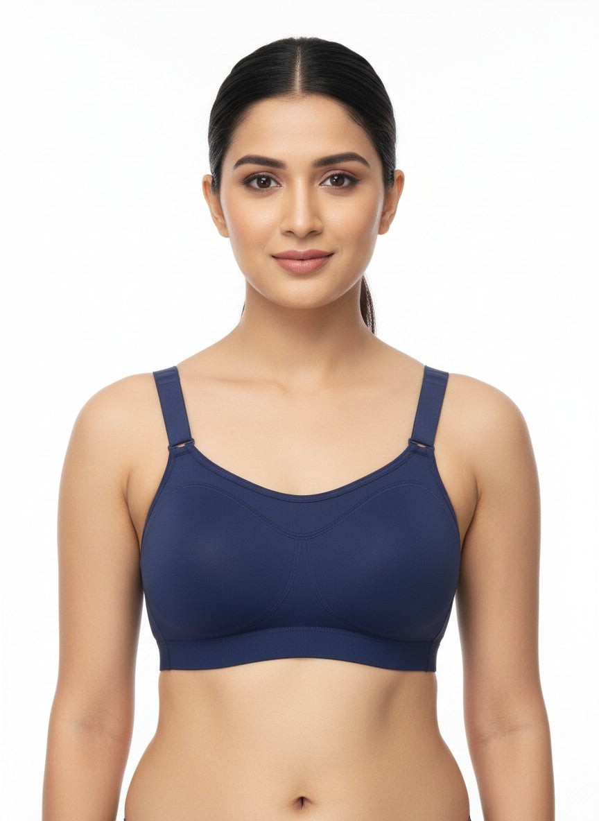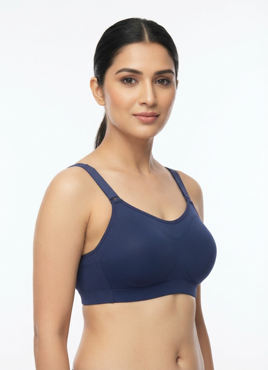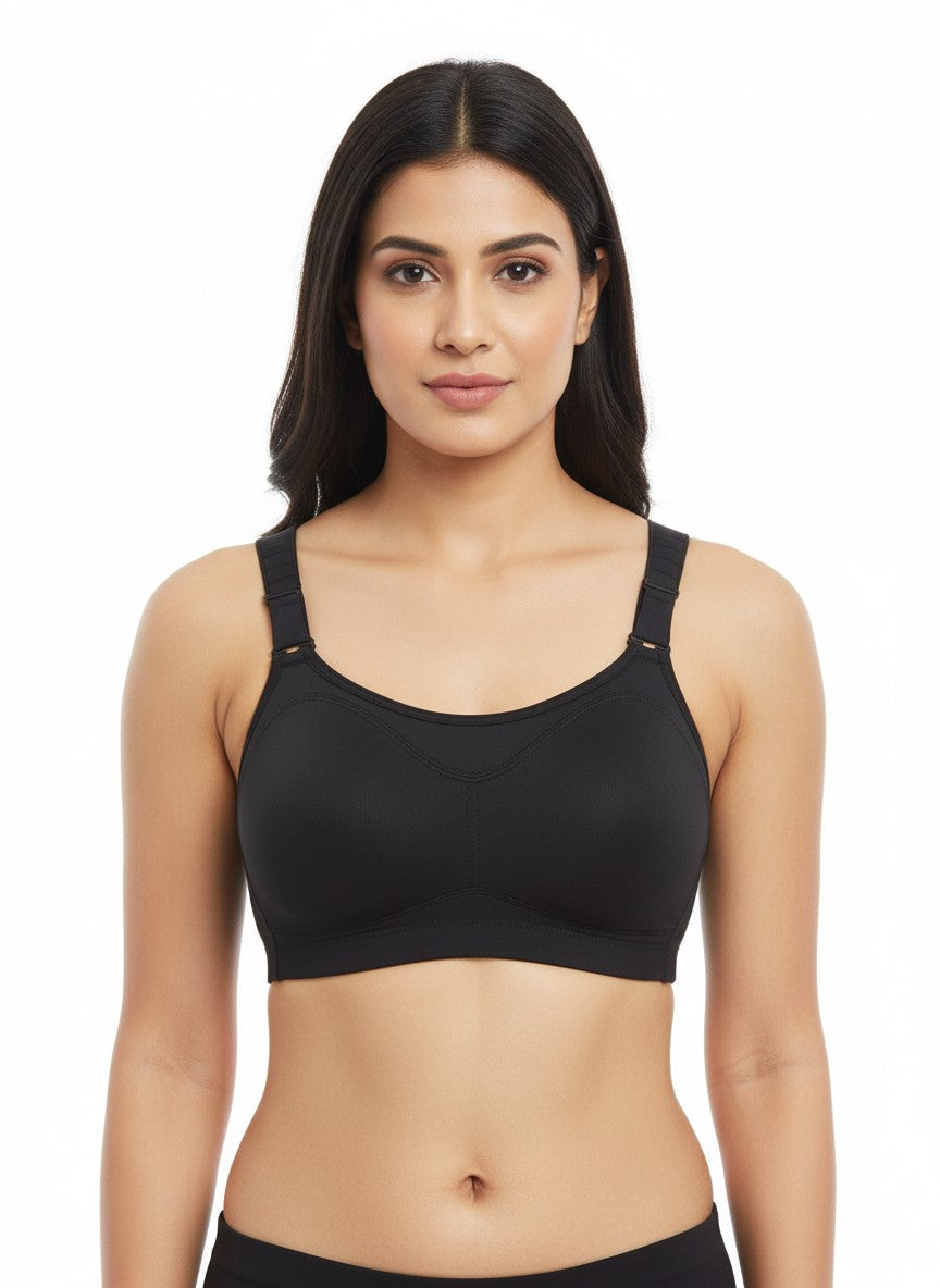 The Zelocity High Impact Quick Dry Sports Bra from ZIVAME is designed to offer secure comfort and confidence for active days, featuring full coverage with a non-wired, non-padded construction that supports without adding bulk. Its straight back and adjustable straps help you achieve a personalised fit, while the hook-and-eye closure ensures a stable, dependable hold through movement. Crafted primarily from a blend featuring Polyamide, this sports bra offers a smooth, performance-oriented feel that pairs well with its quick-dry functionality, making it suitable for high-impact workouts as well as regular active wear. The solid Jetblack shade adds a sleek, versatile look that slips easily under sportswear, and simple hand wash care keeps it easy to maintain for everyday use.