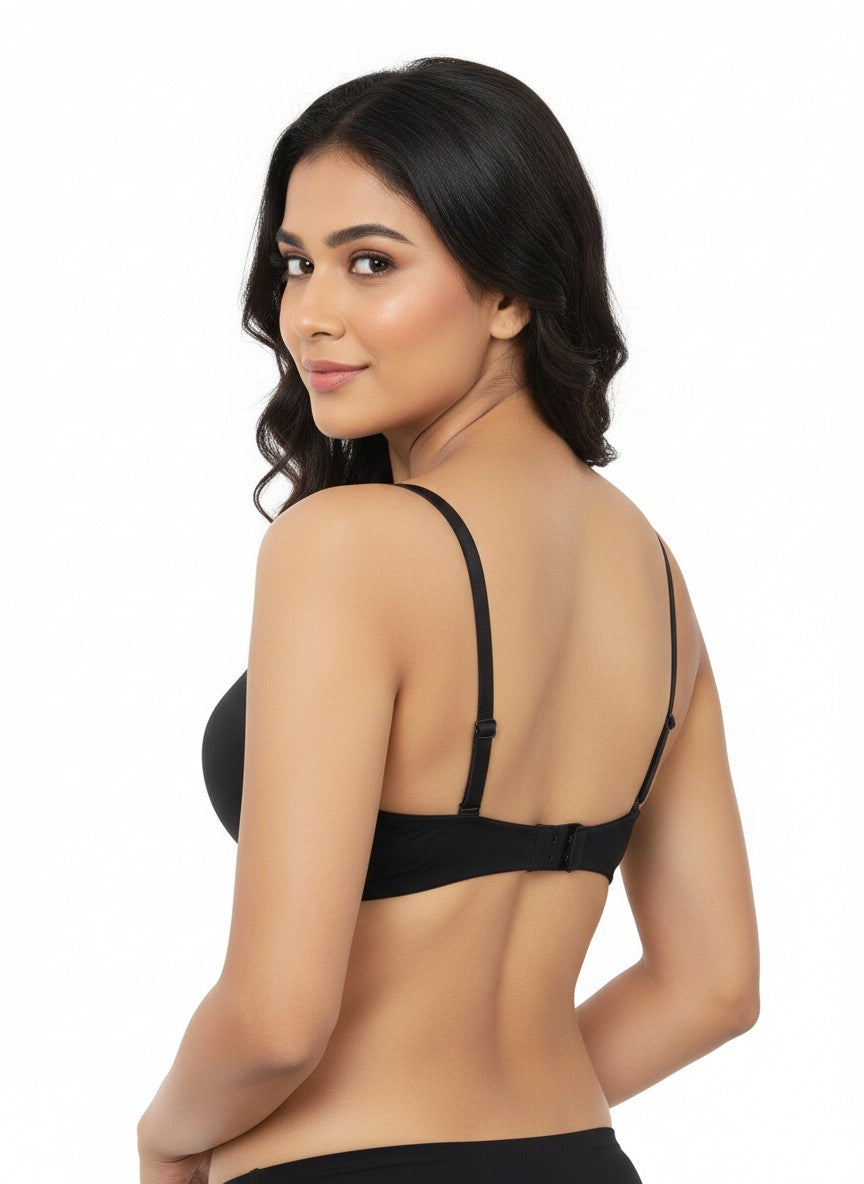 Zivame Padded Non Wired 3/4th Coverage T-Shirt Bra offers reassuring comfort and confidence for everyday wear, crafted from soft cotton fabric that feels gentle and breathable against the skin while supporting regular use. Designed with full coverage and padded cups, it provides a smooth, modest shape under clothing, while the non-wired construction ensures ease and flexibility without digging or discomfort. The straight back and adjustable straps help achieve a secure, personalised fit, and the classic hook-and-eye closure adds familiar, reliable support through the day. Finished in a solid Anthracite shade, this T-shirt bra is easy to care for with simple hand wash instructions, making it a dependable, low-maintenance choice for daily lingerie comfort.