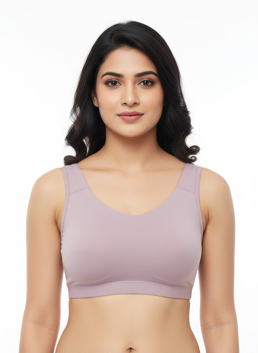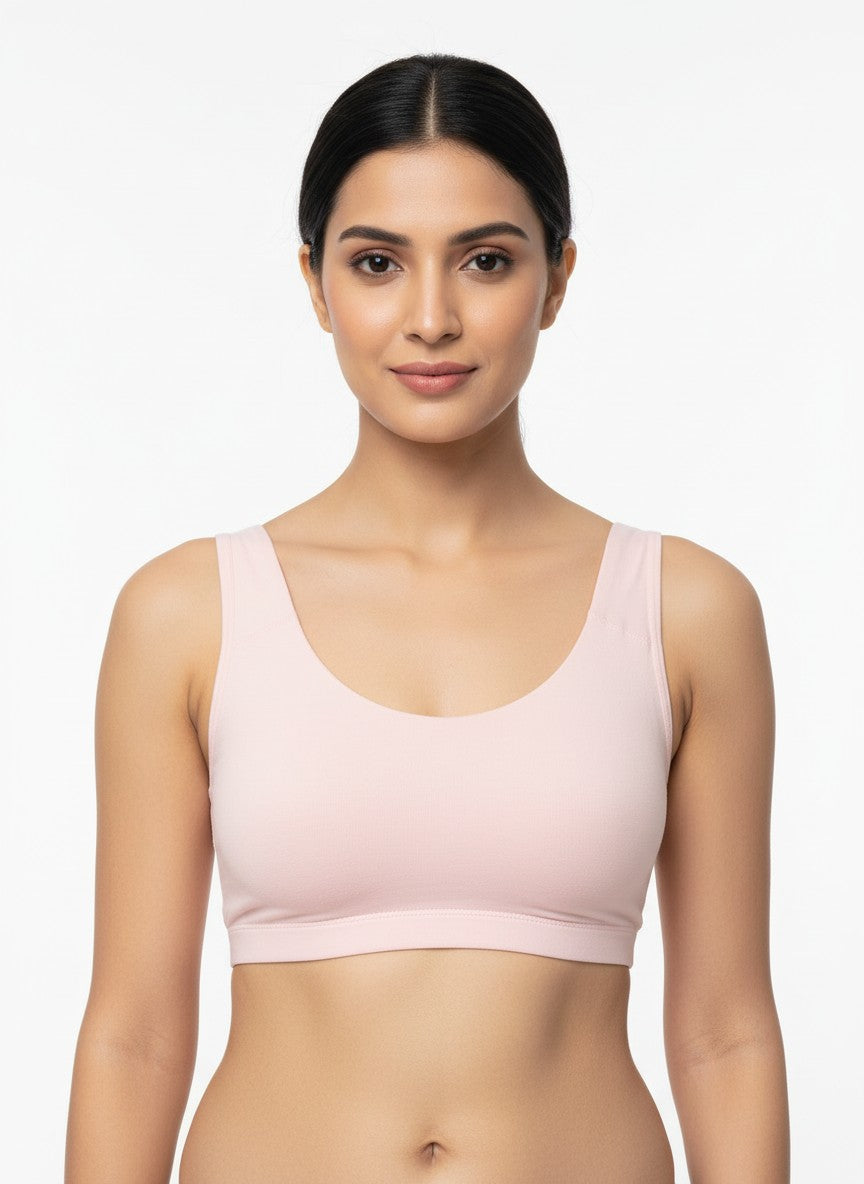 Zivame Double Layered Non Wired Full Coverage Bralette is designed for gentle, reassuring comfort, giving you confident coverage that works beautifully for everyday wear. The full coverage shape and non-wired construction offer soft support without digging in, while the non-padded cups and double-layered front provide a natural, smooth look under clothing. Crafted from cotton, the cotton elastane fabric feels soft and breathable against the skin with a hint of stretch for easy movement, making it ideal for long hours of regular use. The straight back and tank-style straps sit securely on the shoulders, and the convenient pull-on closure adds to the relaxed, fuss-free feel. In a barely pink solid shade, this bralette is easy to care for with simple hand wash instructions, making it a practical choice for everyday comfort and confidence.